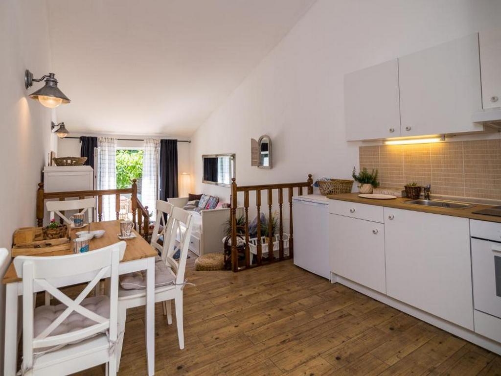 Apartament może przyjąć 4 gości. Łóżka znajdują się w sypialniach, których jest 1, oraz w pokoju dziennym, na powierzchni 44m2. Goście mają dostęp do tarasu, by korzystać z ciepłych, letnich wieczorów. Grill jest dostępny tylko do użytku gości z tej kwatery. W kwaterze dozwolony jest pobyt zwierzęcia domowego, za dopłatą. WLICZONE W CENĘ: taksa pobytowa, sprzątanie końcowe, klimatyzacja, parking, internet, pranie bielizny, łóżeczko dziecięce, żelazko, deska do prasowania, suszarka do włosów. OBOWIĄZKOWE KOSZTY DODATKOWE: dopłata za krótki termin (procent dopłaty w zalezności od liczby noclegów: 30% - 1, 20% - 2, 10% - 3). NIEOBOWIĄZKOWE KOSZTY DODATKOWE: zwierzęta domowe (7,00 € za nocleg). Dostępność dodatkowych usług w rezerwowanym terminie oraz ich cenę (jeśli nie jest podana) należy sprawdzić wcześniej. Za dodatowe usługi, które nie zostały uwzględnione w kalkulacji ceny, płaci się bezpośrednio właścicielowi obiektu, pod warunkiem śe gość korzysta z tych usług.