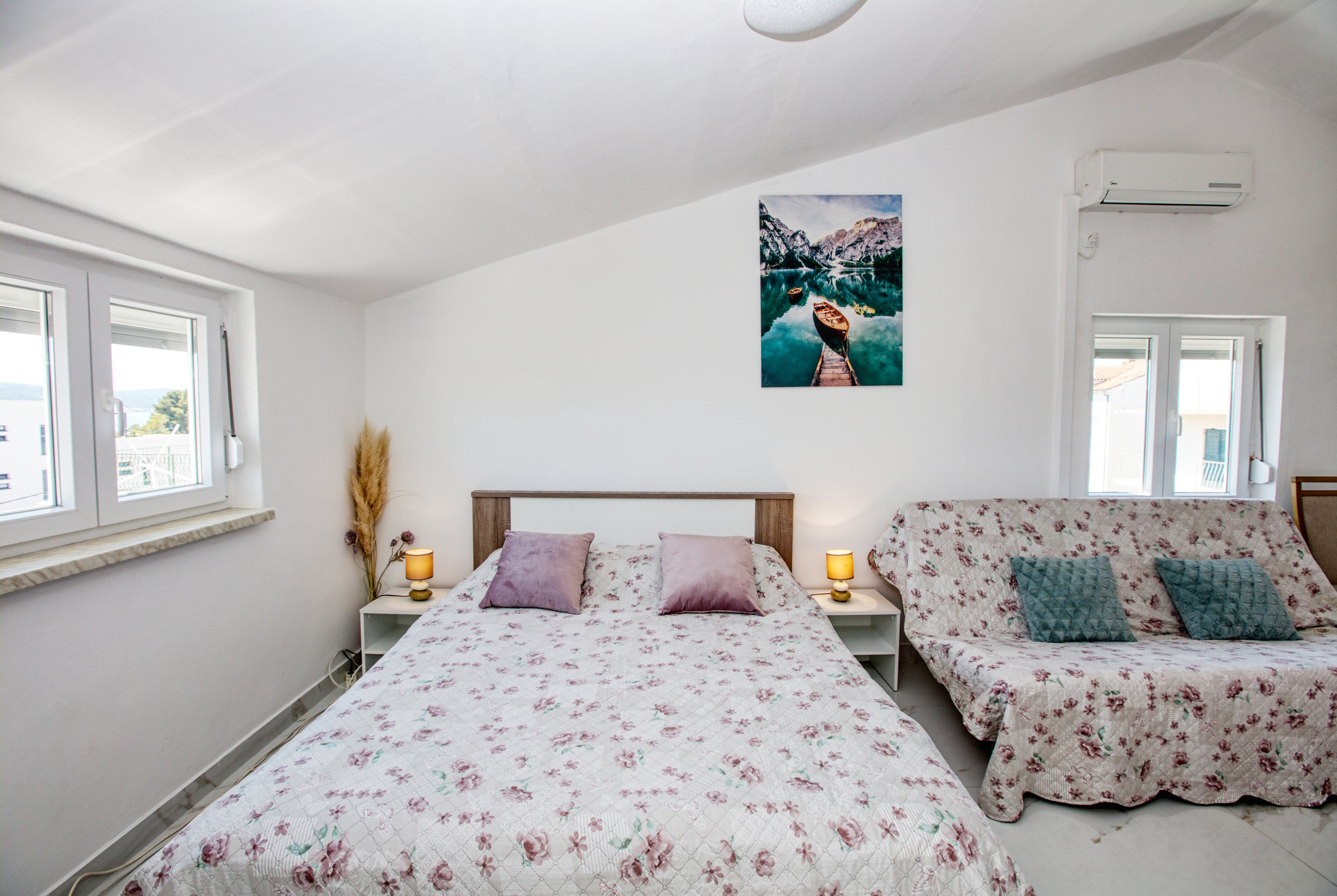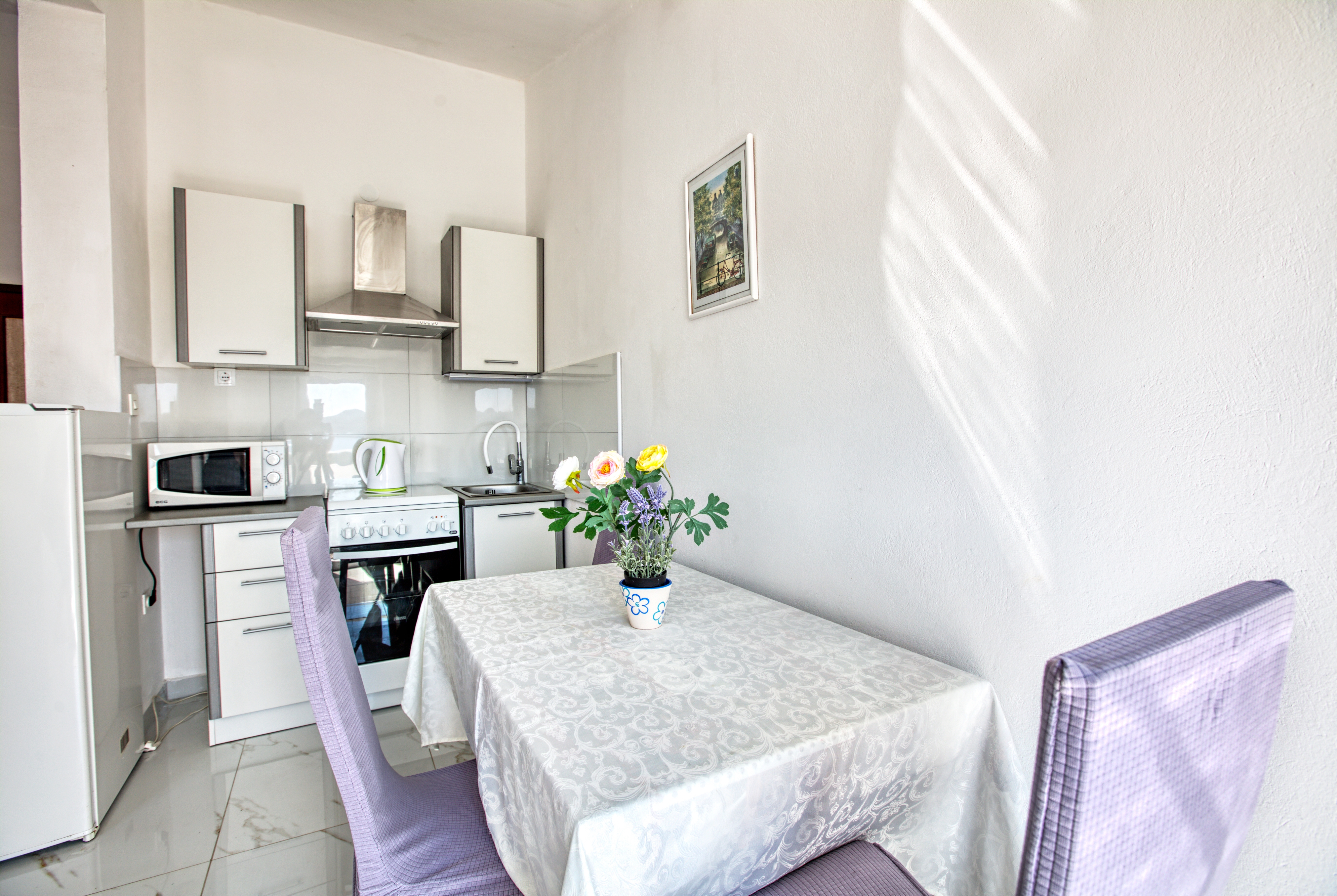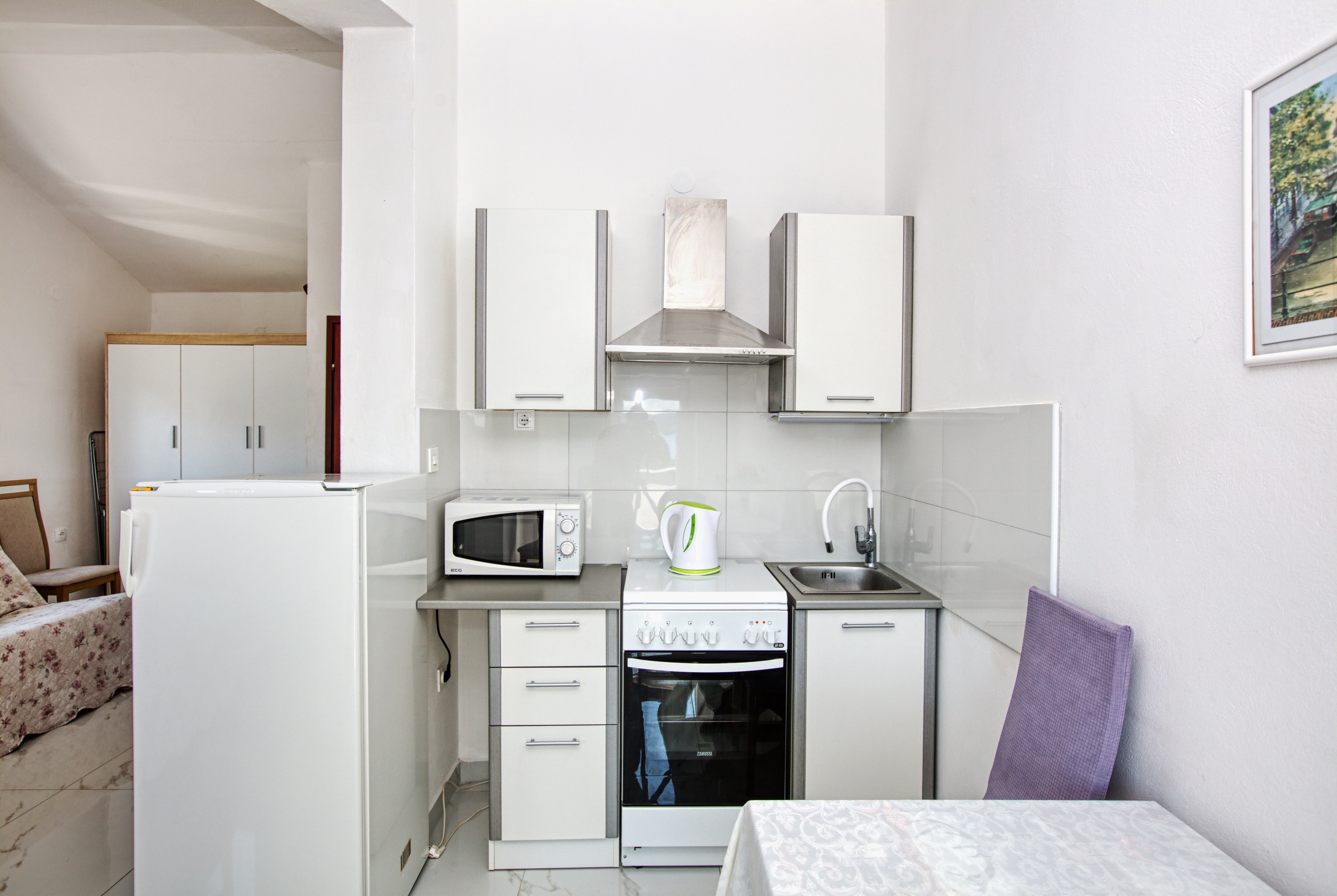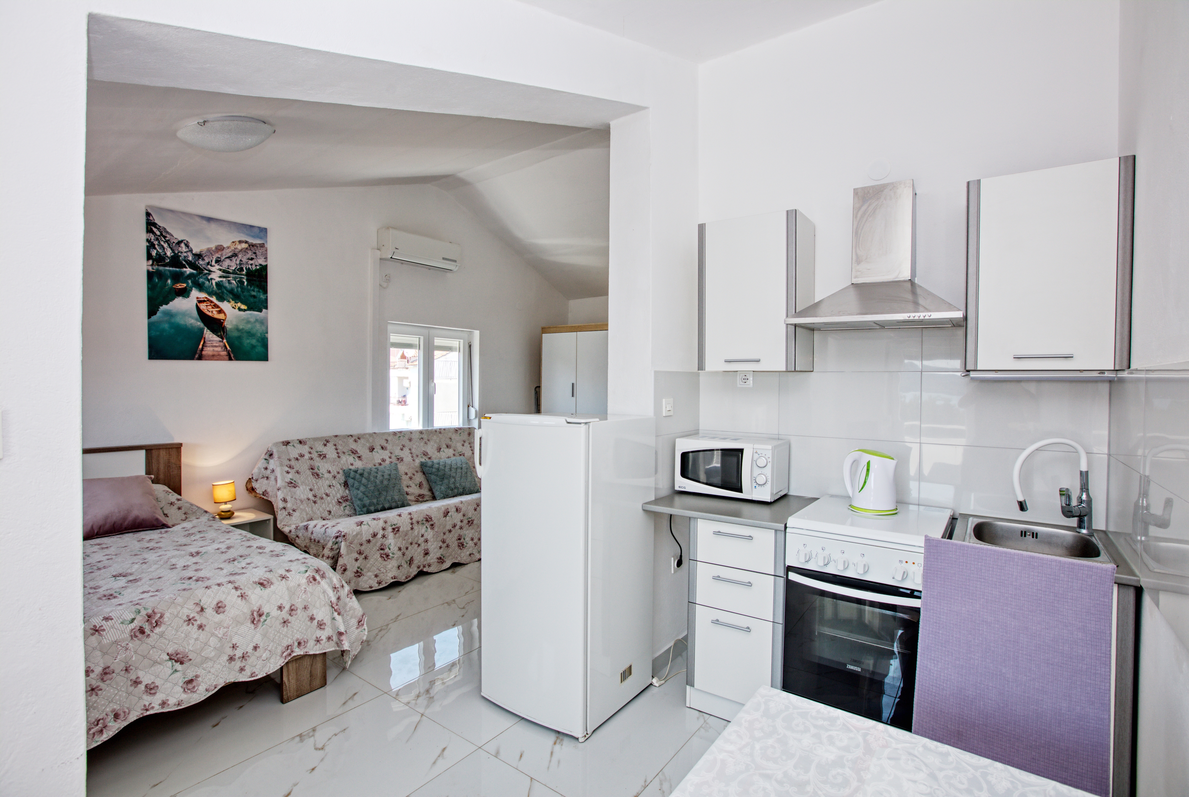 Studio może przyjąć 3 gości. Łóżka znajdują się w sypialniach, których jest 1, na powierzchni 26m2. Goście mają dostęp do balkonu, by korzystać z ciepłych, letnich wieczorów. Z apartamentu typu studio roztacza się widok na morze. Możliwość przygotowywania posiłków poprzez korzystanie ze wspólnego grilla. W kwaterze dozwolony jest pobyt zwierzęcia domowego, za dopłatą. WLICZONE W CENĘ: taksa pobytowa, sprzątanie końcowe, parking, internet. OBOWIĄZKOWE KOSZTY DODATKOWE: dopłata za krótki termin (procent dopłaty w zalezności od liczby noclegów: 30% - 1, 20% - 2, 10% - 3). NIEOBOWIĄZKOWE KOSZTY DODATKOWE: klimatyzacja (10,00 € za nocleg), pranie bielizny (7,00 € pranie), zwierzęta domowe (10,00 € za nocleg). Dostępność dodatkowych usług w rezerwowanym terminie oraz ich cenę (jeśli nie jest podana) należy sprawdzić wcześniej. Za dodatowe usługi, które nie zostały uwzględnione w kalkulacji ceny, płaci się bezpośrednio właścicielowi obiektu, pod warunkiem śe gość korzysta z tych usług. Zniżki od ceny podstawowej: bezpłatny dzień 14=13 (przy pobycie, trwającym co najmniej 14 dni, otrzymujecie jeden bezpłatny dzień na pobyt do 31.12.2026).