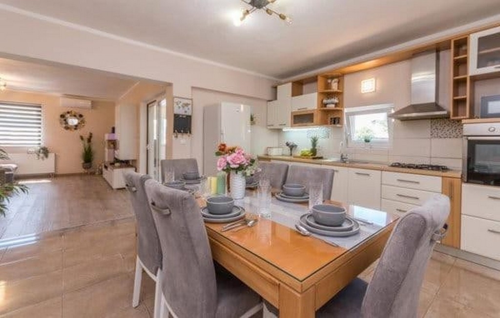 Dom może przyjąć 6 gości. Łóżka znajdują się w sypialniach, których jest 3, na powierzchni 109m2. Goście mają dostęp do tarasu, by korzystać z ciepłych, letnich wieczorów. Grill jest dostępny tylko do użytku gości z tej kwatery. W trakcie swojego pobytu goście mogą zrelakswować się w prywatnym basenie. WLICZONE W CENĘ: taksa pobytowa, sprzątanie końcowe, klimatyzacja, centralne ogrzewanie, basen, parking, internet, żelazko, deska do prasowania, suszarka do włosów, leżaki. Dostępność dodatkowych usług w rezerwowanym terminie oraz ich cenę (jeśli nie jest podana) należy sprawdzić wcześniej. Za dodatowe usługi, które nie zostały uwzględnione w kalkulacji ceny, płaci się bezpośrednio właścicielowi obiektu, pod warunkiem śe gość korzysta z tych usług.