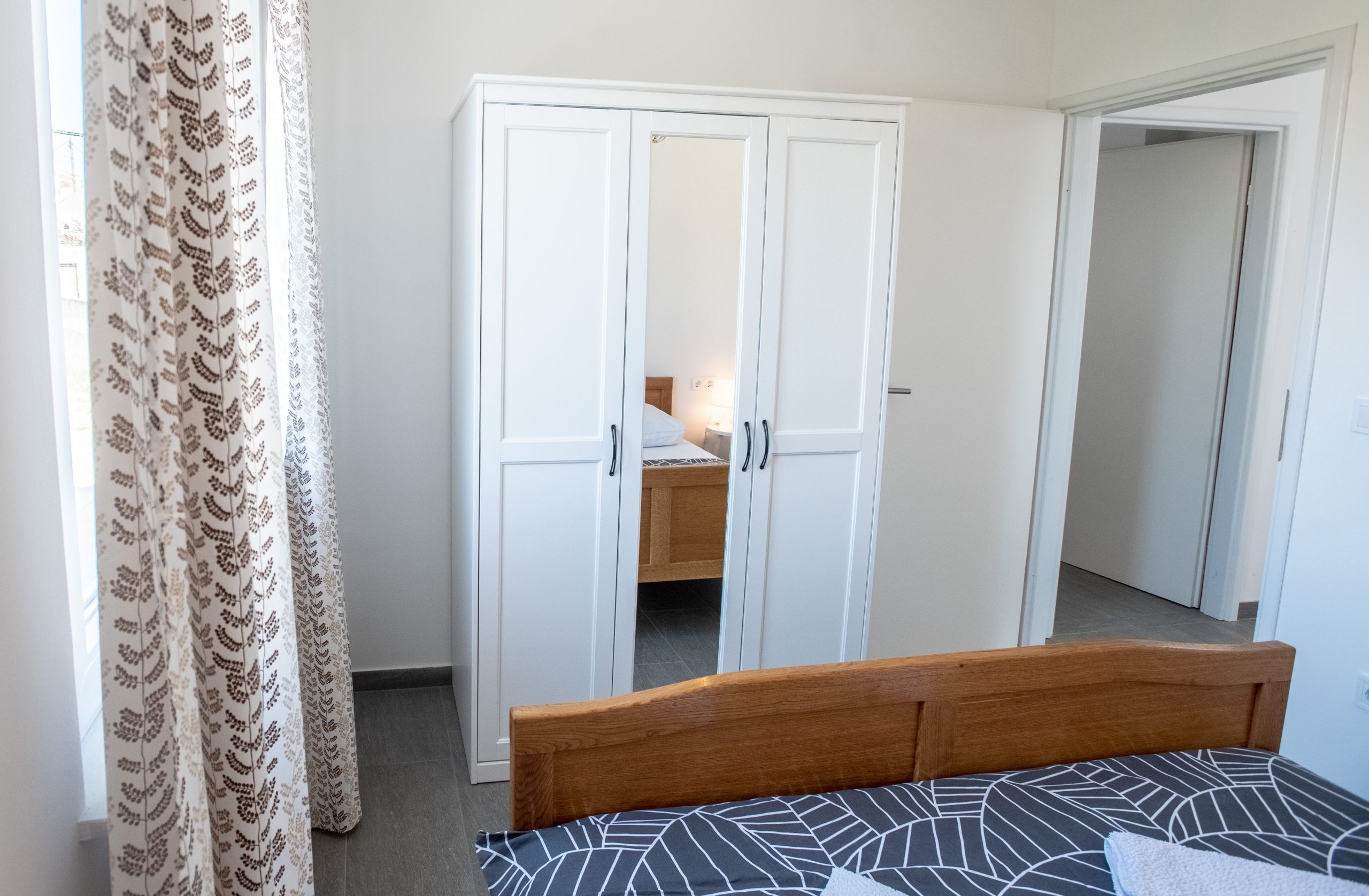 Apartament może przyjąć 6 gości. Łóżka znajdują się w sypialniach, których jest 2, oraz w pokoju dziennym, na powierzchni 43m2. Goście mają dostęp do tarasu, by korzystać z ciepłych, letnich wieczorów. Z apartamentu roztacza się widok na morze. Możliwość przygotowywania posiłków poprzez korzystanie ze wspólnego grilla. WLICZONE W CENĘ: taksa pobytowa, sprzątanie końcowe, klimatyzacja, parking, internet, łóżeczko dziecięce, suszarka do włosów. OBOWIĄZKOWE KOSZTY DODATKOWE: dopłata za krótki termin (procent dopłaty w zalezności od liczby noclegów: 30% - 1, 20% - 2, 10% - 3). Dostępność dodatkowych usług w rezerwowanym terminie oraz ich cenę (jeśli nie jest podana) należy sprawdzić wcześniej. Za dodatowe usługi, które nie zostały uwzględnione w kalkulacji ceny, płaci się bezpośrednio właścicielowi obiektu, pod warunkiem śe gość korzysta z tych usług.