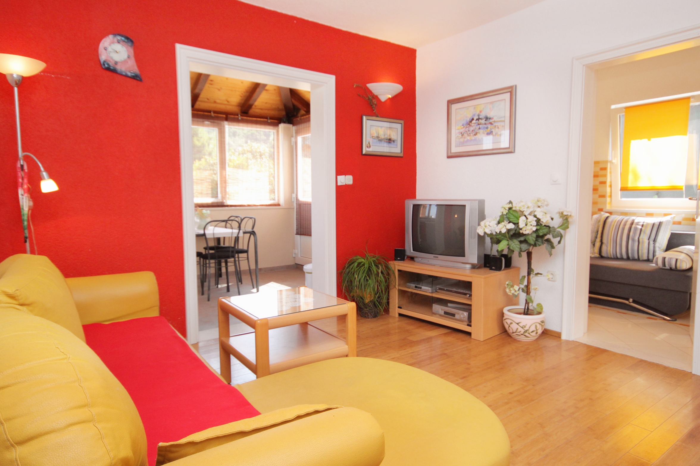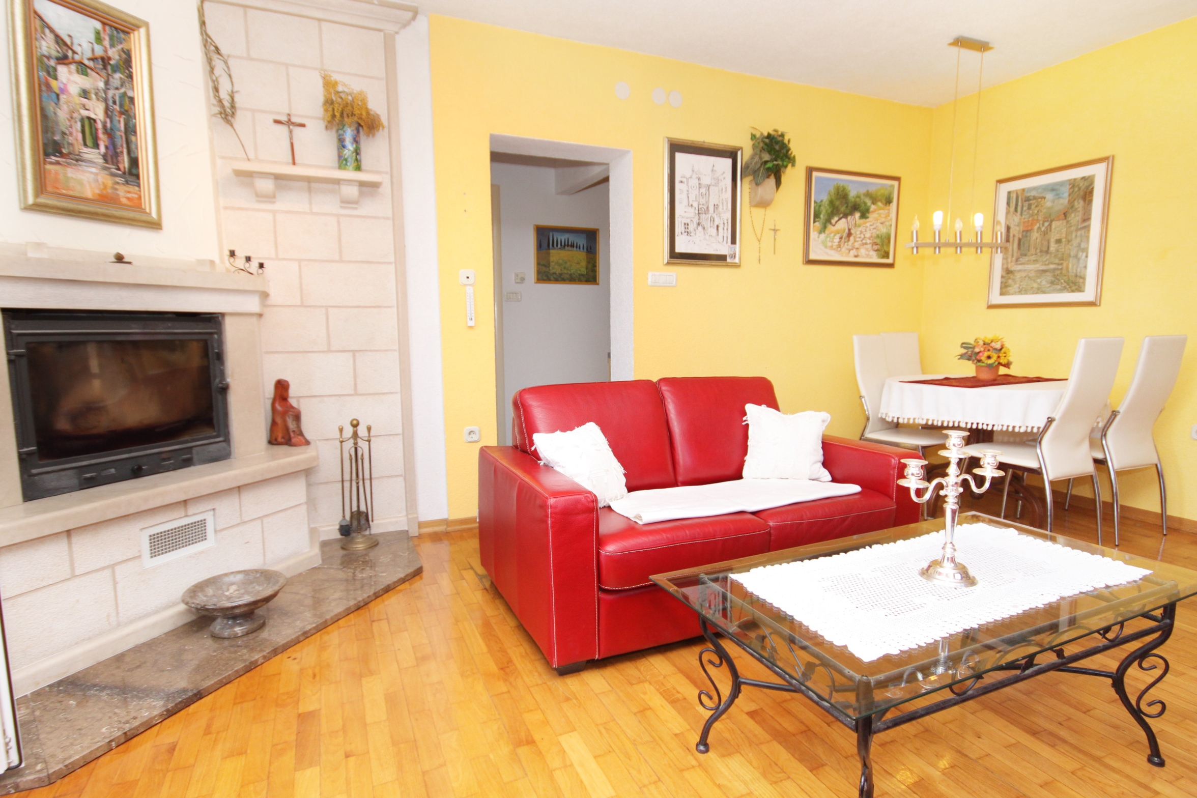 Dom może przyjąć 10 gości. Łóżka znajdują się w sypialniach, których jest 4, oraz w pokoju dziennym, na powierzchni 121m2. Goście mają dostęp do tarasu, by korzystać z ciepłych, letnich wieczorów. Z domu wakacyjnego roztacza się widok na morze. Grill jest dostępny tylko do użytku gości z tej kwatery. W trakcie swojego pobytu goście mogą zrelakswować się w prywatnym basenie. Do kwatery można przyjechać ze zwierzęciem domowym, a usługa jest wliczona w cenę wynajęcia kwatery. Wejście do kwatery nie jest oddzielone drzwiami od pozostałych pomieszczeń obiektu. WLICZONE W CENĘ: taksa pobytowa, sprzątanie końcowe, klimatyzacja, basen, parking, internet, zwierzęta domowe, łóżeczko dziecięce, żelazko, deska do prasowania, suszarka do włosów. OBOWIĄZKOWE KOSZTY DODATKOWE: dopłata za krótki termin (procent dopłaty w zalezności od liczby noclegów: 30% - 1, 20% - 2, 10% - 3). Dostępność dodatkowych usług w rezerwowanym terminie oraz ich cenę (jeśli nie jest podana) należy sprawdzić wcześniej. Za dodatowe usługi, które nie zostały uwzględnione w kalkulacji ceny, płaci się bezpośrednio właścicielowi obiektu, pod warunkiem śe gość korzysta z tych usług. Zniżki od ceny podstawowej: bezpłatny dzień 14=13 (przy pobycie, trwającym co najmniej 14 dni, otrzymujecie jeden bezpłatny dzień na pobyt do 31.12.2026).