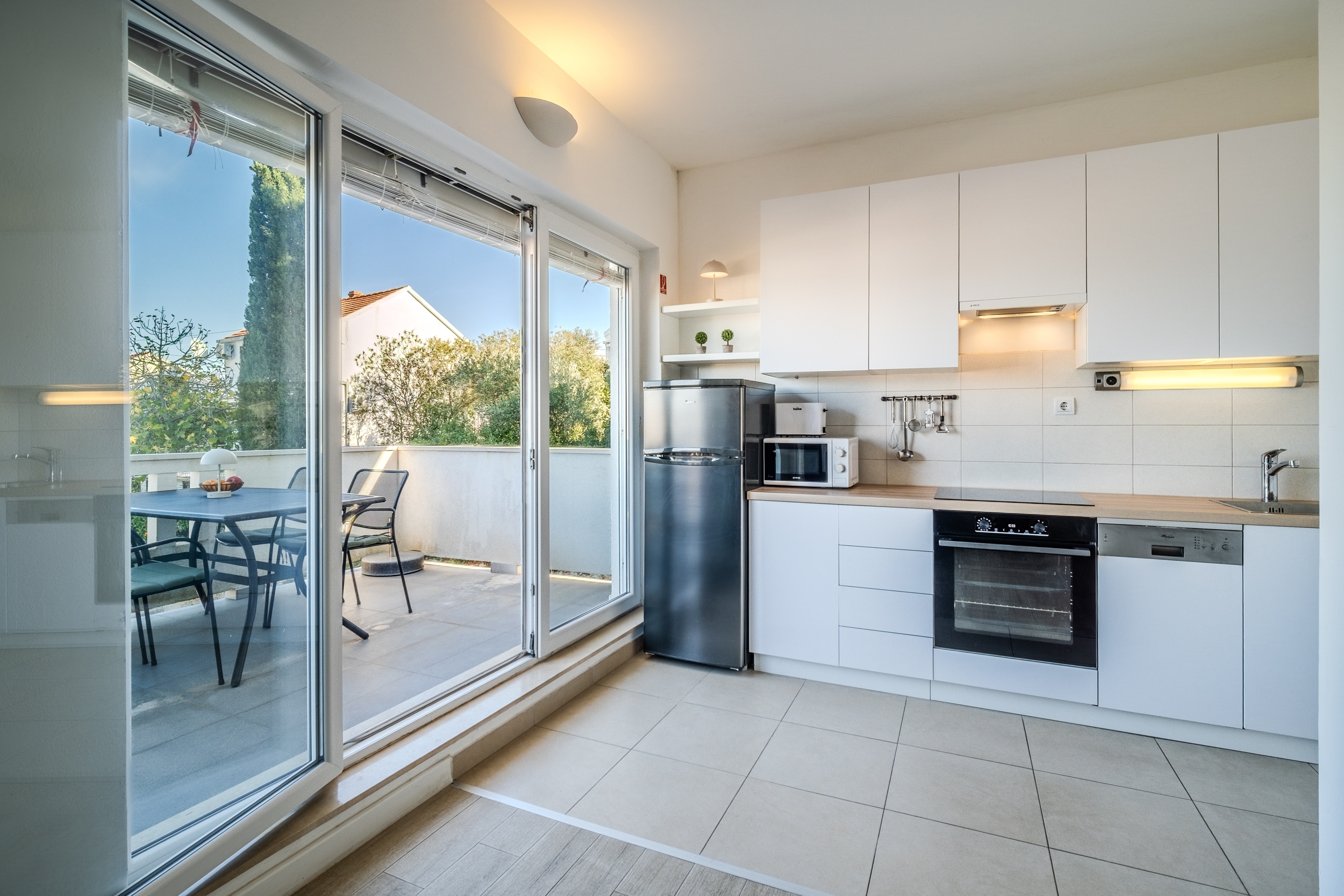 Apartament może przyjąć 4 gości. Łóżka znajdują się w sypialniach, których jest 1, oraz w pokoju dziennym, na powierzchni 58m2. Goście mają dostęp do tarasu, by korzystać z ciepłych, letnich wieczorów. Z apartamentu roztacza się widok na morze. Możliwość przygotowywania posiłków poprzez korzystanie ze wspólnego grilla. WLICZONE W CENĘ: taksa pobytowa, sprzątanie końcowe, klimatyzacja, parking, internet, łóżeczko dziecięce, żelazko, deska do prasowania, suszarka do włosów, przenośny grill. OBOWIĄZKOWE KOSZTY DODATKOWE: dopłata za krótki termin (procent dopłaty w zalezności od liczby noclegów: 30% - 1, 20% - 2, 10% - 3). Dostępność dodatkowych usług w rezerwowanym terminie oraz ich cenę (jeśli nie jest podana) należy sprawdzić wcześniej. Za dodatowe usługi, które nie zostały uwzględnione w kalkulacji ceny, płaci się bezpośrednio właścicielowi obiektu, pod warunkiem śe gość korzysta z tych usług. Zniżki od ceny podstawowej: bezpłatny dzień 14=13 (przy pobycie, trwającym co najmniej 14 dni, otrzymujecie jeden bezpłatny dzień na pobyt do 31.12.2026).