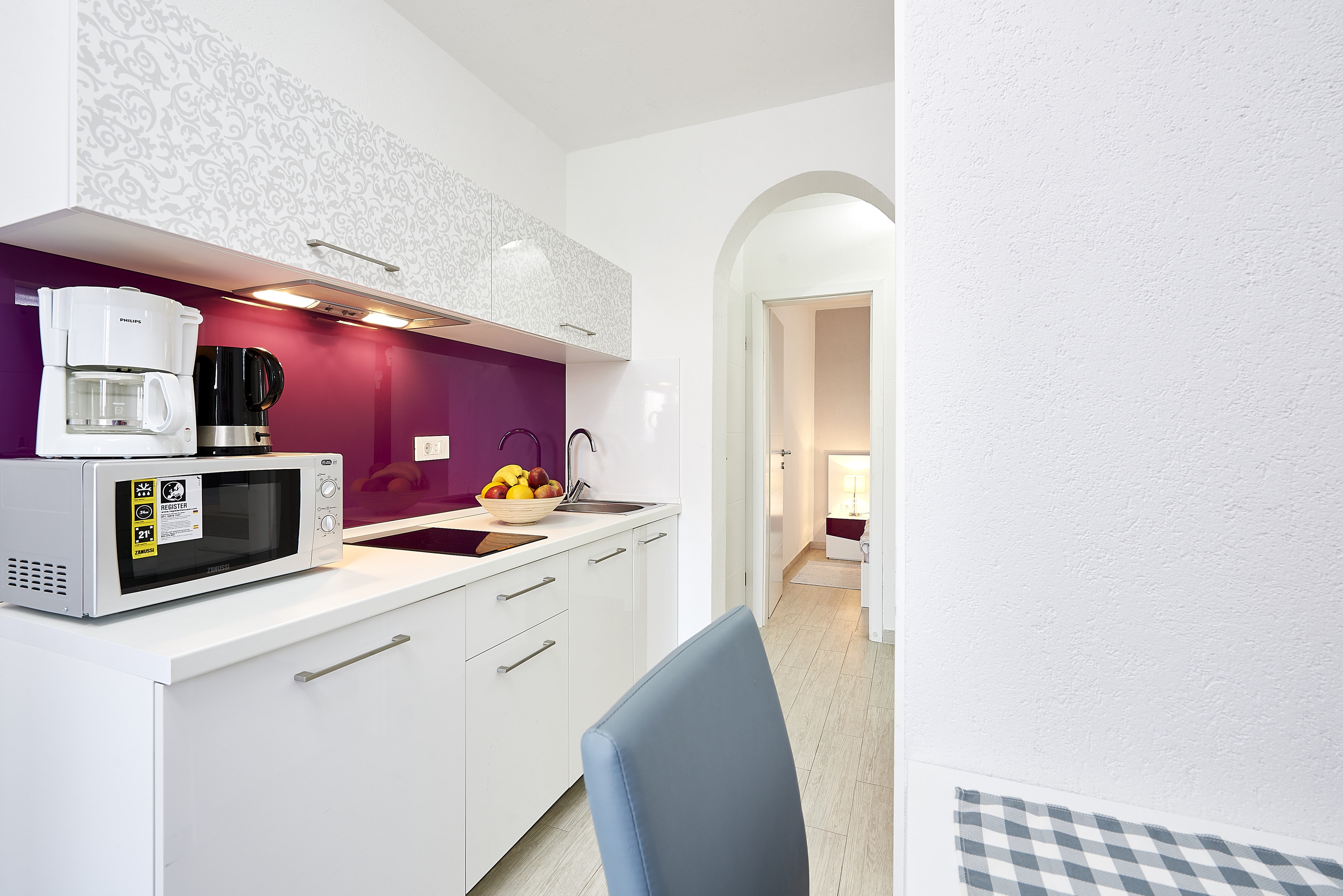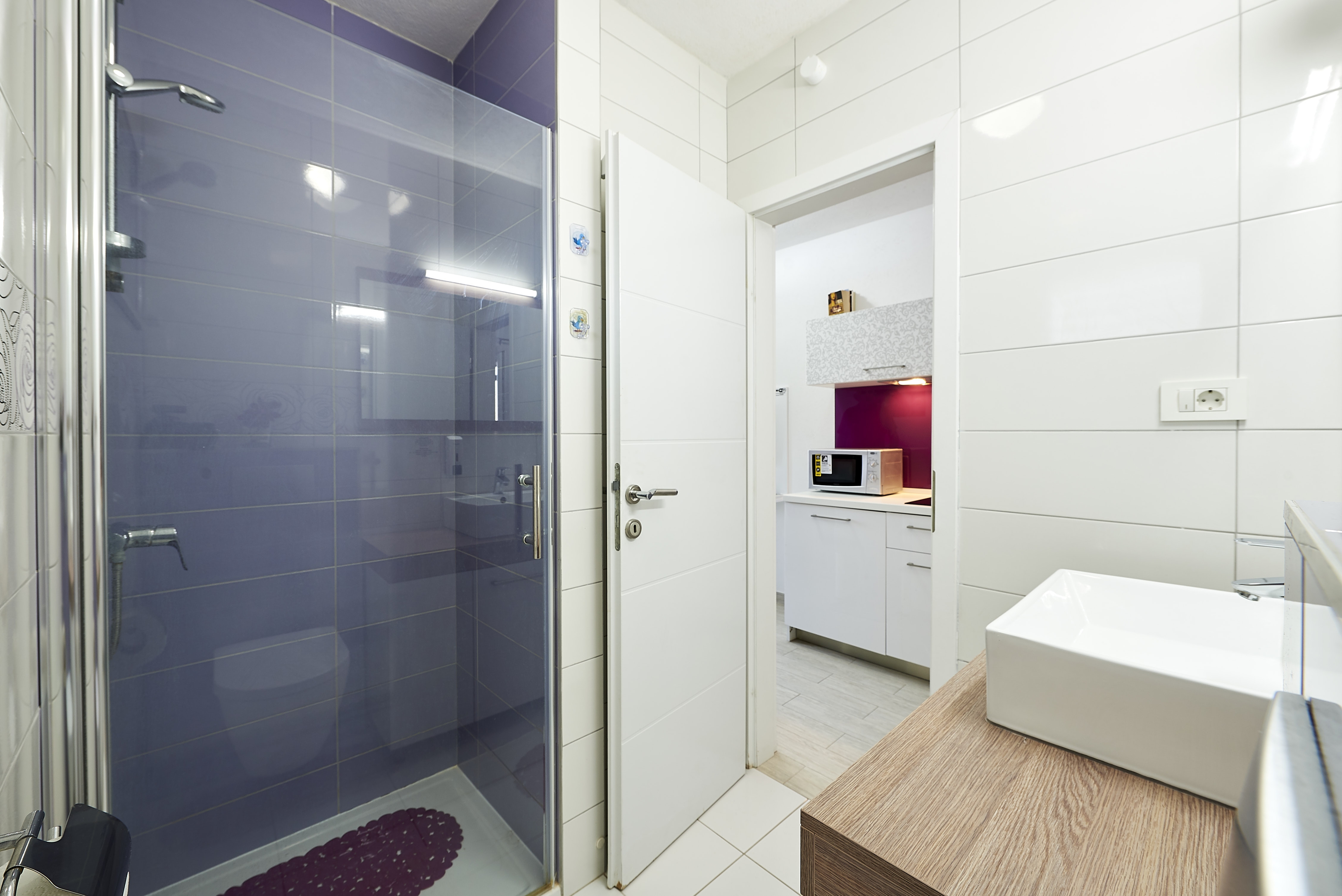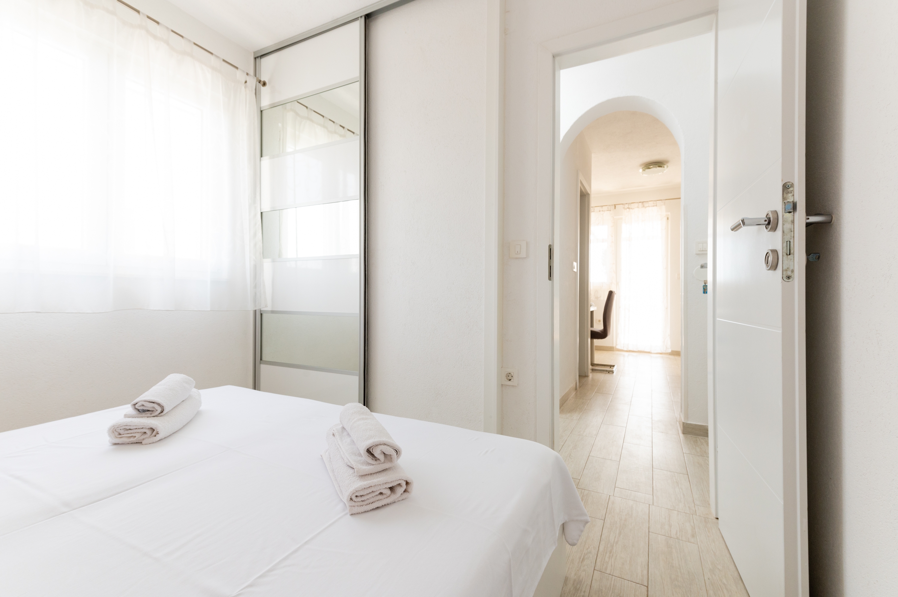 Apartament może przyjąć 2 gości. Łóżka znajdują się w sypialniach, których jest 1, na powierzchni 28m2. Goście mają dostęp do tarasu, by korzystać z ciepłych, letnich wieczorów. Z apartamentu roztacza się widok na morze. Możliwość przygotowywania posiłków poprzez korzystanie ze wspólnego grilla. W kwaterze dozwolony jest pobyt zwierzęcia domowego, za dopłatą. WLICZONE W CENĘ: taksa pobytowa, sprzątanie końcowe, klimatyzacja, parking, internet, łóżeczko dziecięce, suszarka do włosów, 1 łóżeczko dziecięce (zawarte w cenie). OBOWIĄZKOWE KOSZTY DODATKOWE: dopłata za krótki termin (procent dopłaty w zalezności od liczby noclegów: 30% - 1, 20% - 2, 10% - 3). NIEOBOWIĄZKOWE KOSZTY DODATKOWE: pranie bielizny (5,00 € pranie), zwierzęta domowe (5,00 € za nocleg). Dostępność dodatkowych usług w rezerwowanym terminie oraz ich cenę (jeśli nie jest podana) należy sprawdzić wcześniej. Za dodatowe usługi, które nie zostały uwzględnione w kalkulacji ceny, płaci się bezpośrednio właścicielowi obiektu, pod warunkiem śe gość korzysta z tych usług.