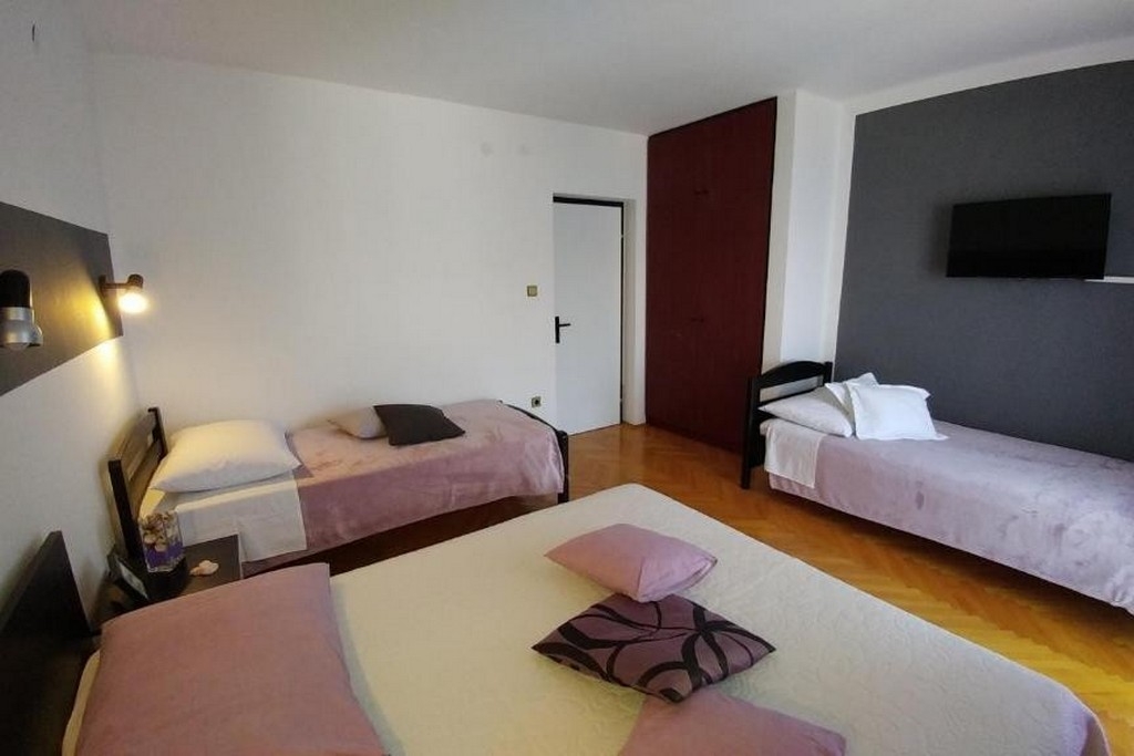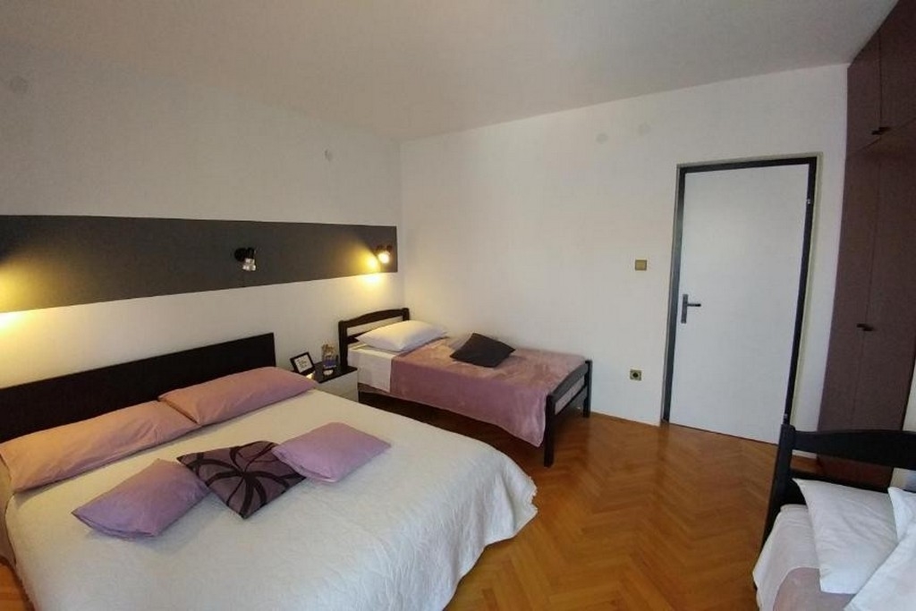 Apartament może przyjąć 8 gości. Łóżka znajdują się w sypialniach, których jest 2, na powierzchni 73m2. Goście mają dostęp do tarasu, by korzystać z ciepłych, letnich wieczorów. Z apartamentu roztacza się widok na morze. Grill jest dostępny tylko do użytku gości z tej kwatery. W kwaterze dozwolony jest pobyt zwierzęcia domowego, za dopłatą. WLICZONE W CENĘ: taksa pobytowa, sprzątanie końcowe, klimatyzacja, parking, internet, suszarka do włosów. NIEOBOWIĄZKOWE KOSZTY DODATKOWE: zwierzęta domowe (10,00 € za nocleg). Dostępność dodatkowych usług w rezerwowanym terminie oraz ich cenę (jeśli nie jest podana) należy sprawdzić wcześniej. Za dodatowe usługi, które nie zostały uwzględnione w kalkulacji ceny, płaci się bezpośrednio właścicielowi obiektu, pod warunkiem śe gość korzysta z tych usług. Zniżki od ceny podstawowej: bezpłatny dzień 14=13 (przy pobycie, trwającym co najmniej 14 dni, otrzymujecie jeden bezpłatny dzień na pobyt do 31.12.2026).