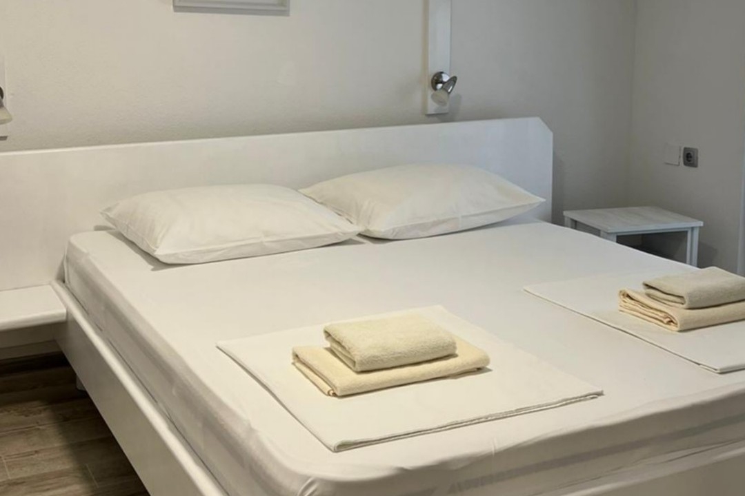 Apartament może przyjąć 8 gości. Łóżka znajdują się w sypialniach, których jest 4, na powierzchni 85m2. Goście mają dostęp do tarasu, by korzystać z ciepłych, letnich wieczorów. Z apartamentu roztacza się widok na morze. Możliwość przygotowywania posiłków poprzez korzystanie ze wspólnego grilla. W kwaterze dozwolony jest pobyt zwierzęcia domowego, za dopłatą. WLICZONE W CENĘ: taksa pobytowa, sprzątanie końcowe, klimatyzacja, parking, internet, żelazko, deska do prasowania, suszarka do włosów, przenośny grill. NIEOBOWIĄZKOWE KOSZTY DODATKOWE: zwierzęta domowe (10,00 € za nocleg). Dostępność dodatkowych usług w rezerwowanym terminie oraz ich cenę (jeśli nie jest podana) należy sprawdzić wcześniej. Za dodatowe usługi, które nie zostały uwzględnione w kalkulacji ceny, płaci się bezpośrednio właścicielowi obiektu, pod warunkiem śe gość korzysta z tych usług.