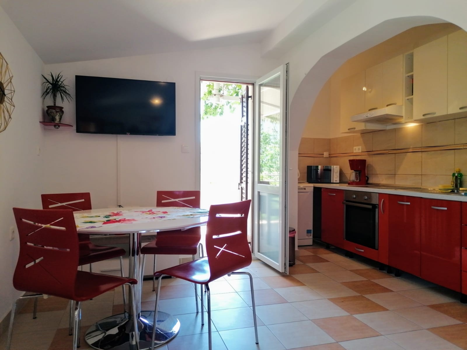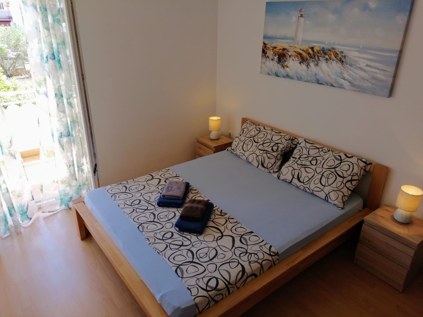 Apartament może przyjąć 5 gości. Łóżka znajdują się w sypialniach, których jest 2, oraz w pokoju dziennym, na powierzchni 80m2. Goście mają dostęp do tarasu, by korzystać z ciepłych, letnich wieczorów. Z apartamentu roztacza się widok na morze. Grill jest dostępny tylko do użytku gości z tej kwatery. W kwaterze dozwolony jest pobyt zwierzęcia domowego, za dopłatą. WLICZONE W CENĘ: taksa pobytowa, sprzątanie końcowe, klimatyzacja, parking, internet, łóżeczko dziecięce, żelazko, suszarka do włosów. OBOWIĄZKOWE KOSZTY DODATKOWE: dopłata za krótki termin (procent dopłaty w zalezności od liczby noclegów: 30% - 1, 20% - 2, 10% - 3). NIEOBOWIĄZKOWE KOSZTY DODATKOWE: zwierzęta domowe (5,00 € za nocleg). Dostępność dodatkowych usług w rezerwowanym terminie oraz ich cenę (jeśli nie jest podana) należy sprawdzić wcześniej. Za dodatowe usługi, które nie zostały uwzględnione w kalkulacji ceny, płaci się bezpośrednio właścicielowi obiektu, pod warunkiem śe gość korzysta z tych usług.