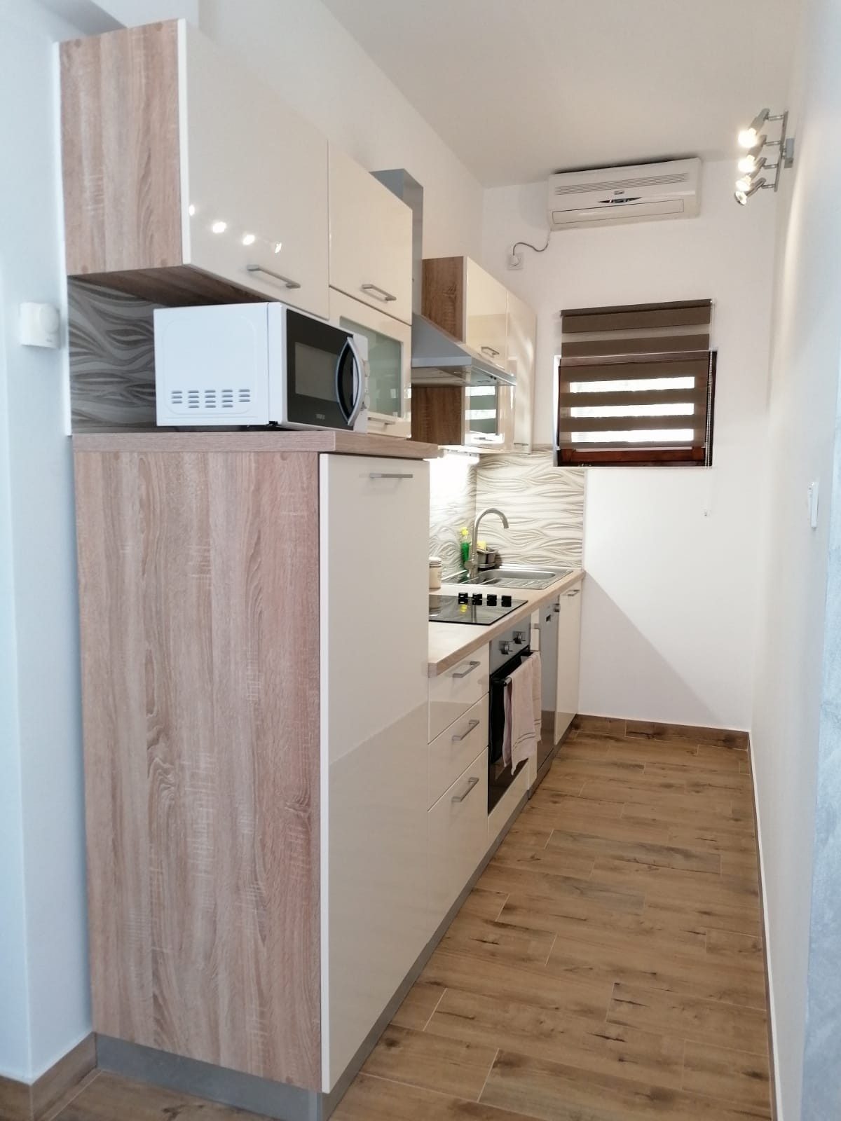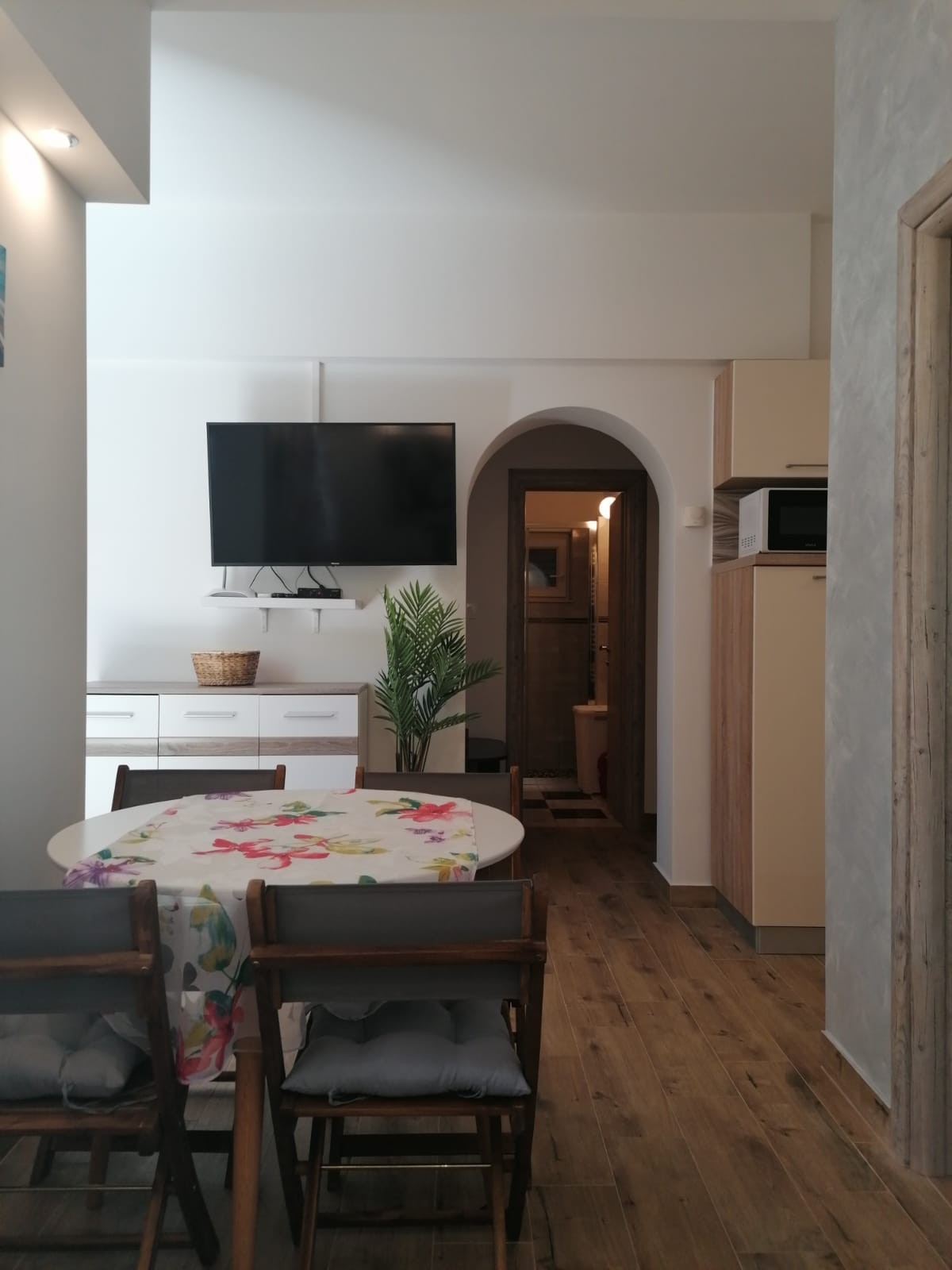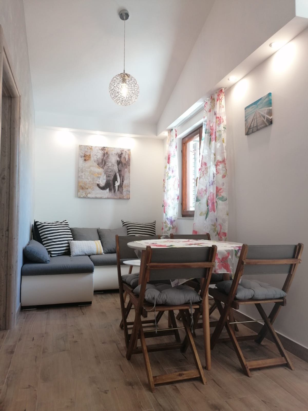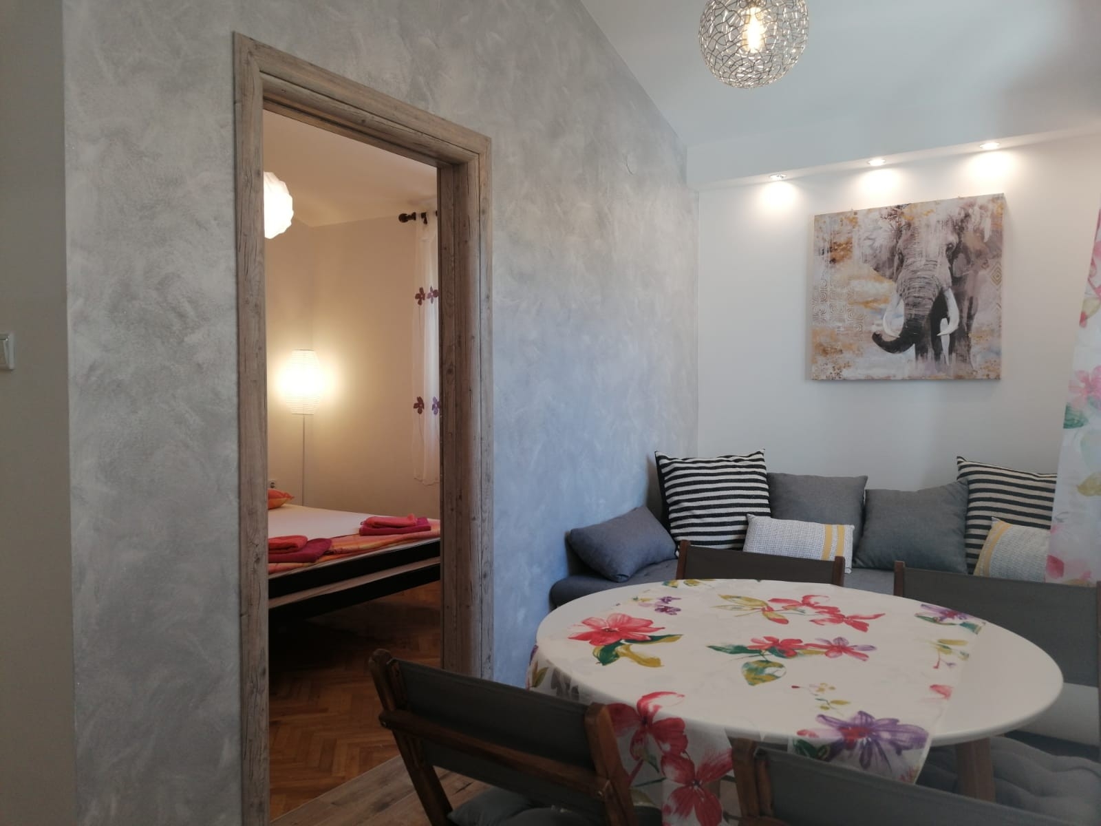Apartament może przyjąć 4 gości. Łóżka znajdują się w sypialniach, których jest 2, na powierzchni 55m2. Goście mają dostęp do tarasu, by korzystać z ciepłych, letnich wieczorów. Grill jest dostępny tylko do użytku gości z tej kwatery. W kwaterze dozwolony jest pobyt zwierzęcia domowego, za dopłatą. WLICZONE W CENĘ: taksa pobytowa, sprzątanie końcowe, klimatyzacja, parking, internet, łóżeczko dziecięce, żelazko, suszarka do włosów. OBOWIĄZKOWE KOSZTY DODATKOWE: dopłata za krótki termin (procent dopłaty w zalezności od liczby noclegów: 30% - 1, 20% - 2, 10% - 3). NIEOBOWIĄZKOWE KOSZTY DODATKOWE: zwierzęta domowe (5,00 € za nocleg). Dostępność dodatkowych usług w rezerwowanym terminie oraz ich cenę (jeśli nie jest podana) należy sprawdzić wcześniej. Za dodatowe usługi, które nie zostały uwzględnione w kalkulacji ceny, płaci się bezpośrednio właścicielowi obiektu, pod warunkiem śe gość korzysta z tych usług.