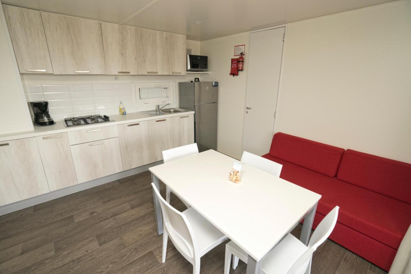 Mobile home FAMILY PLUS for 4 persons. The air-conditioned mobile home features 2 bedrooms and 1 bathroom with a shower and a hairdryer. A kitchen equipped with a stovetop, a refrigerator and kitchenware is available for cooking and storing food. The mobile home offers a seating area, a wardrobe, a safe deposit box along with a terrace. The unit offers 3 beds. Domek holenderski - 6 osobowy. Powierzchnia pokoju ok.: 24 mkw. ;