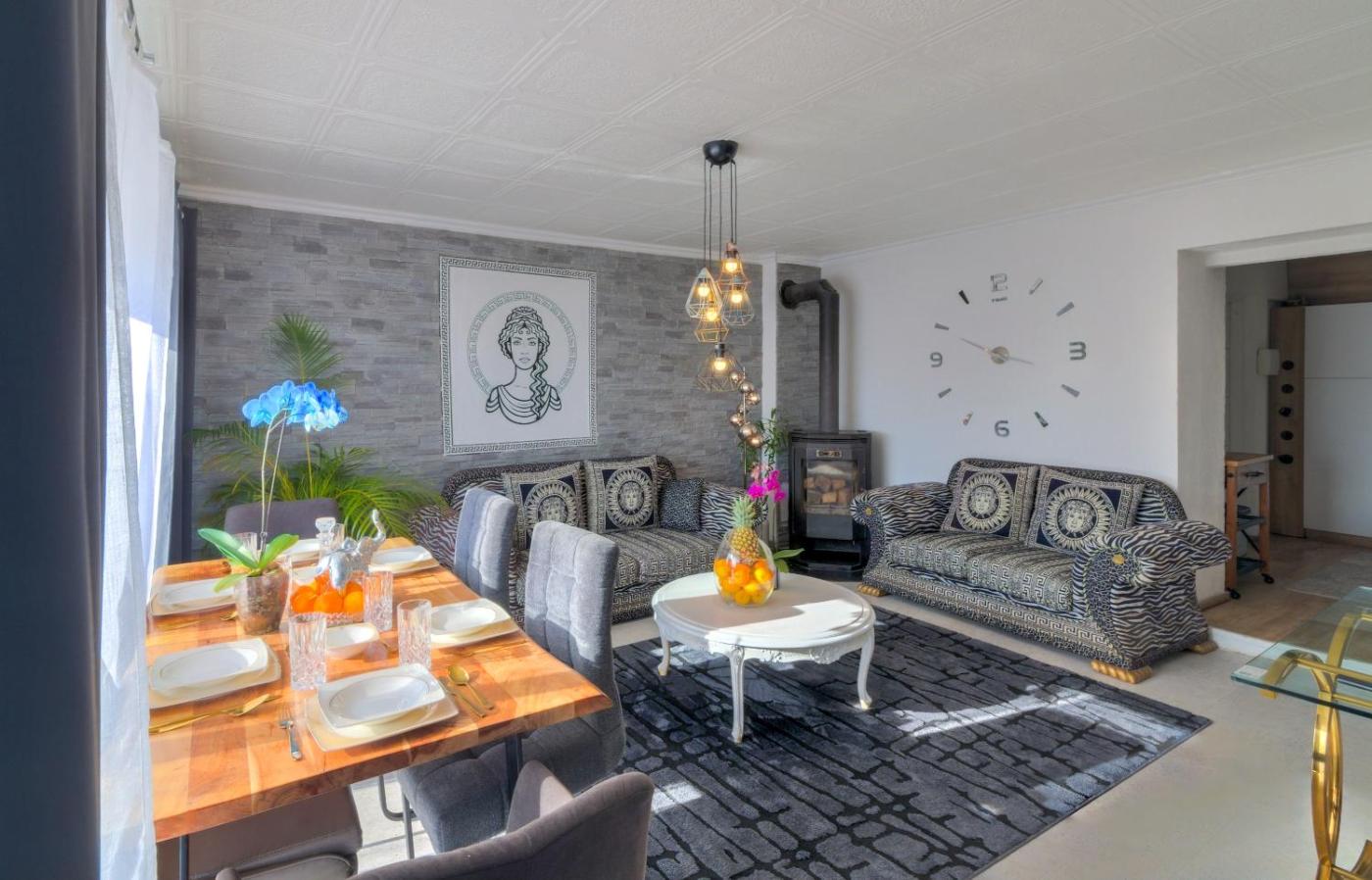 Willa. This luxurious villa provides a private pool, a hot tub and a fireplace. Featuring a private entrance, this spacious villa also is comprised of 4 bedrooms, a seating area and 4 bathrooms with a bath and a shower. Guests will find a stovetop, a refrigerator, a dishwasher and kitchenware in the fully equipped kitchen. The villa also has a barbecue. The air-conditioned villa offers a flat-screen TV, a washing machine, a tea and coffee maker, a dining area as well as sea views. The unit offers 4 beds. Willa - 8 osobowy. Powierzchnia pokoju ok.: 250 mkw.
