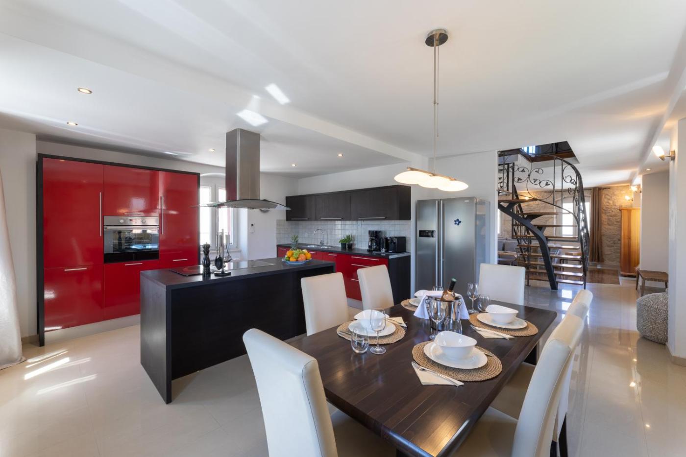 W willi do dyspozycji gości przygotowano kilka sypialni (2), jadalnię oraz kuchnię z lodówką i zmywarką. Wyposażenie obejmuje też telewizor z płaskim ekranem z dostępem do kanałów kablowych. W willi zapewniono ręczniki i pościel.