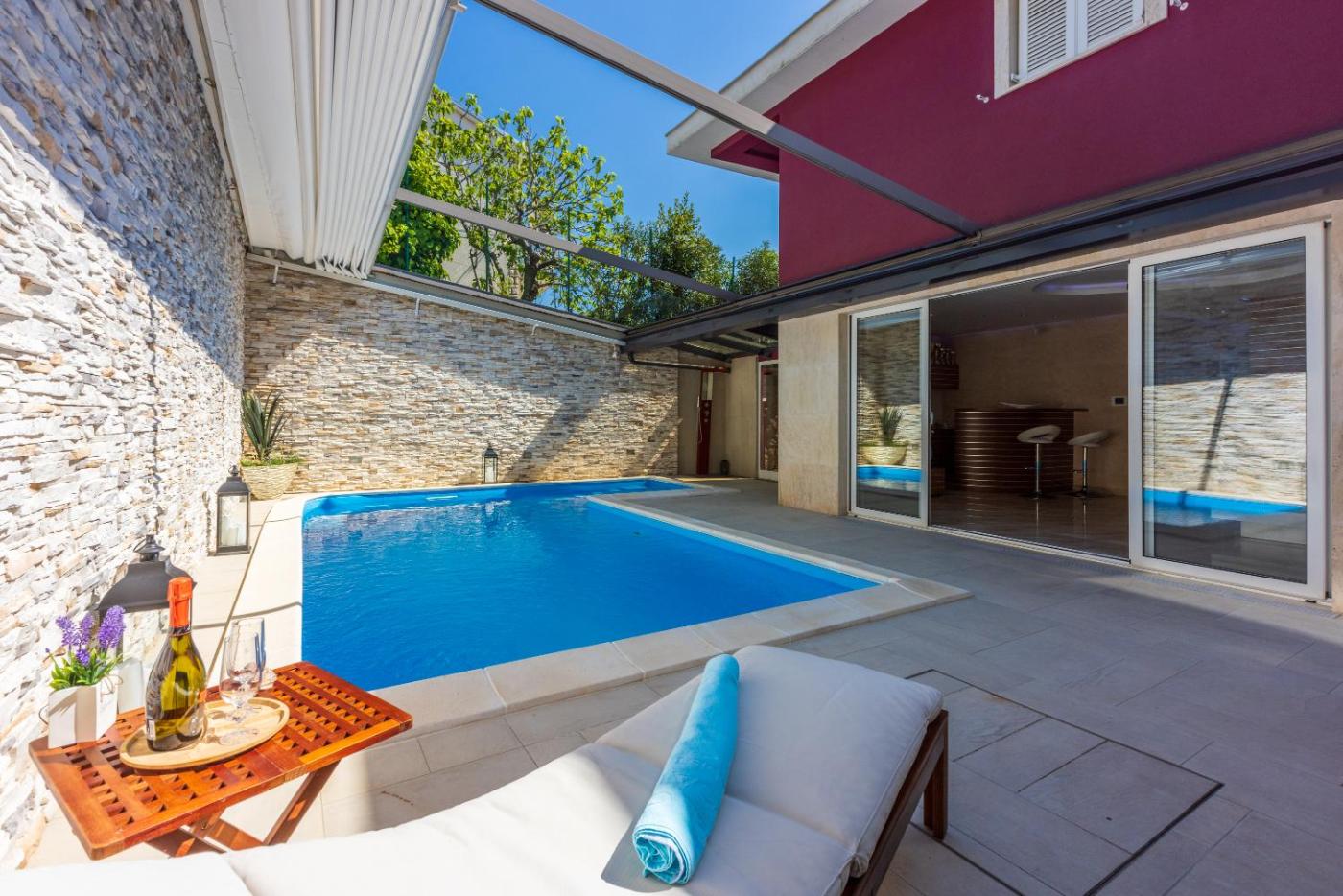 Obiekt Villa M oferuje balkon oraz widok na ogród. Do dyspozycji Gości jest również ekspres do kawy. Odległość ważnych miejsc od obiektu: Plaża Riviera – około 200 m. Oferta willi obejmuje prywatny basen, ogród, sprzęt do grillowania, bezpłatne Wi-Fi oraz bezpłatny prywatny parking.