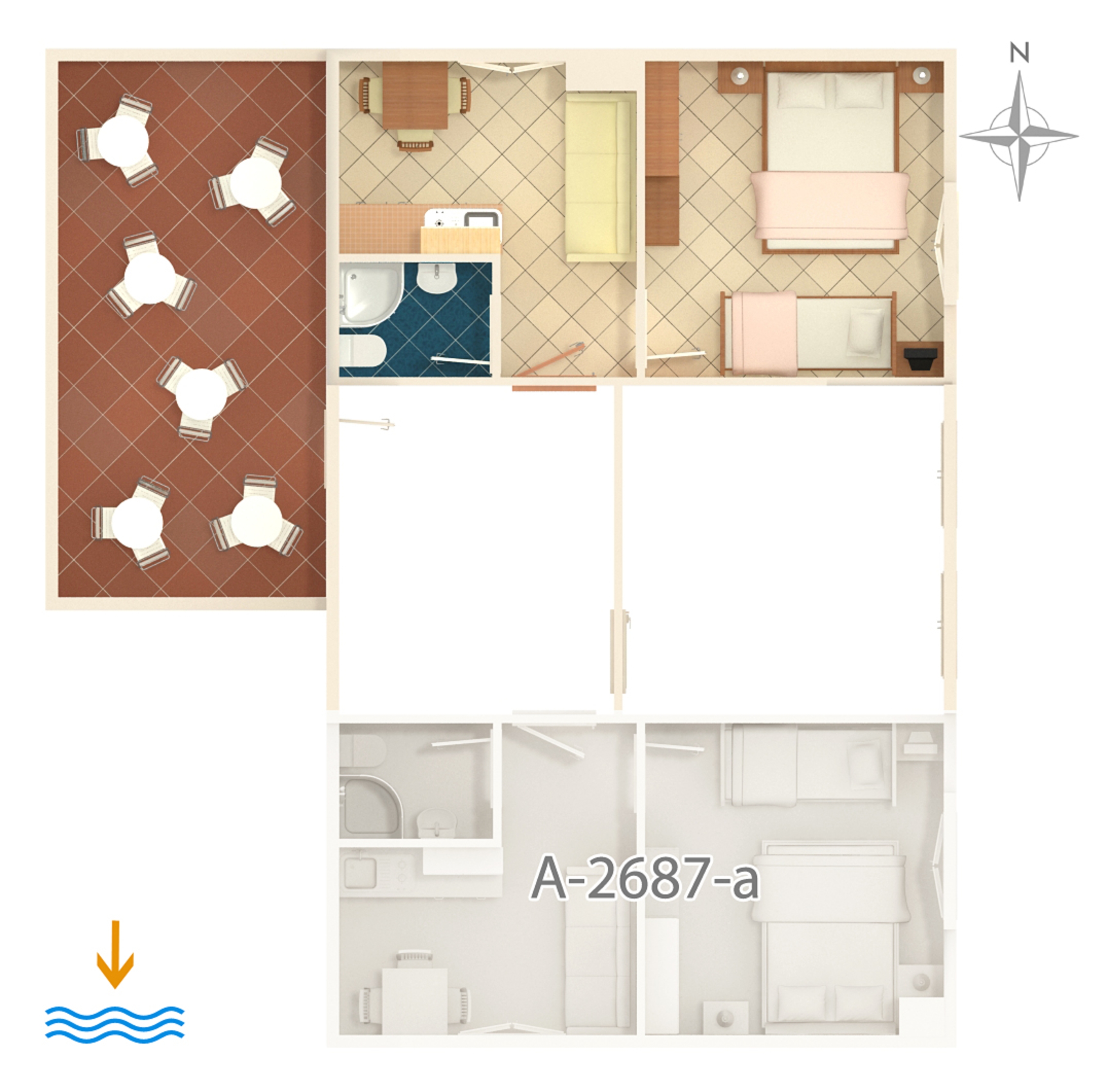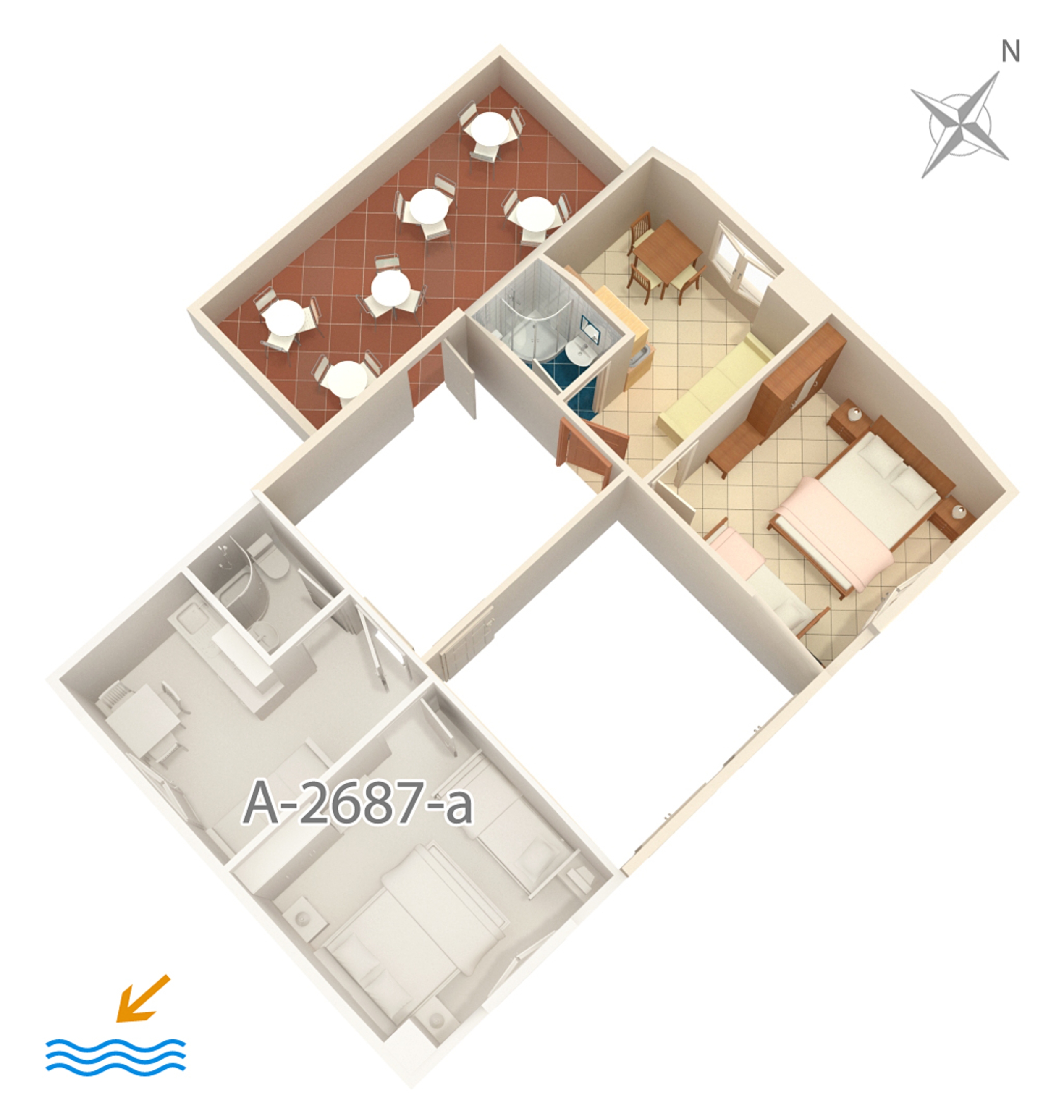 Apartament może przyjąć 4 gości. Łóżka znajdują się w sypialniach, których jest 1, oraz w jadalni, na powierzchni 25m2. Z apartamentu roztacza się widok na morze. Możliwość przygotowywania posiłków poprzez korzystanie ze wspólnego grilla. W kwaterze dozwolony jest pobyt zwierzęcia domowego, za dopłatą. Rezerwowana kwatera ma taras wspólny z inną kwaterą. WLICZONE W CENĘ: taksa pobytowa, sprzątanie końcowe, klimatyzacja, internet, łóżeczko dziecięce, żelazko, deska do prasowania, suszarka do włosów. NIEOBOWIĄZKOWE KOSZTY DODATKOWE: pranie bielizny (5,00 € pranie), miejsce do cumowania łodzi (10,00 € za nocleg), zwierzęta domowe (10,00 € za nocleg). Dostępność dodatkowych usług w rezerwowanym terminie oraz ich cenę (jeśli nie jest podana) należy sprawdzić wcześniej. Za dodatowe usługi, które nie zostały uwzględnione w kalkulacji ceny, płaci się bezpośrednio właścicielowi obiektu, pod warunkiem śe gość korzysta z tych usług.
