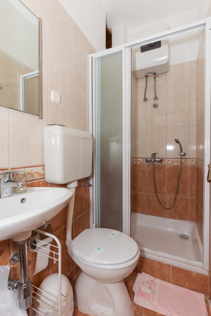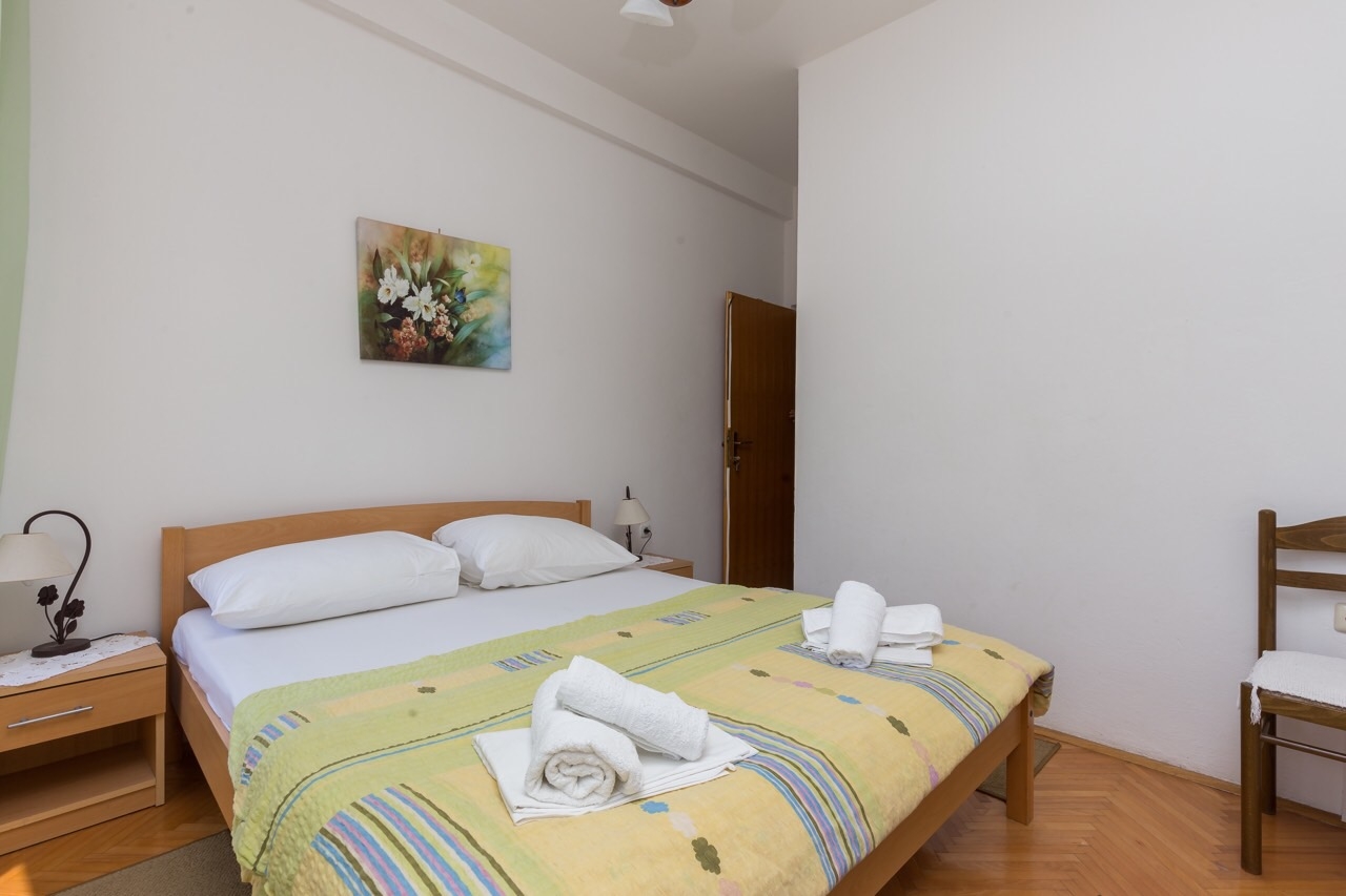 Pokój może przyjąć 2 gości. Łóżka znajdują się w sypialniach, których jest 1, na powierzchni 12m2. Z pokoju roztacza się widok na morze. Możliwość przygotowywania posiłków poprzez korzystanie ze wspólnego grilla. W kwaterze dozwolony jest pobyt zwierzęcia domowego, za dopłatą. Rezerwowana kwatera to pokój z własną łazienką, bez możliwości korzystania z kuchni. Rezerwowana kwatera ma taras wspólny z inną kwaterą. WLICZONE W CENĘ: taksa pobytowa, sprzątanie końcowe, klimatyzacja, internet, łóżeczko dziecięce, żelazko, deska do prasowania, suszarka do włosów. NIEOBOWIĄZKOWE KOSZTY DODATKOWE: pranie bielizny (5,00 € pranie), miejsce do cumowania łodzi (10,00 € za nocleg), zwierzęta domowe (10,00 € za nocleg). Dostępność dodatkowych usług w rezerwowanym terminie oraz ich cenę (jeśli nie jest podana) należy sprawdzić wcześniej. Za dodatowe usługi, które nie zostały uwzględnione w kalkulacji ceny, płaci się bezpośrednio właścicielowi obiektu, pod warunkiem śe gość korzysta z tych usług.