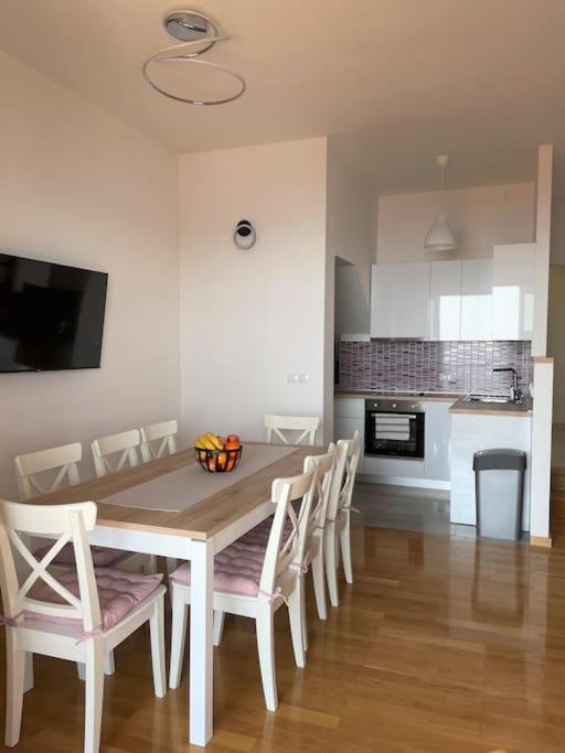 Dom z 4 sypialniami. In the well-equipped kitchen, guests will find a stovetop, a refrigerator, kitchenware and an oven. The air-conditioned holiday home offers a flat-screen TV, a washing machine, a private entrance, a coffee machine as well as sea views. The unit has 4 beds. Dom wakacyjny - 8 osobowy. Powierzchnia pokoju ok.: 7 mkw.