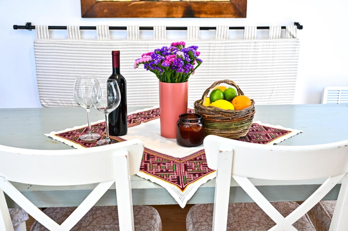 W domu wakacyjnym zapewniono taras, kilka sypialni (3), salon, kuchnię ze standardowym wyposażeniem, a także kilka łazienek (2) z bidetem i wanną. Goście mogą podziwiać widok na morze. Wyposażenie obejmuje też telewizor z płaskim ekranem z dostępem do kanałów satelitarnych. W domu wakacyjnym zapewniono ręczniki i pościel.