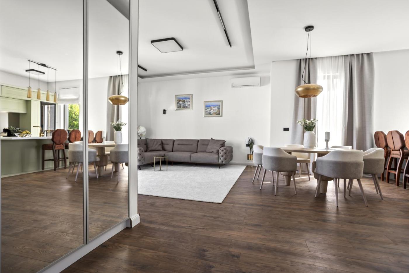 Apartament typu Penthouse. Ten klimatyzowany apartament z prywatnym wejściem mieści 3 oddzielne sypialnie, salon oraz 2 łazienki z wanną i prysznicem. W dobrze wyposażonej kuchni przygotowano płytę kuchenną, lodówkę, zmywarkę do naczyń oraz przybory kuchenne. Goście mogą także korzystać ze sprzętu do grillowania. Apartament jest przestronny i ma dźwiękoszczelne ściany. Udogodnienia obejmują telewizor z płaskim ekranem i dostępem do platform streamingowych, pralkę oraz ekspres do kawy. Z okien roztacza się widok na morze. Do dyspozycji gości są 4 łóżka. Apartament - 6 osobowy. Powierzchnia pokoju ok.: 350 mkw.
