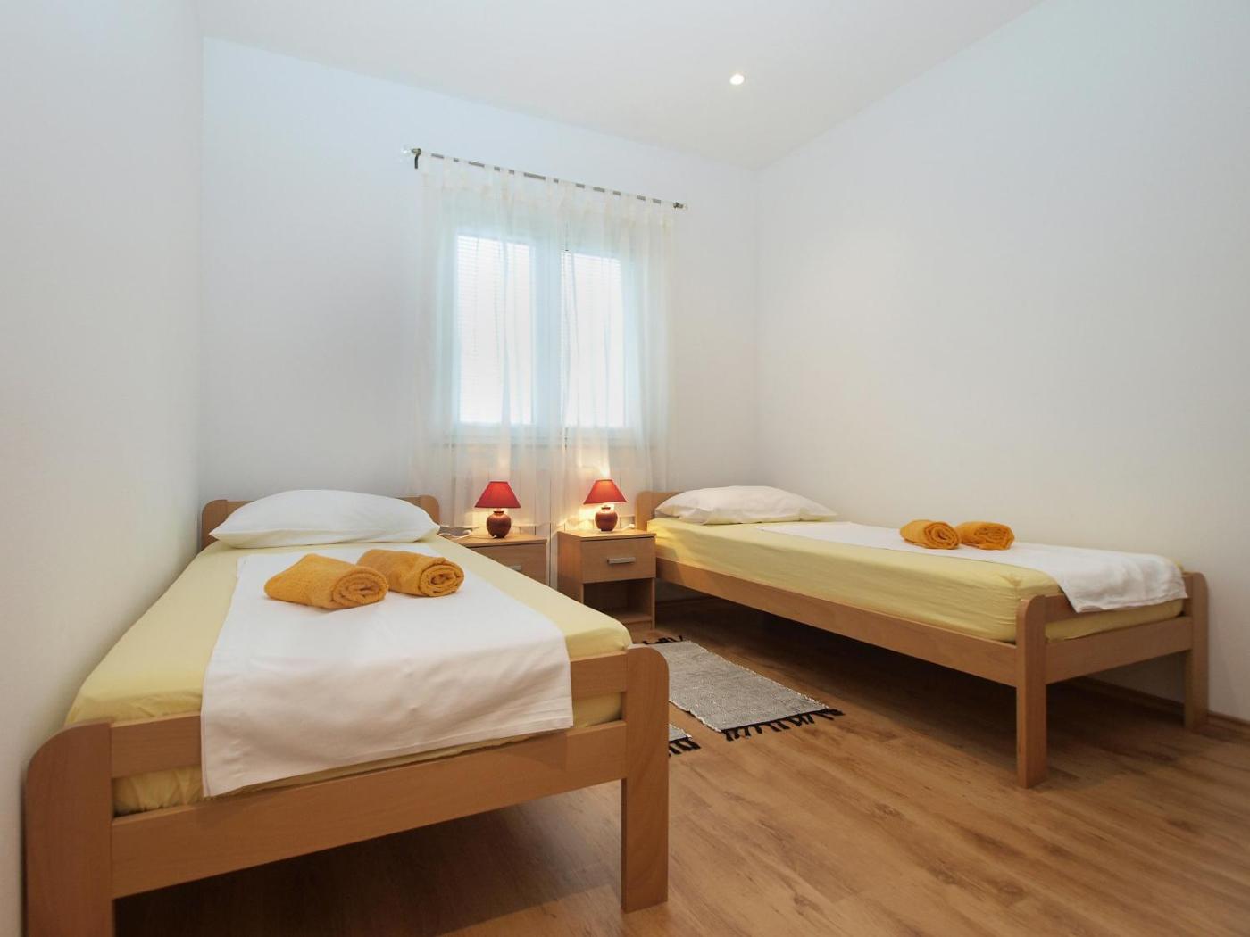 Apartament. Boasting a private entrance, this air-conditioned apartment includes 1 living room, 2 separate bedrooms and 1 bathroom with a bath or a shower and a hairdryer. Guests will find a stovetop, a refrigerator, kitchenware and an oven in the kitchen. The apartment also features a barbecue. A seating area with a TV, a coffee machine and a terrace are offered in this spacious apartment. The unit has 4 beds. Apartament - 5 osobowy. Powierzchnia pokoju ok.: 75 mkw.