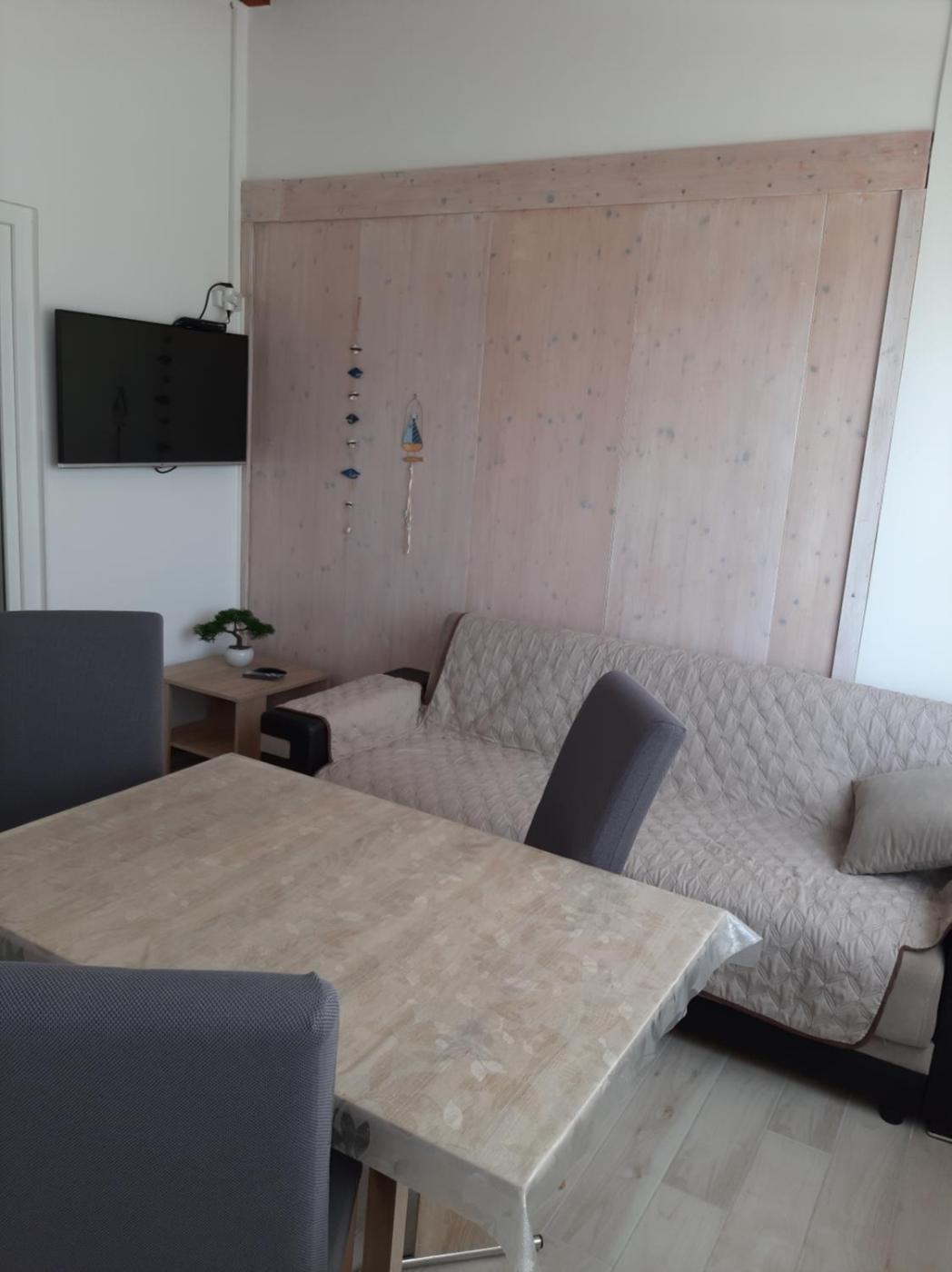 Apartament z 1 sypialnią. Boasting a private entrance, this air-conditioned apartment features 1 living room, 1 separate bedroom and 1 bathroom with a walk-in shower and a bath. Guests will find a stovetop, a refrigerator, a dishwasher and kitchenware in the fully equipped kitchen. The apartment also comes with a barbecue. Featuring a terrace with sea views, this apartment also features a washing machine and a flat-screen TV with cable channels. The unit has 2 beds. Apartament - 2 osobowy. Powierzchnia pokoju ok.: 40 mkw.