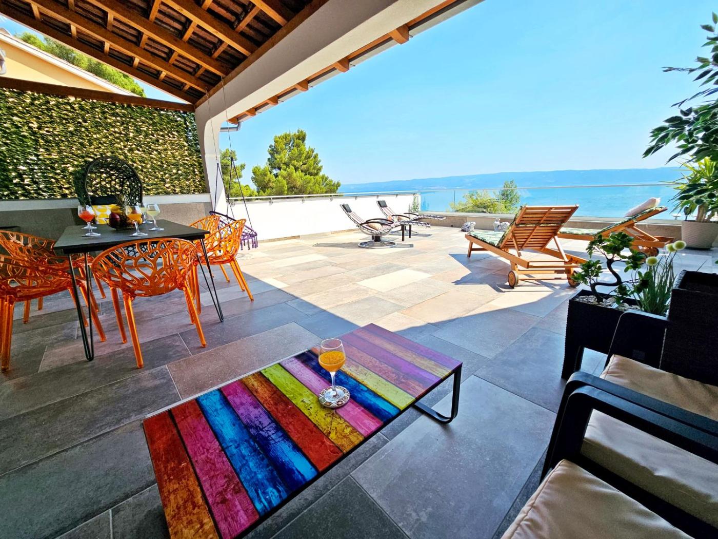W apartamencie zapewniono taras, kilka sypialni (2), salon z telewizorem z płaskim ekranem, kuchnię ze standardowym wyposażeniem, takim jak lodówka i zmywarka, a także kilka łazienek (2) z prysznicem. Goście mogą podziwiać widok na morze. W apartamencie zapewniono ręczniki i pościel.
