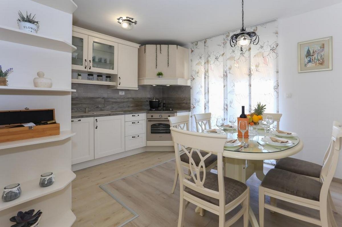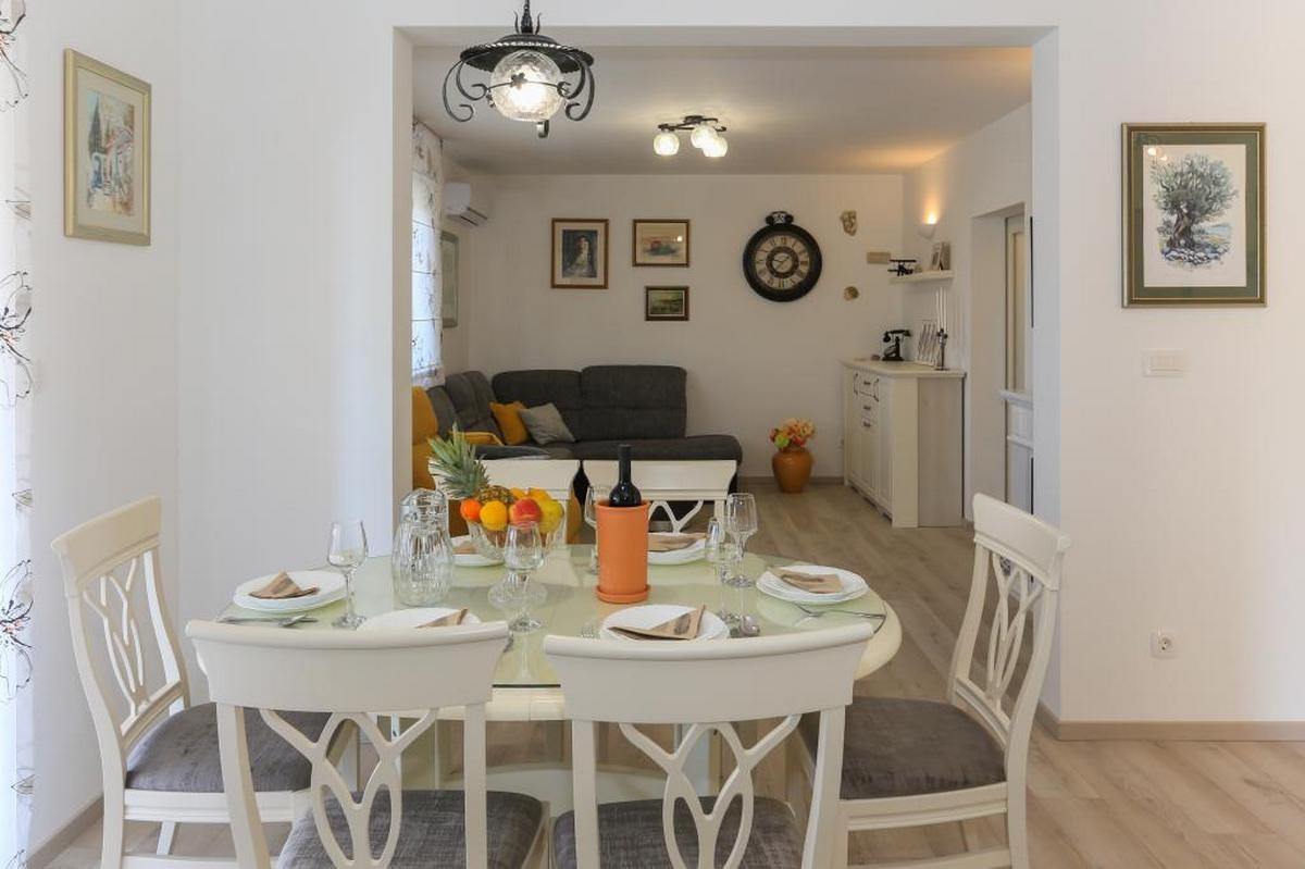Apartament może przyjąć 7 gości. Łóżka znajdują się w sypialniach, których jest 3, na powierzchni 102m2. Goście mają dostęp do balkonu, by korzystać z ciepłych, letnich wieczorów. Z apartamentu roztacza się widok na morze. Możliwość przygotowywania posiłków poprzez korzystanie ze wspólnego grilla. WLICZONE W CENĘ: taksa pobytowa, sprzątanie końcowe, klimatyzacja, parking, internet, rower, łóżeczko dziecięce, żelazko, deska do prasowania, suszarka do włosów. NIEOBOWIĄZKOWE KOSZTY DODATKOWE: dostawka (15,00 € za nocleg). Dostępność dodatkowych usług w rezerwowanym terminie oraz ich cenę (jeśli nie jest podana) należy sprawdzić wcześniej. Za dodatowe usługi, które nie zostały uwzględnione w kalkulacji ceny, płaci się bezpośrednio właścicielowi obiektu, pod warunkiem śe gość korzysta z tych usług. Zniżki od ceny podstawowej: bezpłatny dzień 14=13 (przy pobycie, trwającym co najmniej 14 dni, otrzymujecie jeden bezpłatny dzień na pobyt do 31.12.2026).
