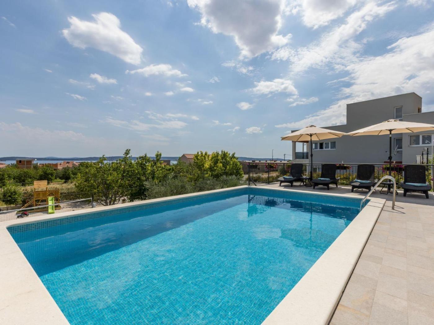 Holiday Home. This holiday home features a private pool. This spacious holiday home features 1 living room, 3 separate bedrooms and 2 bathrooms with a bath or a shower. The well-fitted kitchenette has a refrigerator, a dishwasher and kitchenware. The holiday home features air conditioning and a terrace. The unit has 5 beds.