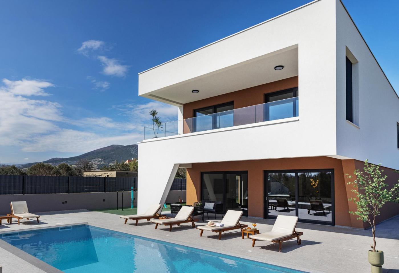 Featuring air-conditioned accommodation with a private pool, mountain view and a patio, Villa 60 Degrees with heated pool and basketball court is located in Kaštela. This property offers access to a balcony, table tennis, free private parking and free WiFi. The villa has an outdoor fireplace and a hot tub.