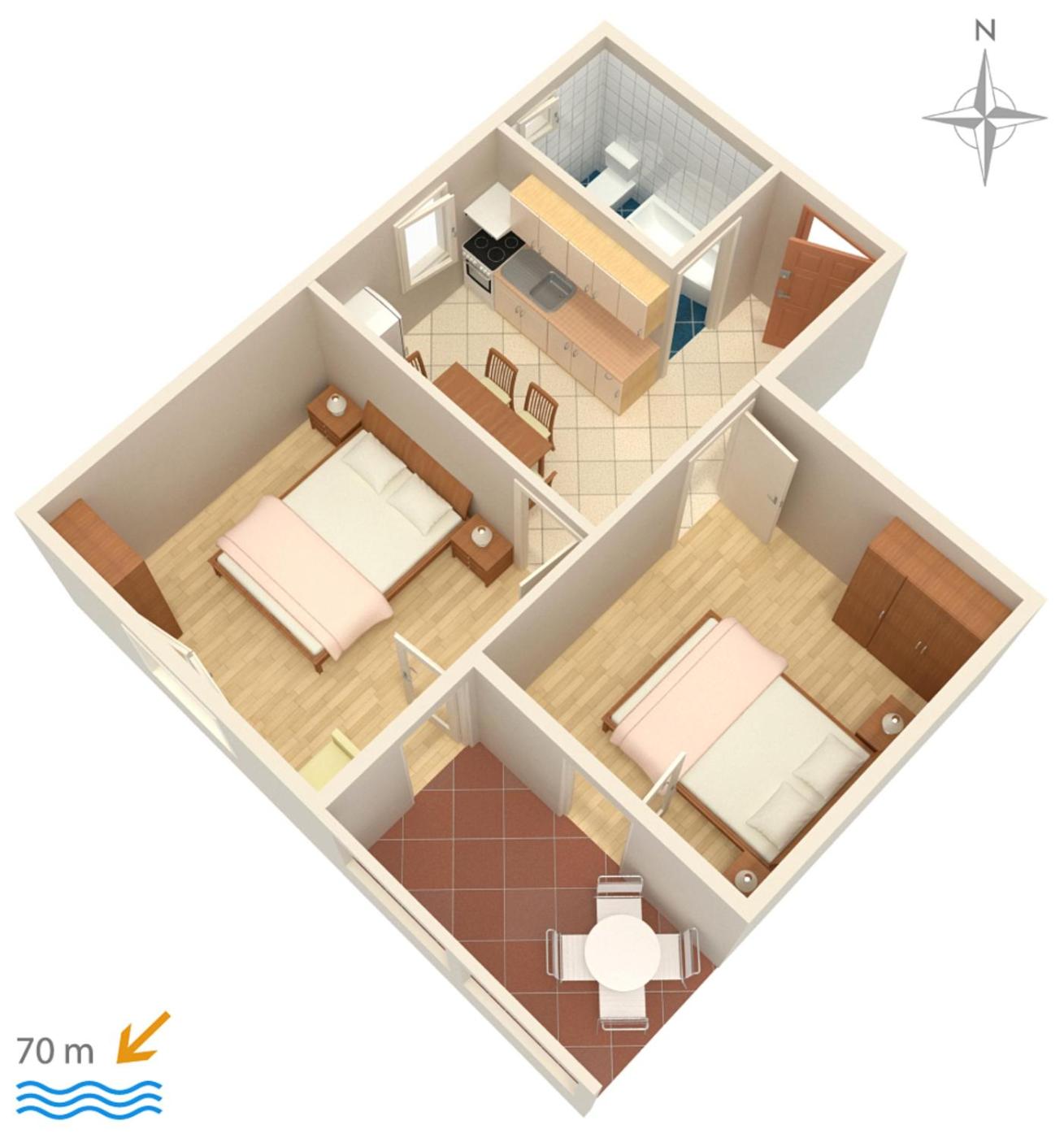 Obiekt Apartment Mandre 3084c oferuje taras oraz widok na morze. Odległość ważnych miejsc od obiektu: Plaża Lungo Mare West – około kilka kroków od obiektu.