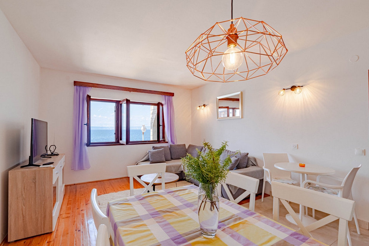 Apartament może przyjąć 7 gości. Łóżka znajdują się w sypialniach, których jest 3, oraz w pokoju dziennym, na powierzchni 93m2. Goście mają dostęp do tarasu, by korzystać z ciepłych, letnich wieczorów. Z apartamentu roztacza się widok na morze. Możliwość przygotowywania posiłków poprzez korzystanie ze wspólnego grilla. Do kwatery można przyjechać ze zwierzęciem domowym, a usługa jest wliczona w cenę wynajęcia kwatery. WLICZONE W CENĘ: taksa pobytowa, sprzątanie końcowe, klimatyzacja, internet, zwierzęta domowe, łóżeczko dziecięce, żelazko, deska do prasowania, suszarka do włosów. OBOWIĄZKOWE KOSZTY DODATKOWE: dopłata za krótki termin (procent dopłaty w zalezności od liczby noclegów: 30% - 1, 20% - 2, 10% - 3). Dostępność dodatkowych usług w rezerwowanym terminie oraz ich cenę (jeśli nie jest podana) należy sprawdzić wcześniej. Za dodatowe usługi, które nie zostały uwzględnione w kalkulacji ceny, płaci się bezpośrednio właścicielowi obiektu, pod warunkiem śe gość korzysta z tych usług. Zniżki od ceny podstawowej: bezpłatny dzień 14=13 (przy pobycie, trwającym co najmniej 14 dni, otrzymujecie jeden bezpłatny dzień na pobyt do 31.12.2026).