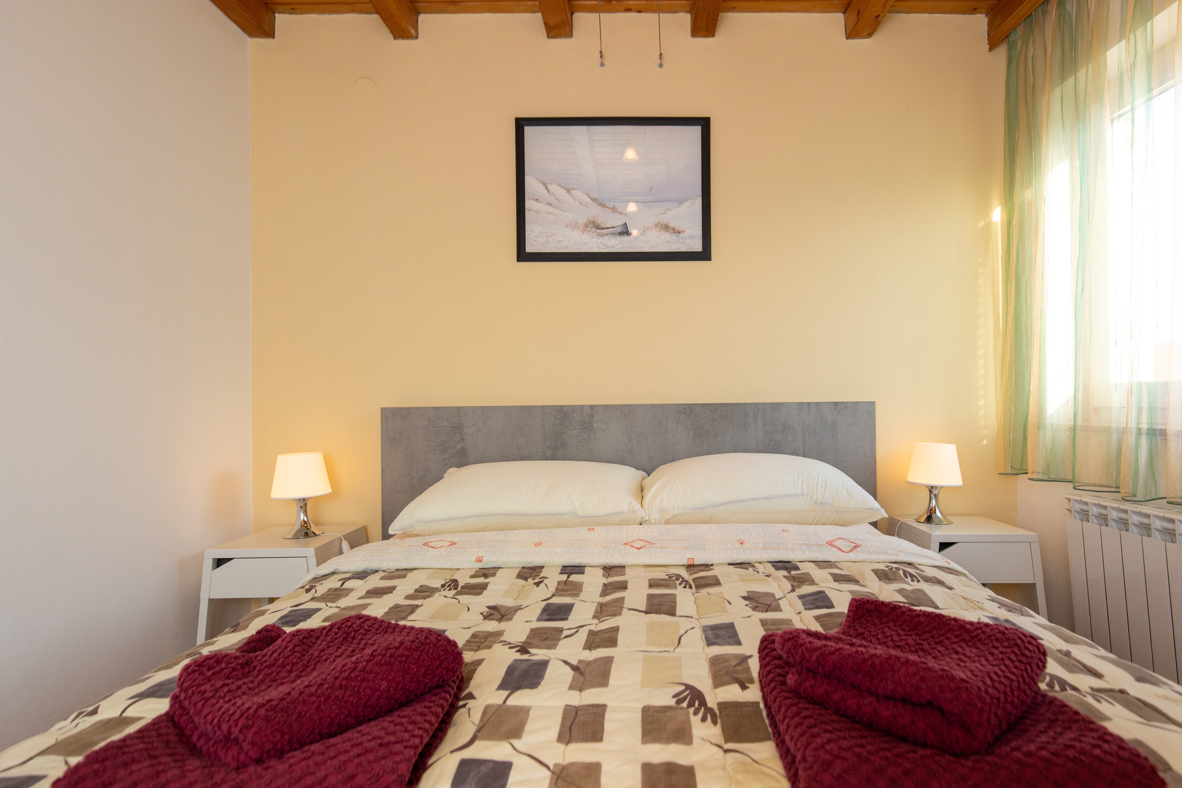 Obiekt 19478 w mieście Kornić, Krk - Kwarner ma kwatery typu Apartament (1) i oddalona jest 1 km od morza. Plaża najbliższa obiektowi jest żwirowa. Ponieważ w obiekcie nie ma innych apartamentów i pokojów, w czasie swoich wakacji będą Państwo jedynymi gośćmi w obiekcie. Gospodarze będą przebywać w obiekcie w czasie Państwa urlopu. Właściciel nie ma obowiązku przyjąć dodatkowych niezgłoszonych osób ani zwierząt domowych, dlatego też trzeba je wcześniej zgłosić.ZAWARTOŚĆ Teren wokół domu (Uporządkowane), Parking (Liczba miejsc parkingowych: 1, Odległość od obiektu: Na podwórku), WiFi Internet, Suszarka do włosów LOKALIZACJA I DOSTĘP Obiekt znajduje się przy lokalnej drodze Pomiędzy obiektem, a plażą znajduje się główna droga Możliwość dojazdu samochodem: Tak Obiekt znajduje się w relatywnie cichej okolicy ODLEGŁOŚCI Morze: 1 km Plaża: 1 km Centrum: 4,5 km Sklep: 500 m Pierwsza pomoc: 4,5 km Apteka: 4,5 km Kantor: 2,5 km Bankomat: 2,5 km Informacje turystyczne: 3,5 km Stacja benzynowa: 3,5 km Targ: 4 km