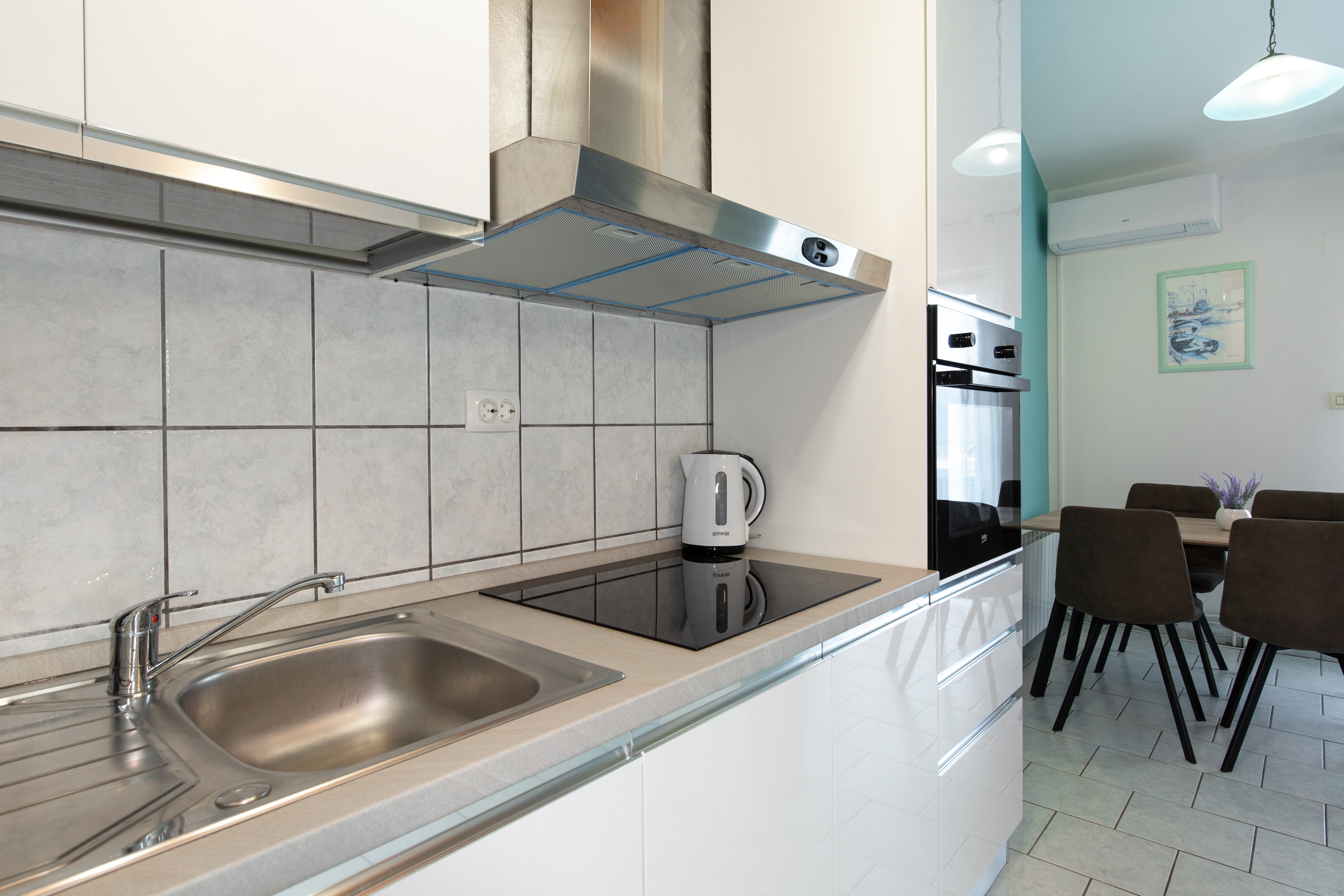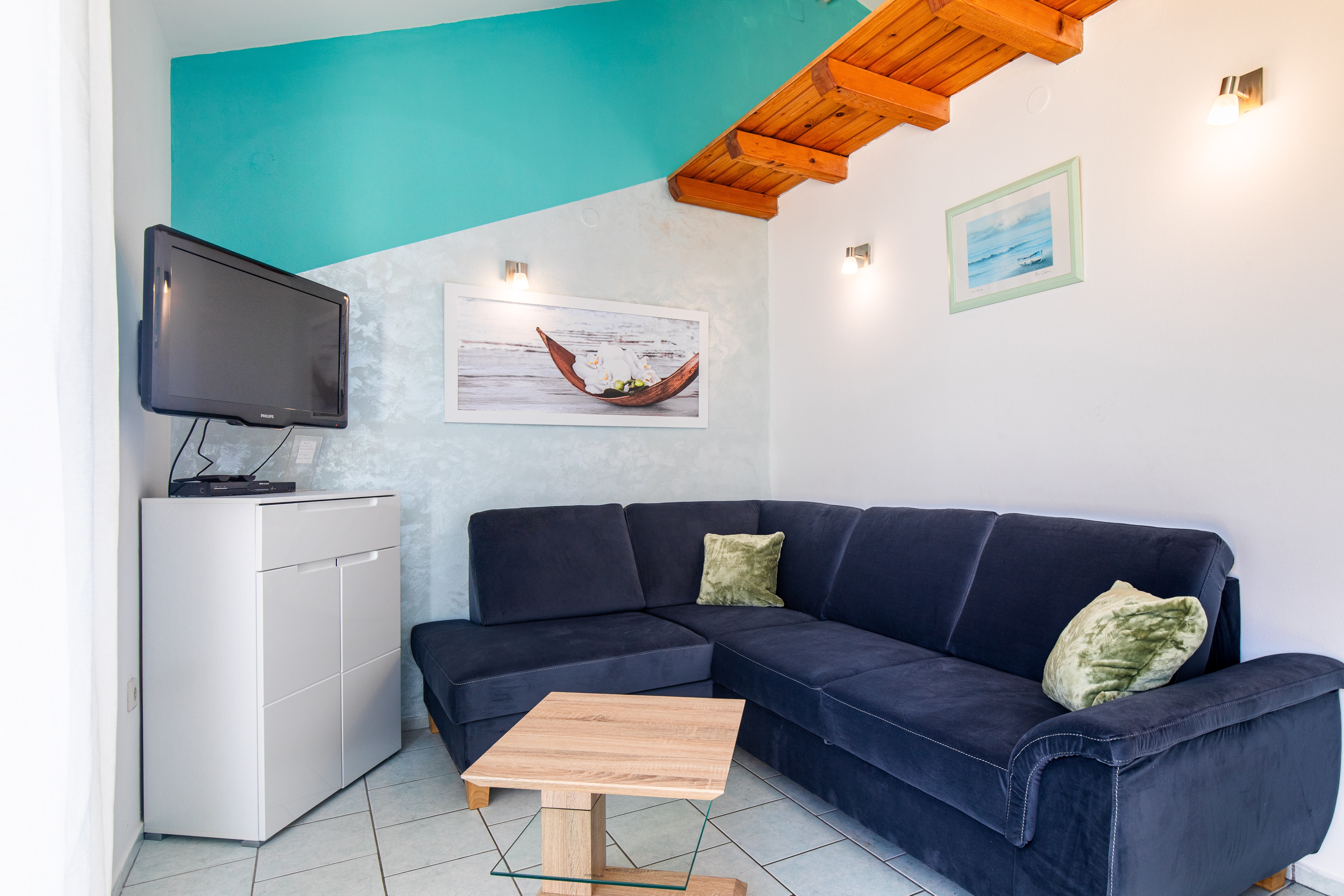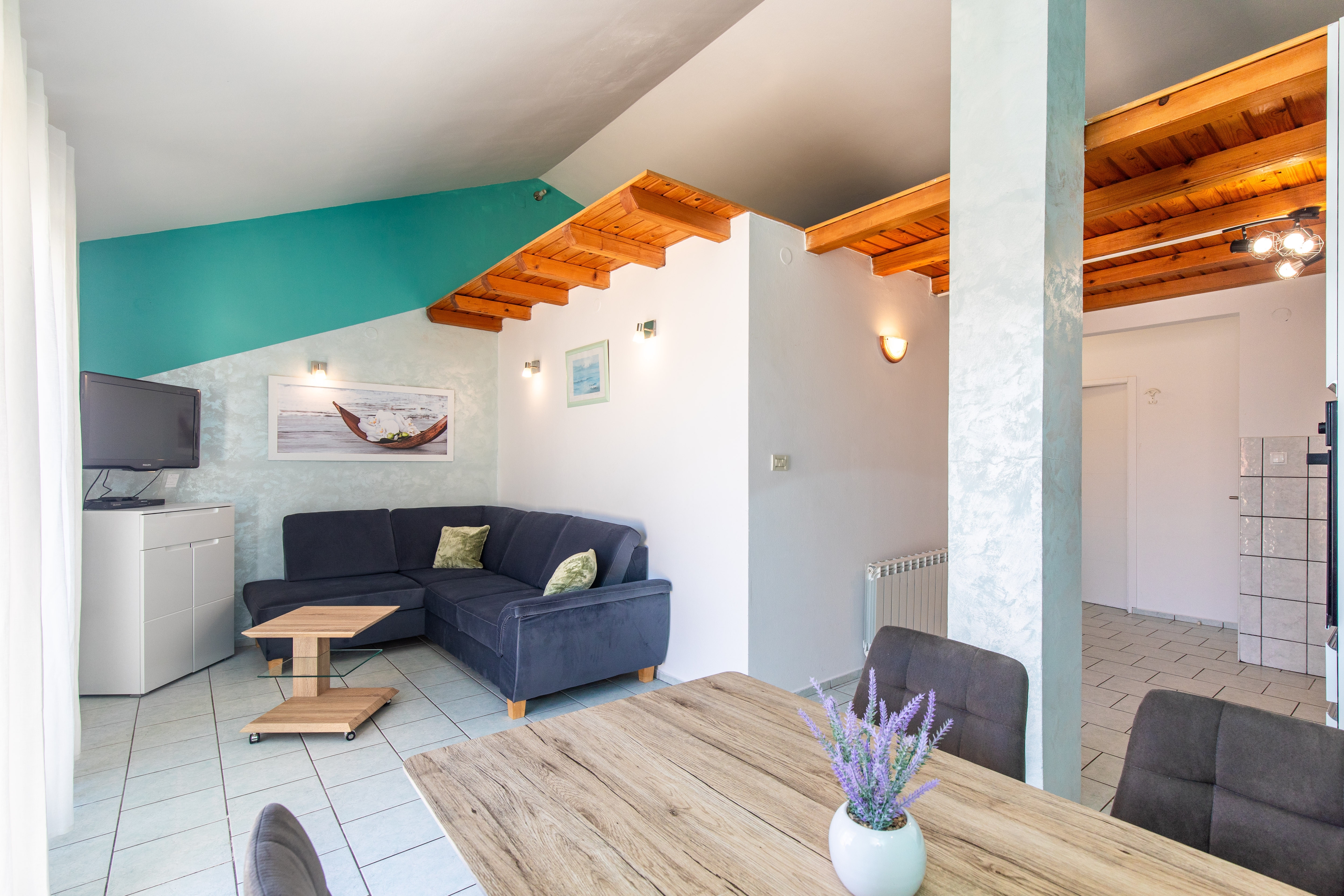 Apartament może przyjąć 4 gości. Łóżka znajdują się w sypialniach, których jest 2, na powierzchni 42m2. Goście mają dostęp do tarasu, by korzystać z ciepłych, letnich wieczorów. Z apartamentu roztacza się widok na morze. WLICZONE W CENĘ: taksa pobytowa, sprzątanie końcowe, klimatyzacja, parking, internet, suszarka do włosów. OBOWIĄZKOWE KOSZTY DODATKOWE: dopłata za krótki termin (procent dopłaty w zalezności od liczby noclegów: 30% - 1, 20% - 2, 10% - 3). Dostępność dodatkowych usług w rezerwowanym terminie oraz ich cenę (jeśli nie jest podana) należy sprawdzić wcześniej. Za dodatowe usługi, które nie zostały uwzględnione w kalkulacji ceny, płaci się bezpośrednio właścicielowi obiektu, pod warunkiem śe gość korzysta z tych usług.