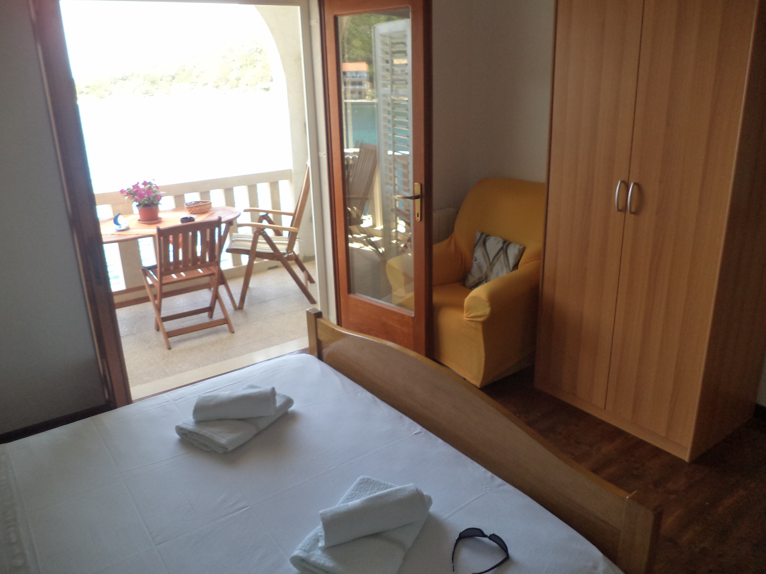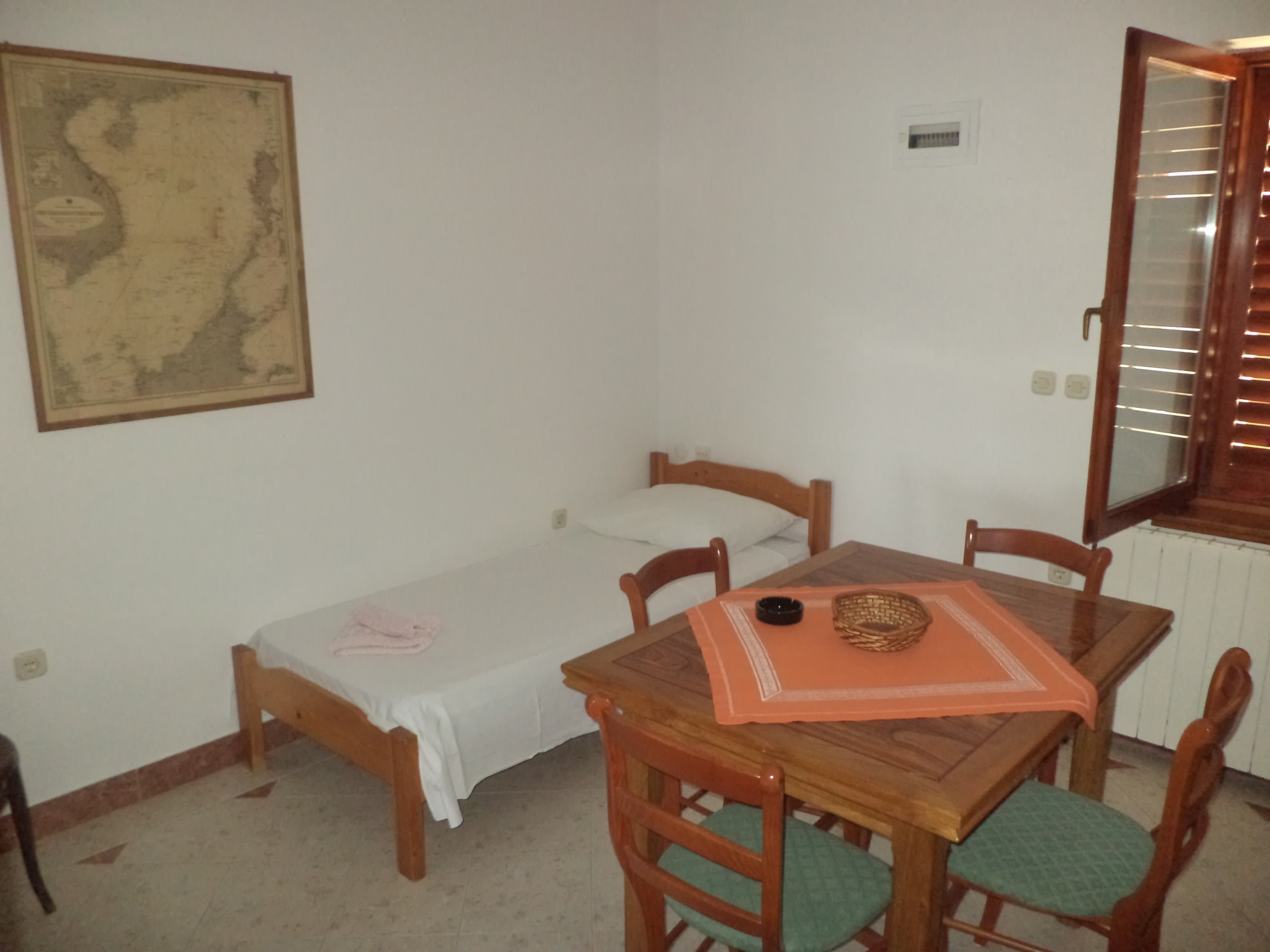 Apartament może przyjąć 4 gości. Łóżka znajdują się w sypialniach, których jest 1, oraz w jadalni, na powierzchni 33m2. Goście mają dostęp do tarasu, by korzystać z ciepłych, letnich wieczorów. Z apartamentu roztacza się widok na morze. Możliwość przygotowywania posiłków poprzez korzystanie ze wspólnego grilla. W kwaterze dozwolony jest pobyt zwierzęcia domowego, za dopłatą. WLICZONE W CENĘ: taksa pobytowa, sprzątanie końcowe, centralne ogrzewanie, parking, internet, miejsce do cumowania łodzi, łóżeczko dziecięce, żelazko, deska do prasowania, suszarka do włosów, parasol, leżaki. OBOWIĄZKOWE KOSZTY DODATKOWE: dopłata za krótki termin (procent dopłaty w zalezności od liczby noclegów: 30% - 1, 20% - 2, 10% - 3). NIEOBOWIĄZKOWE KOSZTY DODATKOWE: łódź (50,00 € za nocleg), zwierzęta domowe (7,00 € za nocleg). Dostępność dodatkowych usług w rezerwowanym terminie oraz ich cenę (jeśli nie jest podana) należy sprawdzić wcześniej. Za dodatowe usługi, które nie zostały uwzględnione w kalkulacji ceny, płaci się bezpośrednio właścicielowi obiektu, pod warunkiem śe gość korzysta z tych usług.