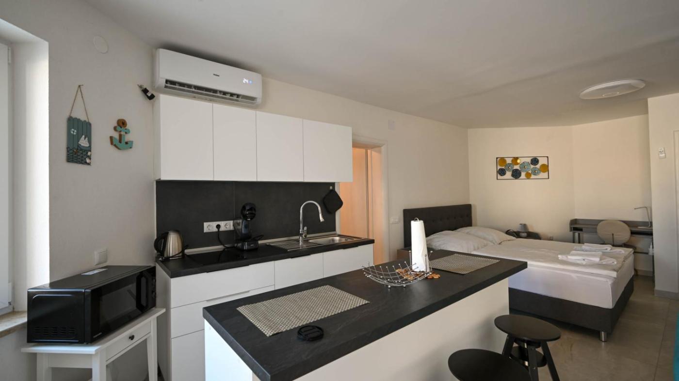 Apartament typu studio. Featuring a private entrance, this air-conditioned apartment consists of a kitchen, 1 bedroom and 1 bathroom with a walk-in shower and a hairdryer. Guests will find a stovetop, a refrigerator, a dishwasher and kitchenware in the well-equipped kitchen. The apartment also offers a barbecue. The unit features a washing machine, sea views, a terrace and winechampagne is provided for guests. The unit offers 2 beds. Apartament - 4 osobowy. Powierzchnia pokoju ok.: 40 mkw. ;