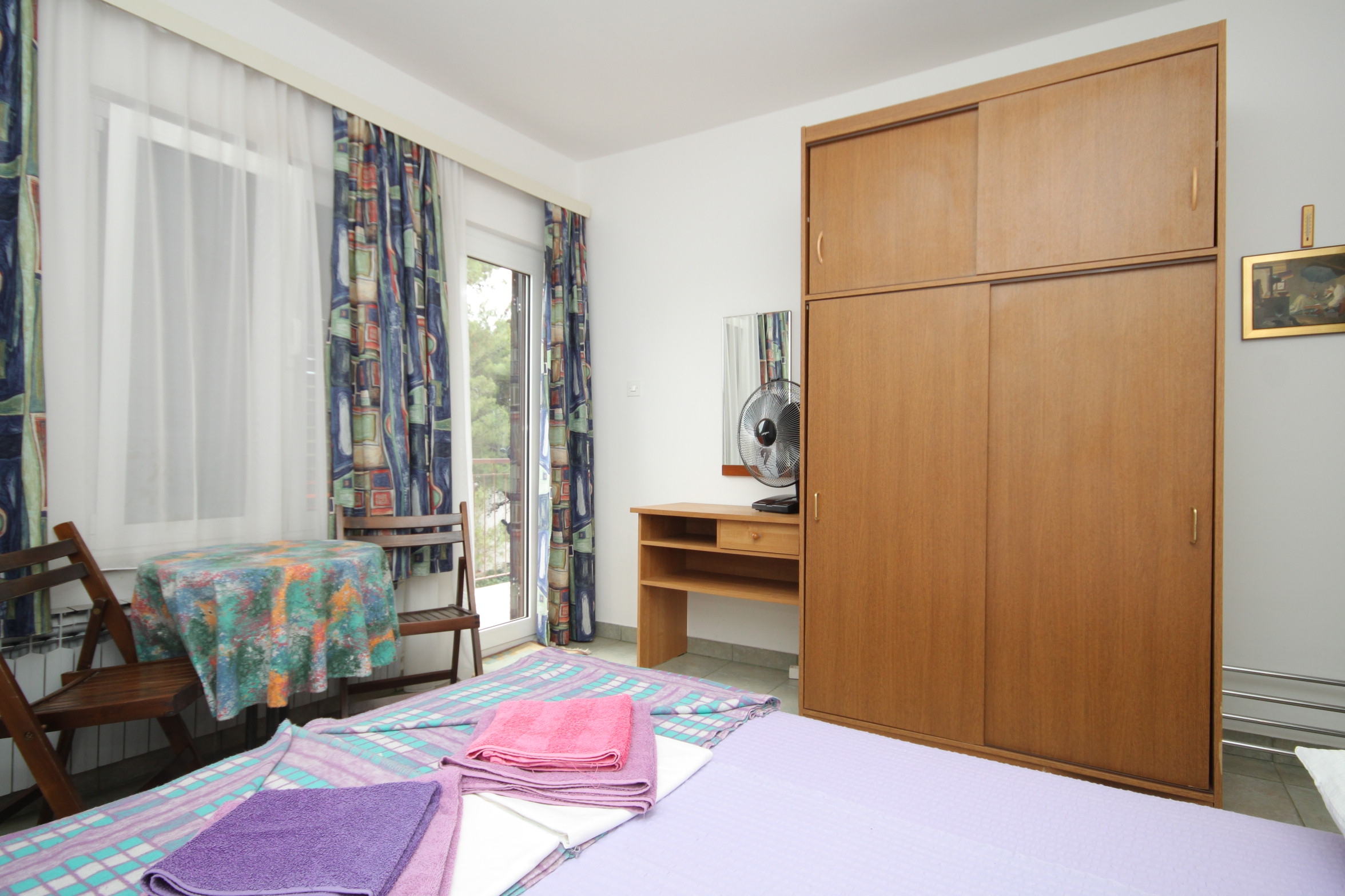Pokój może przyjąć 2 gości. Łóżka znajdują się w sypialniach, których jest 1, na powierzchni 15m2. Goście mają dostęp do balkonu, by korzystać z ciepłych, letnich wieczorów. Możliwość przygotowywania posiłków poprzez korzystanie ze wspólnego grilla. W kwaterze dozwolony jest pobyt zwierzęcia domowego, za dopłatą. Rezerwowana kwatera to pokój z własną łazienką, bez możliwości korzystania z kuchni. WLICZONE W CENĘ: taksa pobytowa, sprzątanie końcowe, parking, internet, miejsce do cumowania łodzi, żelazko, deska do prasowania, suszarka do włosów, przenośny grill, parasol. OBOWIĄZKOWE KOSZTY DODATKOWE: dopłata za krótki termin (procent dopłaty w zalezności od liczby noclegów: 30% - 1, 20% - 2, 10% - 3). NIEOBOWIĄZKOWE KOSZTY DODATKOWE: klimatyzacja (5,00 € za nocleg), zwierzęta domowe (5,00 € za nocleg). Dostępność dodatkowych usług w rezerwowanym terminie oraz ich cenę (jeśli nie jest podana) należy sprawdzić wcześniej. Za dodatowe usługi, które nie zostały uwzględnione w kalkulacji ceny, płaci się bezpośrednio właścicielowi obiektu, pod warunkiem śe gość korzysta z tych usług. Zniżki od ceny podstawowej: bezpłatny dzień 14=13 (przy pobycie, trwającym co najmniej 14 dni, otrzymujecie jeden bezpłatny dzień na pobyt do 31.12.2026).