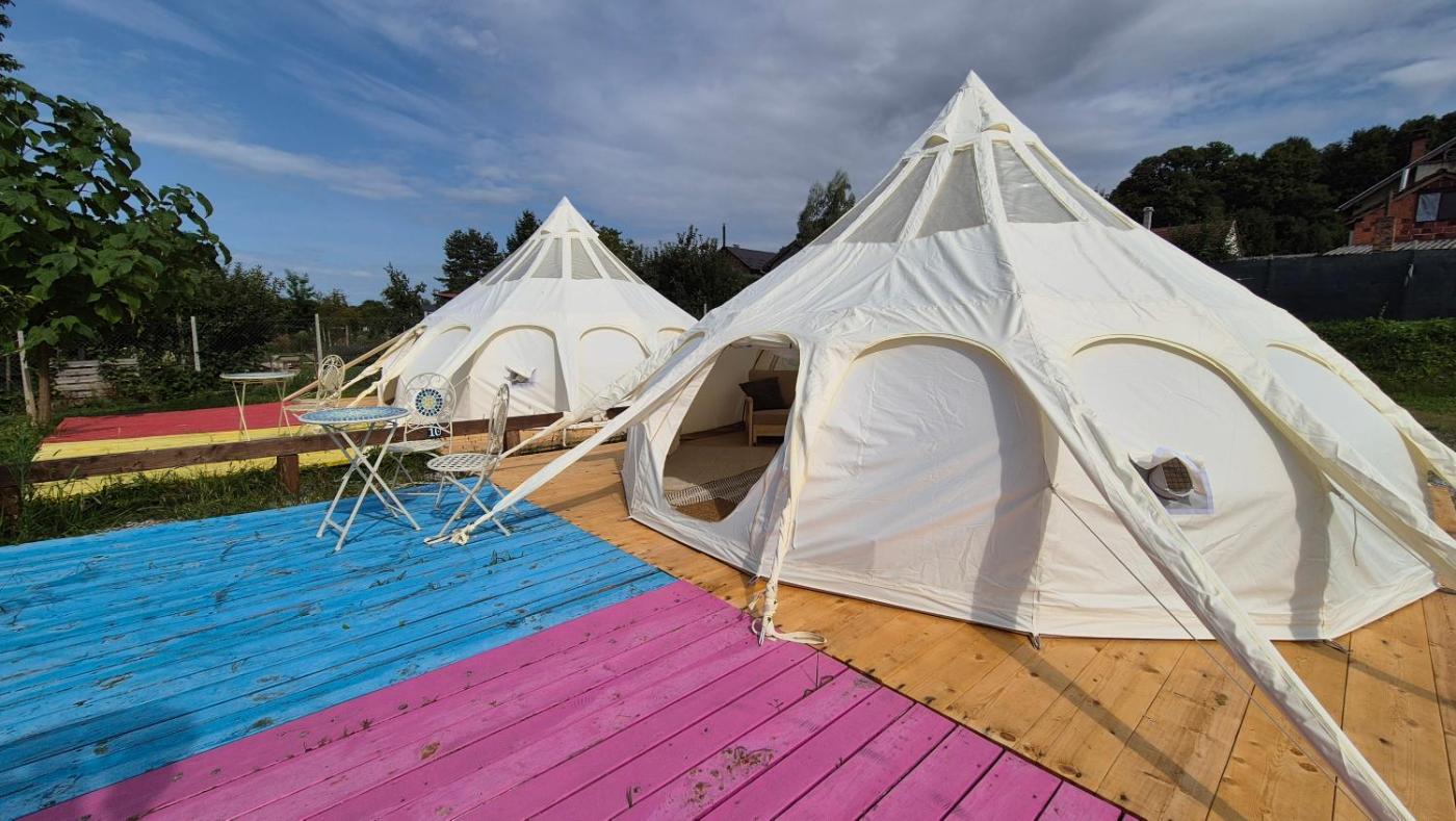 Namiot. Guests will find a refrigerator in the kitchenette. The tent also provides guests with a barbecue. This air-conditioned tent features a shared bathroom, a private entrance, a seating area as well as an outdoor dining area. The unit offers 2 beds. Namiot - 4 osobowy. Powierzchnia pokoju ok.: 35 mkw.