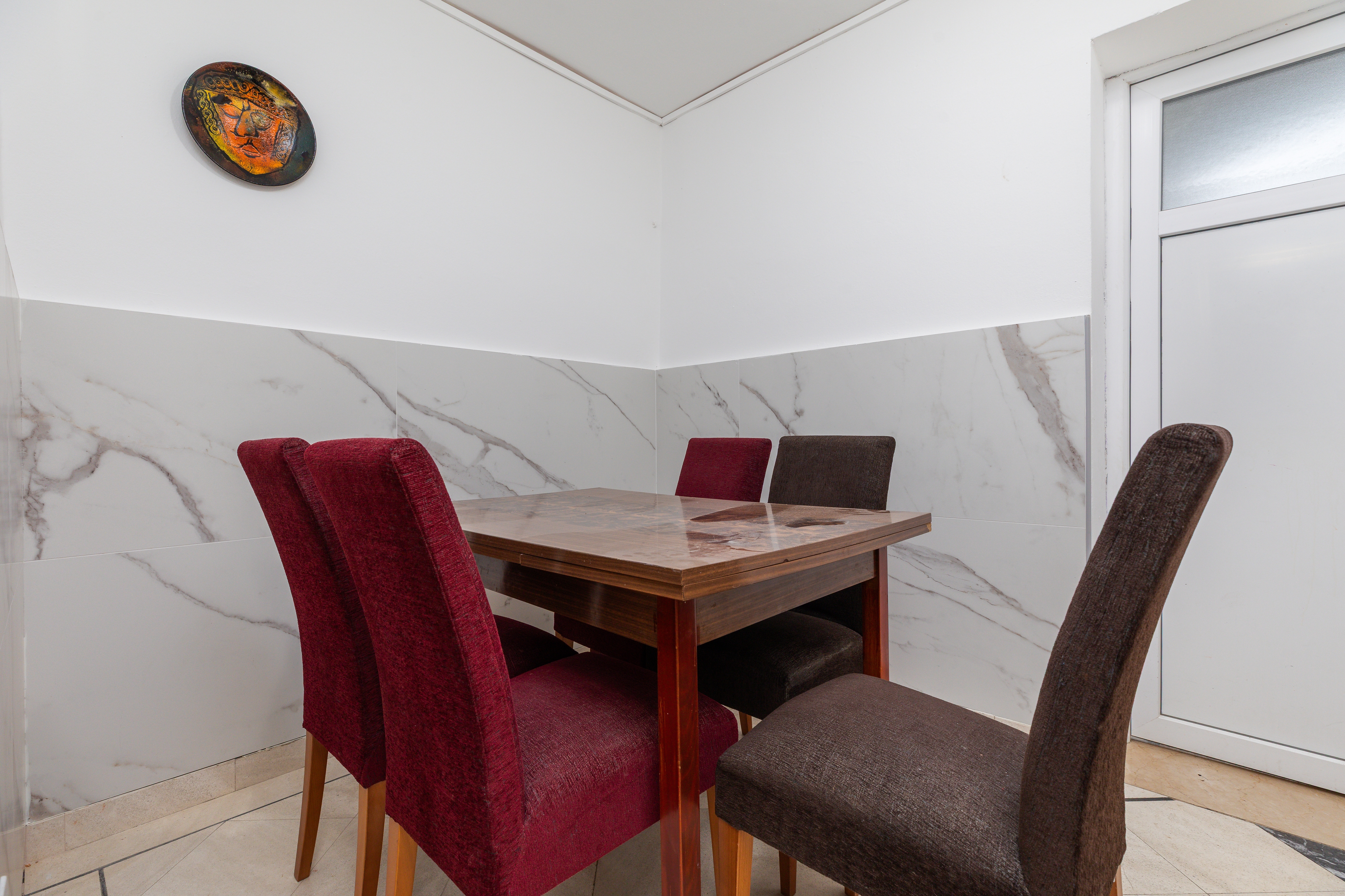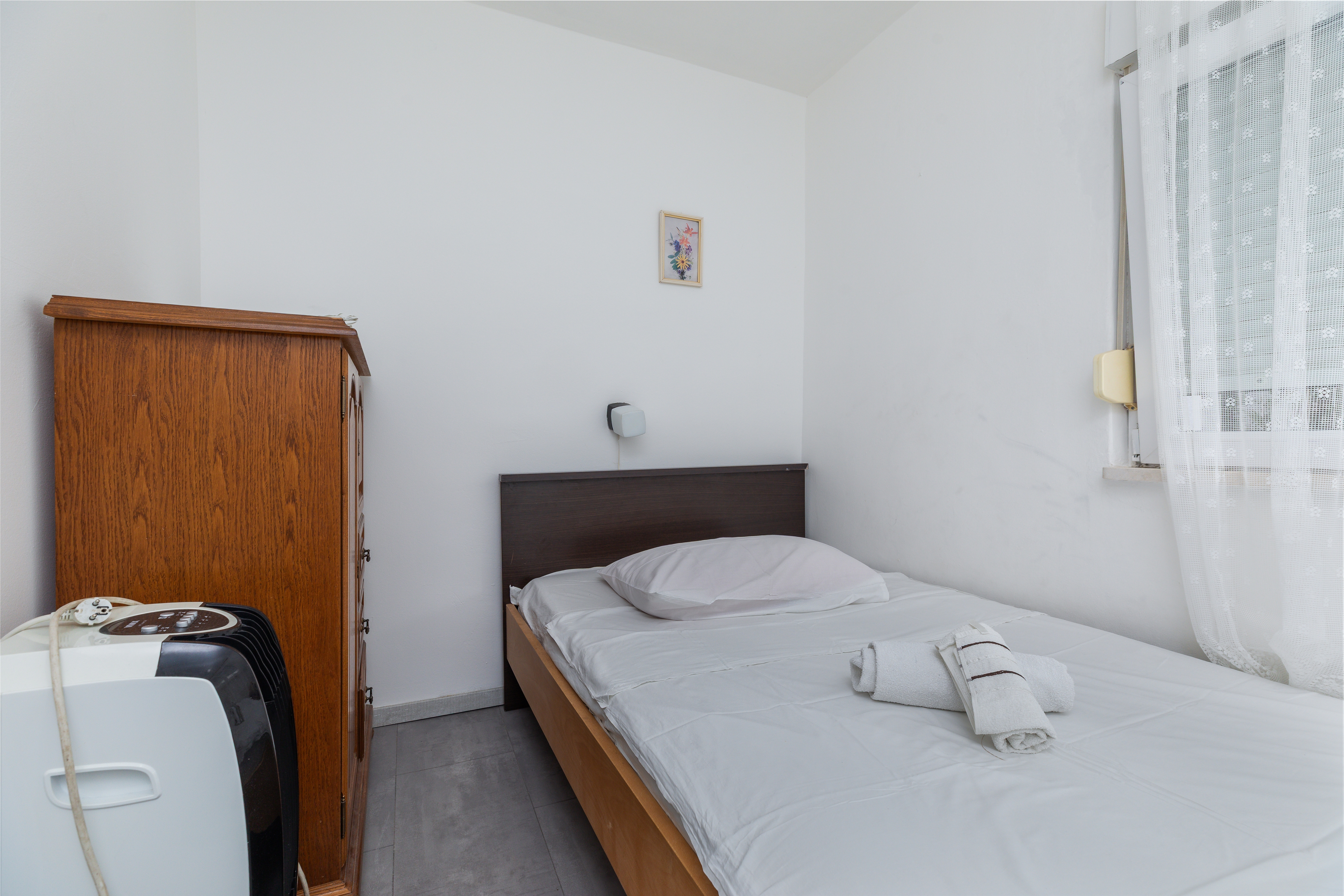 Apartament może przyjąć 6 gości. Łóżka znajdują się w sypialniach, których jest 2, na powierzchni 44m2. Goście mają dostęp do balkonu, by korzystać z ciepłych, letnich wieczorów. Z apartamentu roztacza się widok na morze. Możliwość przygotowywania posiłków poprzez korzystanie ze wspólnego grilla. W trakcie swojego pobytu goście mogą korzystać ze wspólnego basenu. WLICZONE W CENĘ: taksa pobytowa, sprzątanie końcowe, klimatyzacja, basen, parking, internet, żelazko, suszarka do włosów, leżaki. OBOWIĄZKOWE KOSZTY DODATKOWE: dopłata za krótki termin (procent dopłaty w zalezności od liczby noclegów: 30% - 1, 20% - 2, 10% - 3). NIEOBOWIĄZKOWE KOSZTY DODATKOWE: pranie bielizny (10,00 € pranie). Dostępność dodatkowych usług w rezerwowanym terminie oraz ich cenę (jeśli nie jest podana) należy sprawdzić wcześniej. Za dodatowe usługi, które nie zostały uwzględnione w kalkulacji ceny, płaci się bezpośrednio właścicielowi obiektu, pod warunkiem śe gość korzysta z tych usług. Zniżki od ceny podstawowej: bezpłatny dzień 14=13 (przy pobycie, trwającym co najmniej 14 dni, otrzymujecie jeden bezpłatny dzień na pobyt do 31.12.2026).