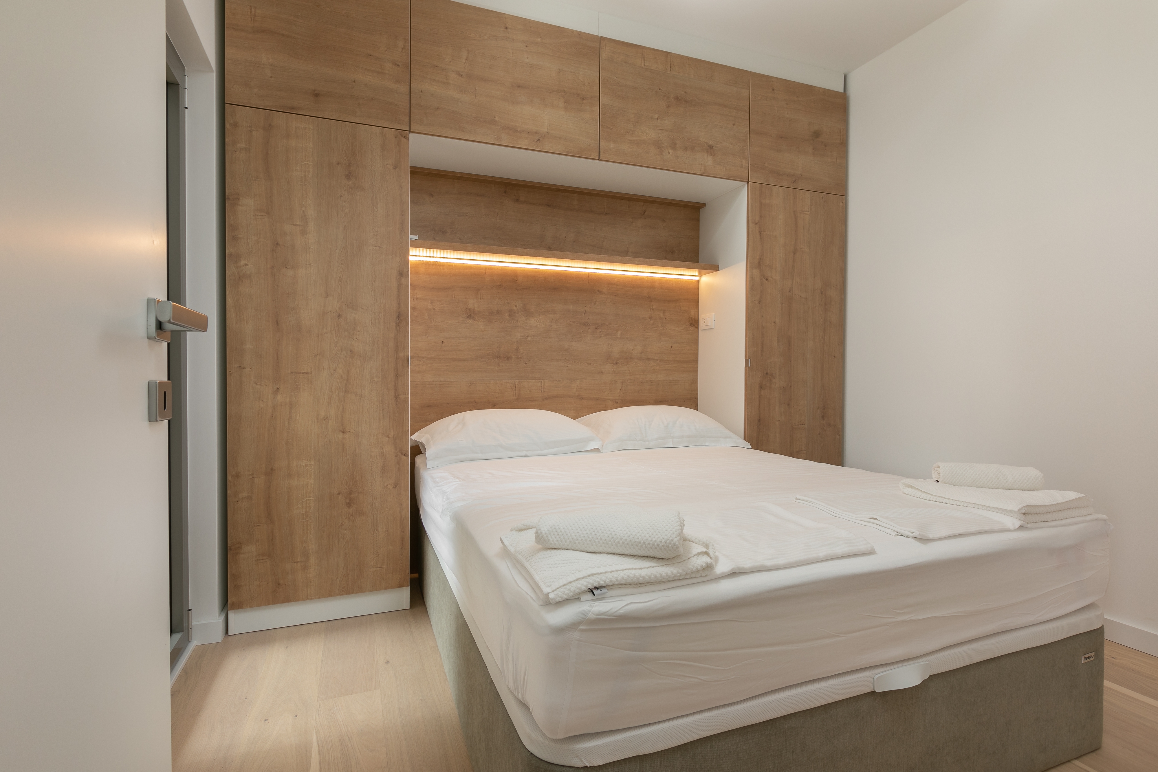 Apartament może przyjąć 6 gości. Łóżka znajdują się w sypialniach, których jest 2, oraz w pokoju dziennym, na powierzchni 55m2. Goście mają dostęp do tarasu, by korzystać z ciepłych, letnich wieczorów. Z apartamentu roztacza się widok na morze. Możliwość przygotowywania posiłków poprzez korzystanie ze wspólnego grilla. W trakcie swojego pobytu goście mogą korzystać ze wspólnego basenu. W kwaterze dozwolony jest pobyt zwierzęcia domowego, za dopłatą. WLICZONE W CENĘ: taksa pobytowa, sprzątanie końcowe, klimatyzacja, basen, internet, łóżeczko dziecięce, suszarka do włosów, przenośny grill. NIEOBOWIĄZKOWE KOSZTY DODATKOWE: zwierzęta domowe (10,00 € za nocleg). Dostępność dodatkowych usług w rezerwowanym terminie oraz ich cenę (jeśli nie jest podana) należy sprawdzić wcześniej. Za dodatowe usługi, które nie zostały uwzględnione w kalkulacji ceny, płaci się bezpośrednio właścicielowi obiektu, pod warunkiem śe gość korzysta z tych usług.