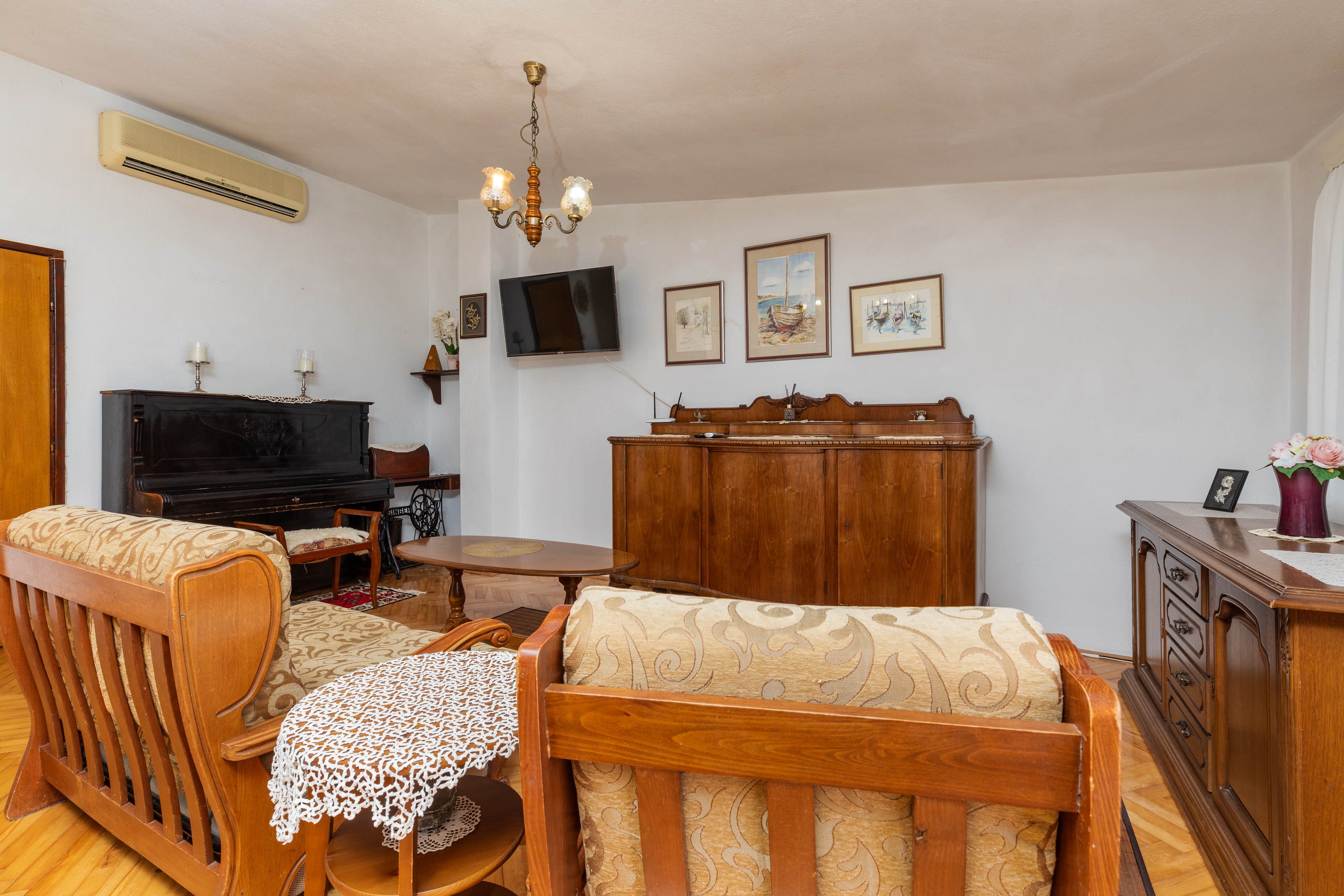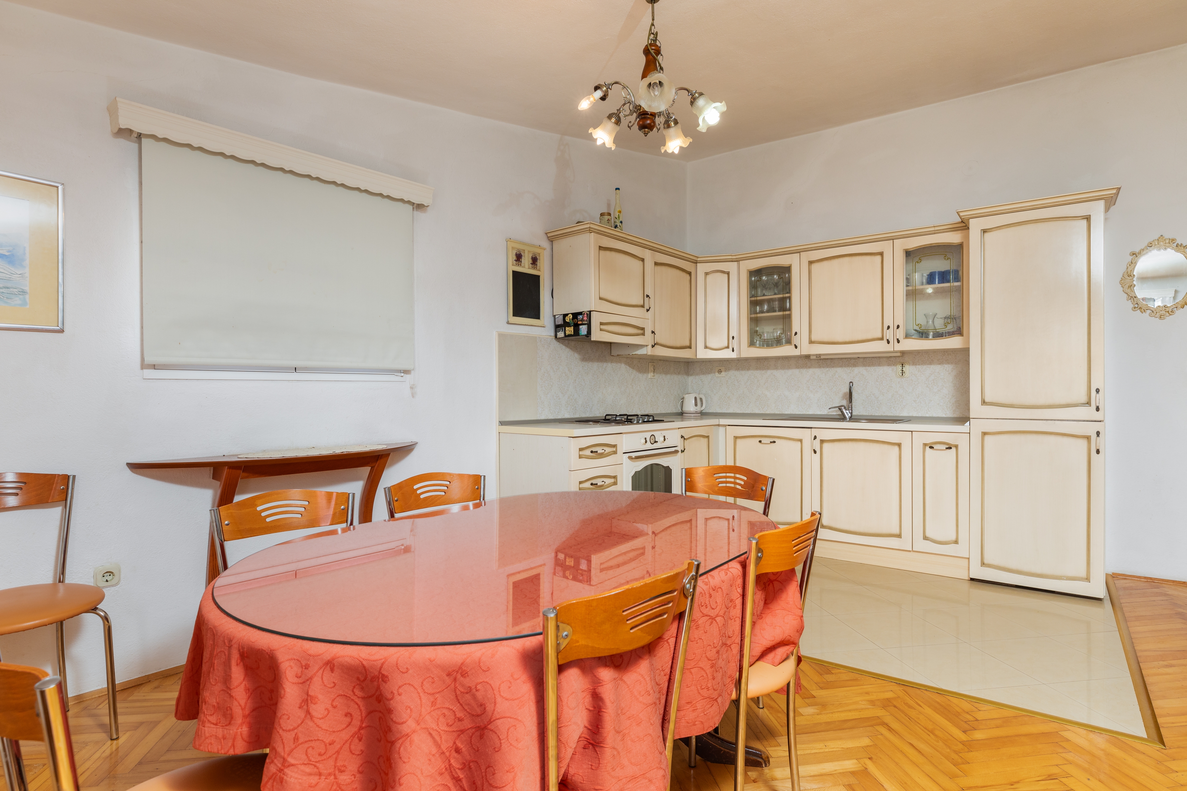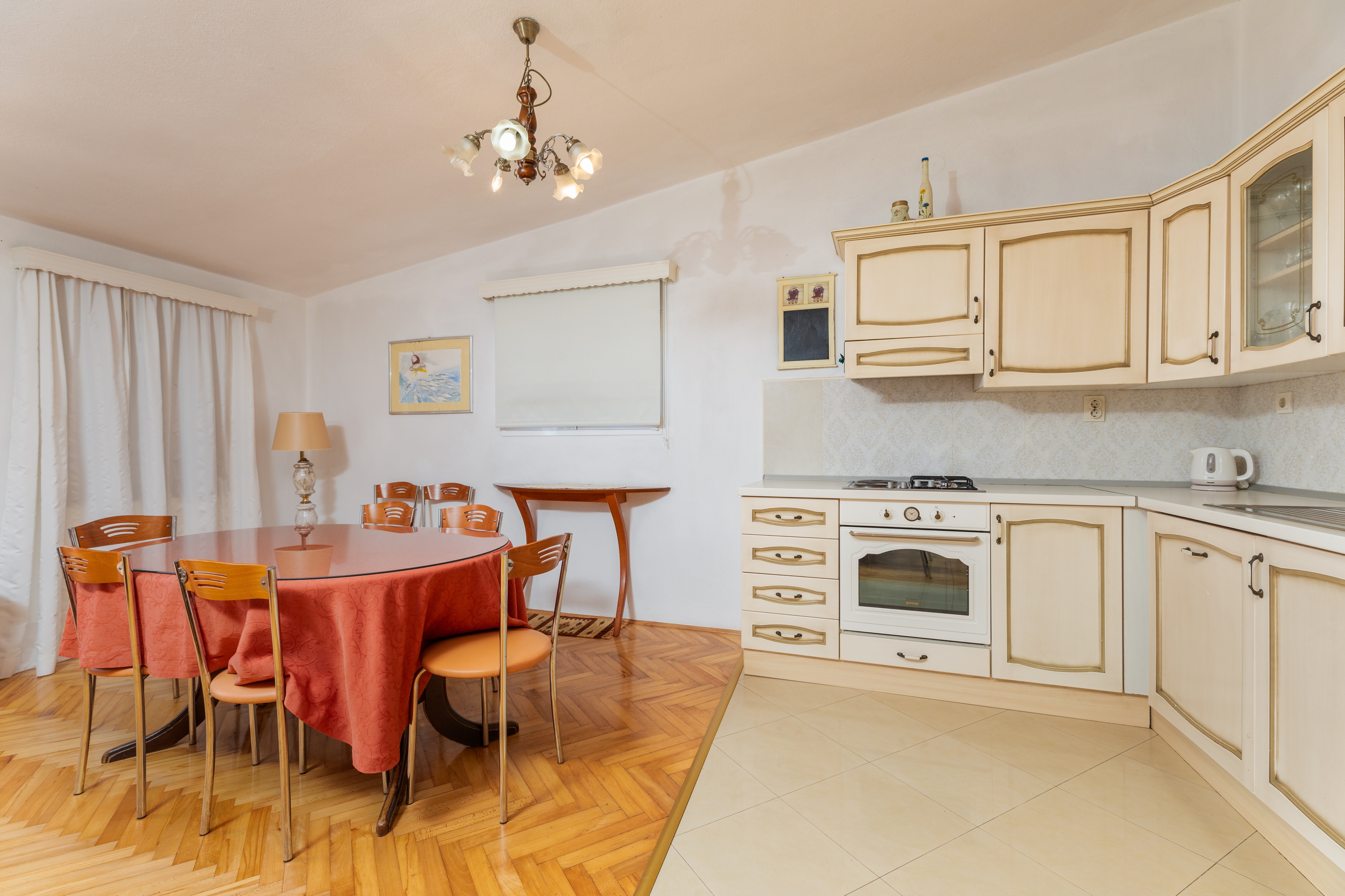 Apartament może przyjąć 7 gości. Łóżka znajdują się w sypialniach, których jest 3, na powierzchni 98m2. Goście mają dostęp do balkonu, by korzystać z ciepłych, letnich wieczorów. Z apartamentu roztacza się widok na morze. W kwaterze dozwolony jest pobyt zwierzęcia domowego, za dopłatą. WLICZONE W CENĘ: taksa pobytowa, sprzątanie końcowe, klimatyzacja, parking, internet, łóżeczko dziecięce, żelazko, deska do prasowania, suszarka do włosów. OBOWIĄZKOWE KOSZTY DODATKOWE: dopłata za krótki termin (procent dopłaty w zalezności od liczby noclegów: 30% - 1, 20% - 2, 10% - 3). NIEOBOWIĄZKOWE KOSZTY DODATKOWE: zwierzęta domowe (8,00 € za nocleg). Dostępność dodatkowych usług w rezerwowanym terminie oraz ich cenę (jeśli nie jest podana) należy sprawdzić wcześniej. Za dodatowe usługi, które nie zostały uwzględnione w kalkulacji ceny, płaci się bezpośrednio właścicielowi obiektu, pod warunkiem śe gość korzysta z tych usług.