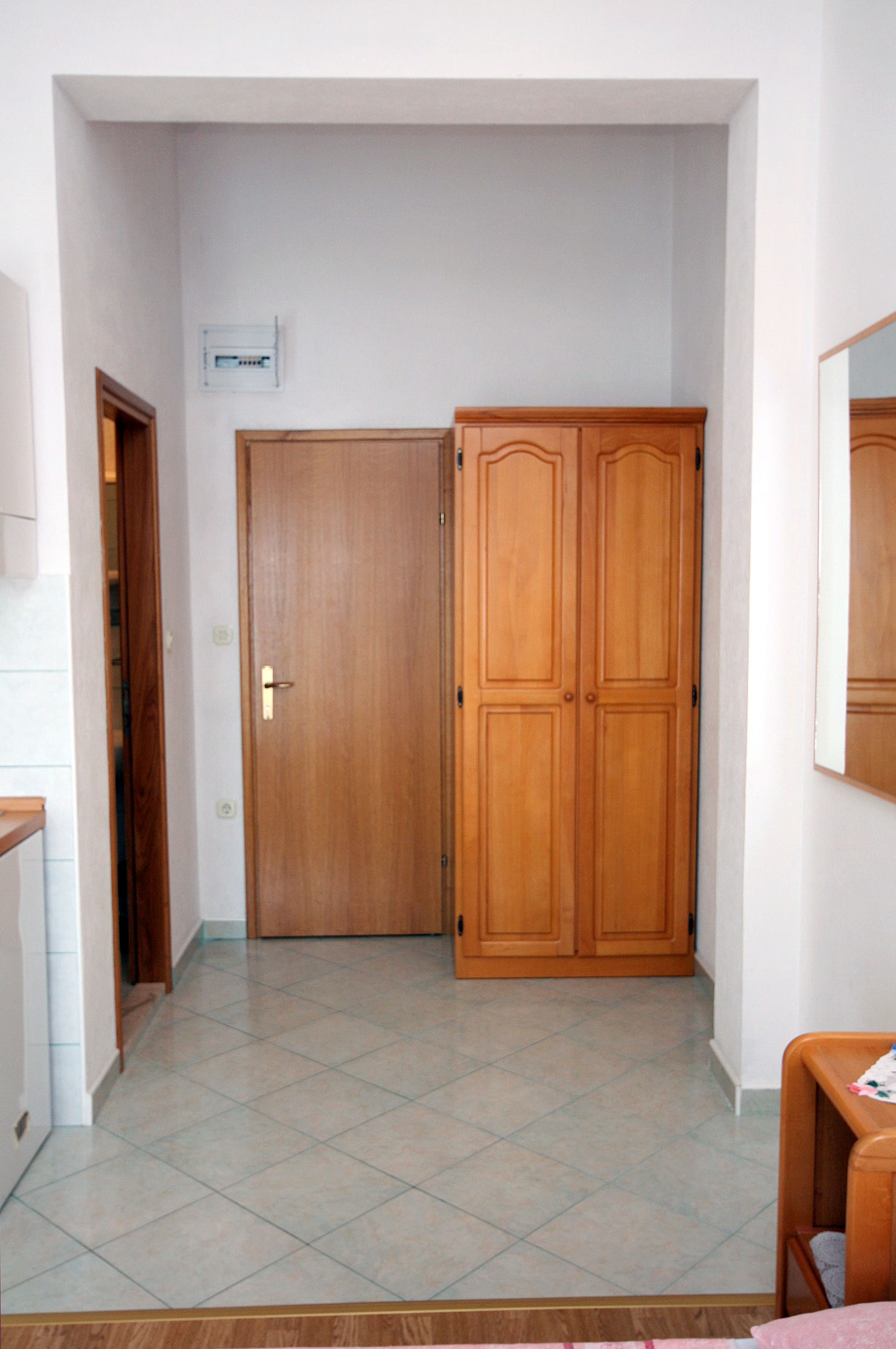 Studio może przyjąć 2 gości. Łóżka znajdują się w sypialniach, których jest 1, na powierzchni 21m2. Goście mają dostęp do balkonu, by korzystać z ciepłych, letnich wieczorów. Z apartamentu typu studio roztacza się widok na morze. Możliwość przygotowywania posiłków poprzez korzystanie ze wspólnego grilla. WLICZONE W CENĘ: taksa pobytowa, sprzątanie końcowe, klimatyzacja, parking, internet, łóżeczko dziecięce, żelazko, suszarka do włosów. OBOWIĄZKOWE KOSZTY DODATKOWE: dopłata za krótki termin (procent dopłaty w zalezności od liczby noclegów: 30% - 1, 20% - 2, 10% - 3). NIEOBOWIĄZKOWE KOSZTY DODATKOWE: pranie bielizny (10,00 € pranie). Dostępność dodatkowych usług w rezerwowanym terminie oraz ich cenę (jeśli nie jest podana) należy sprawdzić wcześniej. Za dodatowe usługi, które nie zostały uwzględnione w kalkulacji ceny, płaci się bezpośrednio właścicielowi obiektu, pod warunkiem śe gość korzysta z tych usług.