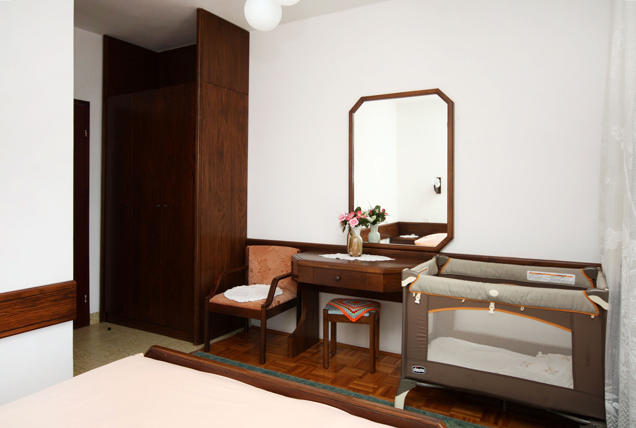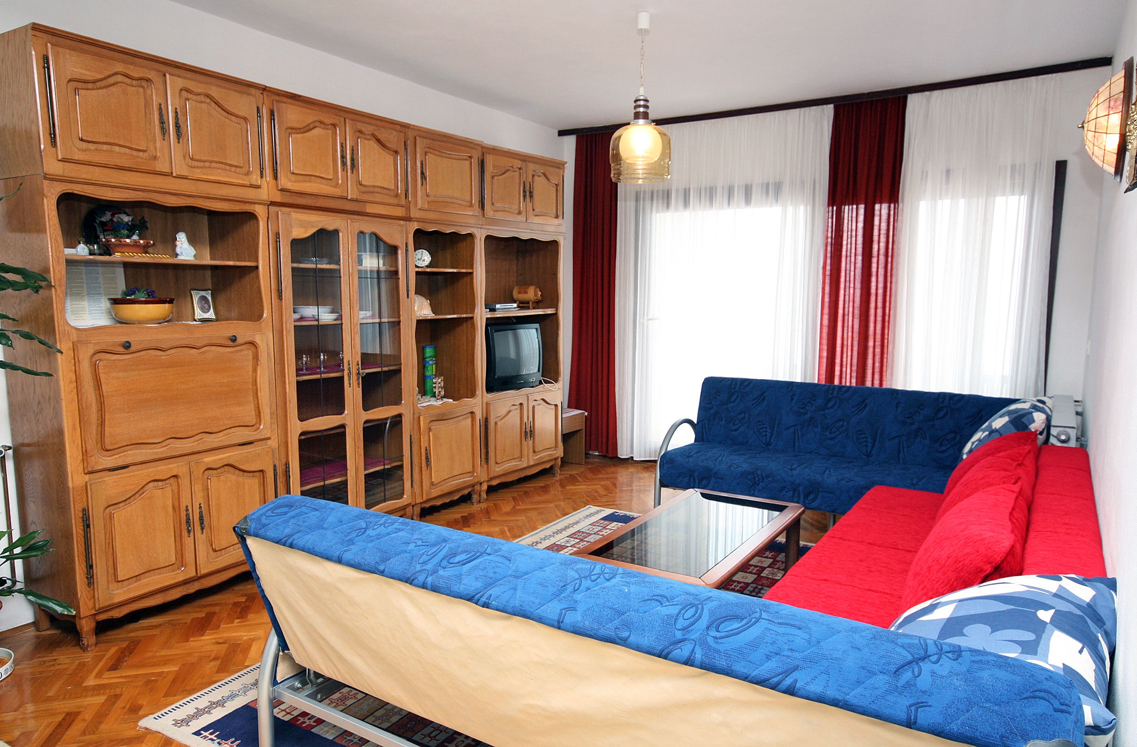 Apartament może przyjąć 9 gości. Łóżka znajdują się w sypialniach, których jest 3, oraz w pokoju dziennym, na powierzchni 95m2. Goście mają dostęp do balkonu, by korzystać z ciepłych, letnich wieczorów. Z apartamentu roztacza się widok na morze. Możliwość przygotowywania posiłków poprzez korzystanie ze wspólnego grilla. WLICZONE W CENĘ: taksa pobytowa, sprzątanie końcowe, klimatyzacja, parking, internet, łóżeczko dziecięce, żelazko, suszarka do włosów. OBOWIĄZKOWE KOSZTY DODATKOWE: dopłata za krótki termin (procent dopłaty w zalezności od liczby noclegów: 30% - 1, 20% - 2, 10% - 3). NIEOBOWIĄZKOWE KOSZTY DODATKOWE: pranie bielizny (10,00 € pranie). Dostępność dodatkowych usług w rezerwowanym terminie oraz ich cenę (jeśli nie jest podana) należy sprawdzić wcześniej. Za dodatowe usługi, które nie zostały uwzględnione w kalkulacji ceny, płaci się bezpośrednio właścicielowi obiektu, pod warunkiem śe gość korzysta z tych usług.