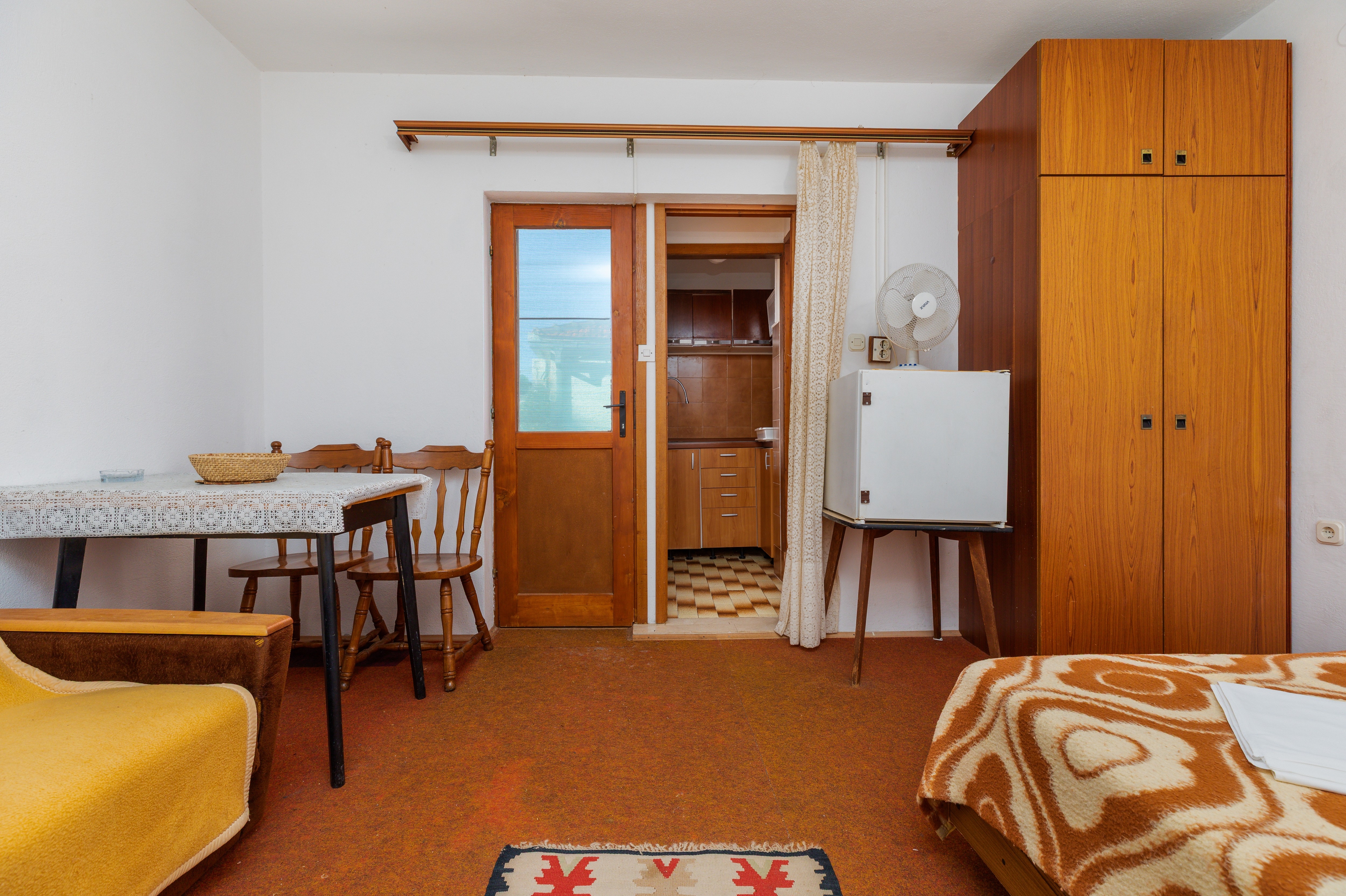 Apartament może przyjąć 4 gości. Łóżka znajdują się w sypialniach, których jest 1, oraz w pokoju dziennym, na powierzchni 31m2. Goście mają dostęp do balkonu, by korzystać z ciepłych, letnich wieczorów. Z apartamentu roztacza się widok na morze. Możliwość przygotowywania posiłków poprzez korzystanie ze wspólnego grilla. WLICZONE W CENĘ: taksa pobytowa, sprzątanie końcowe, parking, internet, miejsce do cumowania łodzi, żelazko, deska do prasowania, przenośny grill. OBOWIĄZKOWE KOSZTY DODATKOWE: dopłata za krótki termin (procent dopłaty w zalezności od liczby noclegów: 30% - 1, 20% - 2, 10% - 3). NIEOBOWIĄZKOWE KOSZTY DODATKOWE: dostawka (12,00 € za nocleg). Dostępność dodatkowych usług w rezerwowanym terminie oraz ich cenę (jeśli nie jest podana) należy sprawdzić wcześniej. Za dodatowe usługi, które nie zostały uwzględnione w kalkulacji ceny, płaci się bezpośrednio właścicielowi obiektu, pod warunkiem śe gość korzysta z tych usług.