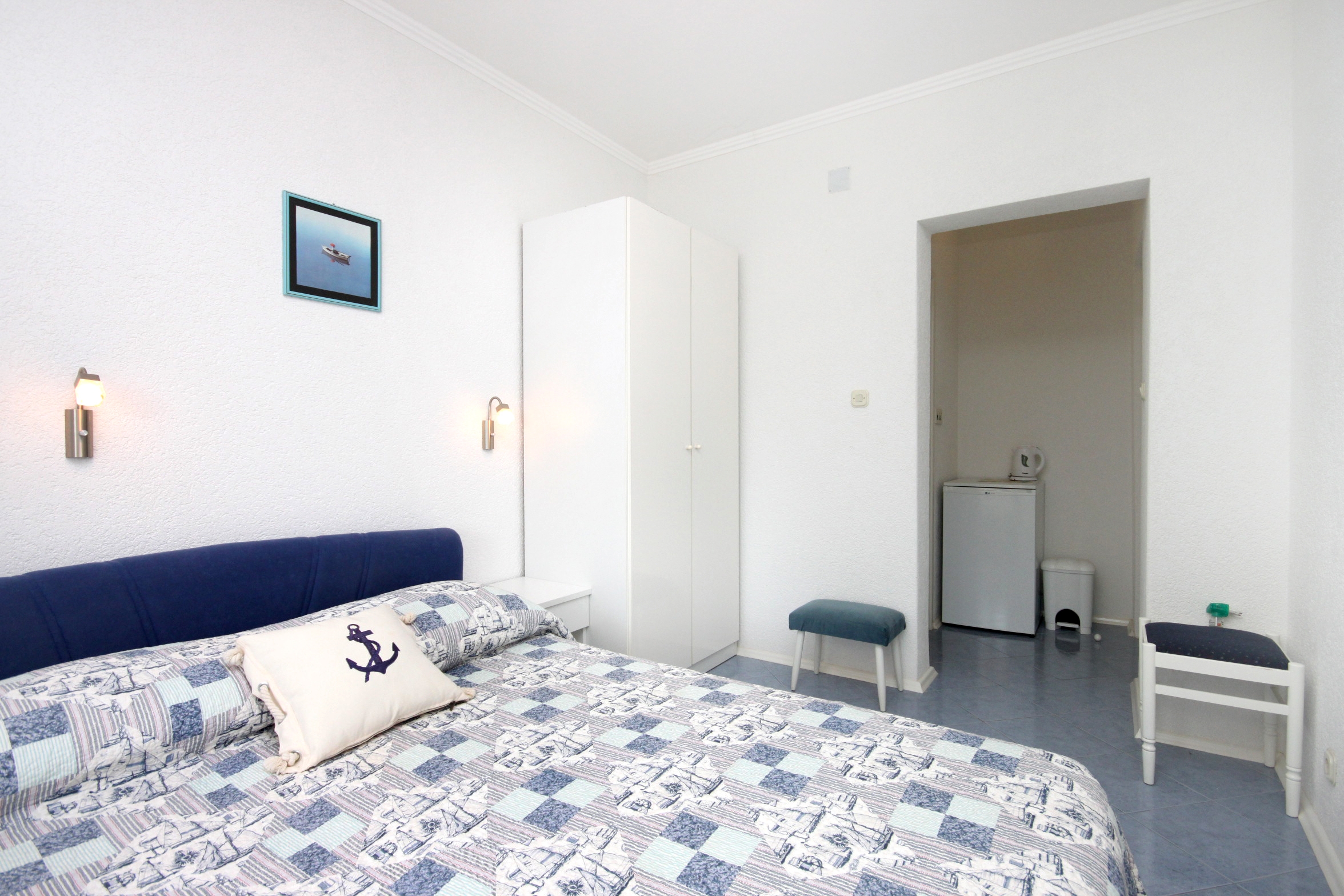 Pokój może przyjąć 2 gości. Łóżka znajdują się w sypialniach, których jest 1, na powierzchni 14m2. Możliwe jest korzystanie ze wspólnej kuchni. Goście mają dostęp do balkonu, by korzystać z ciepłych, letnich wieczorów. Z pokoju roztacza się widok na morze. Możliwość przygotowywania posiłków poprzez korzystanie ze wspólnego grilla. Rezerwowana kwatera to pokój z własną łazienką, z możliwością korzystania ze wspólnej kuchni bez dopłaty. WLICZONE W CENĘ: taksa pobytowa, sprzątanie końcowe, wspólna kuchnia, internet, pranie bielizny, żelazko, deska do prasowania. OBOWIĄZKOWE KOSZTY DODATKOWE: dopłata za krótki termin (procent dopłaty w zalezności od liczby noclegów: 30% - 1, 20% - 2, 10% - 3). NIEOBOWIĄZKOWE KOSZTY DODATKOWE: klimatyzacja (7,00 € za nocleg). Dostępność dodatkowych usług w rezerwowanym terminie oraz ich cenę (jeśli nie jest podana) należy sprawdzić wcześniej. Za dodatowe usługi, które nie zostały uwzględnione w kalkulacji ceny, płaci się bezpośrednio właścicielowi obiektu, pod warunkiem śe gość korzysta z tych usług. Zniżki od ceny podstawowej: bezpłatny dzień 14=13 (przy pobycie, trwającym co najmniej 14 dni, otrzymujecie jeden bezpłatny dzień na pobyt do 31.12.2026).