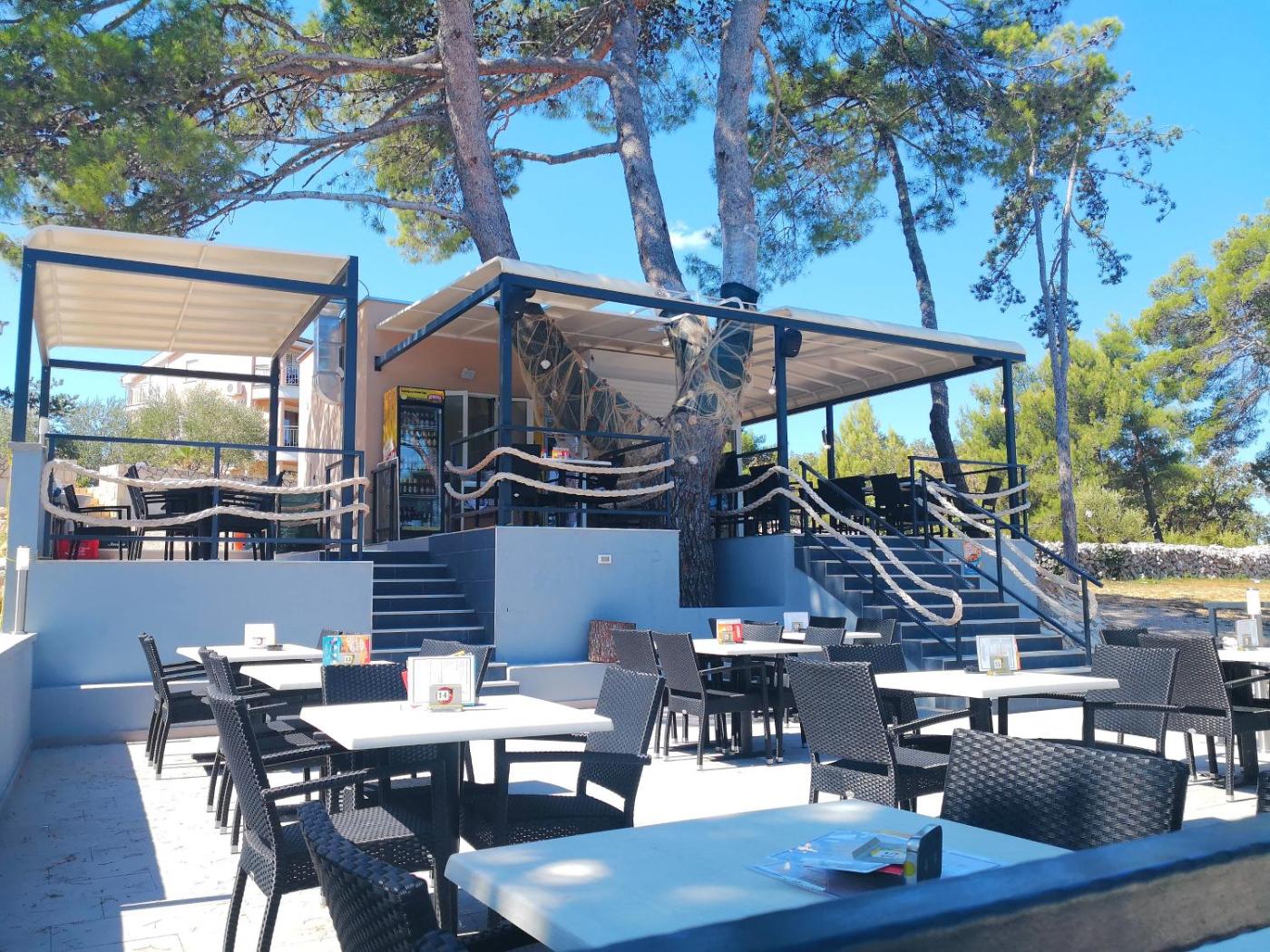 Śniadania, lunche oraz kolacje podawane są na życzenie w usytuowanej na plaży restauracji typu fast food. Lokal należy do właściciela obiektu. Za dodatkową opłatą Goście mogą korzystać z leżaków usytuowanych pośród drzew oliwnych, lawendy i palm. Na miejscu dostępna jest wypożyczalnia desek SUP. W centrum miejscowości można zarezerwować całodniową wycieczkę na wyspy Rab oraz Cres.