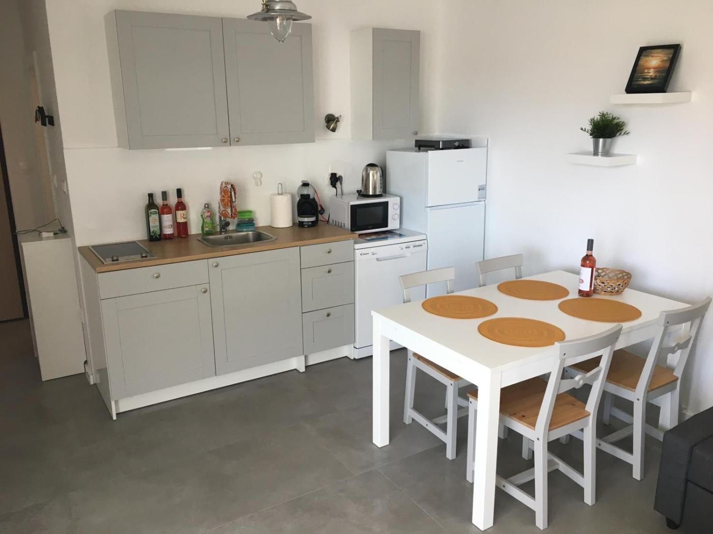 Oferta apartamentu obejmuje sypialnię (1), salon, kuchnię z pełnym wyposażeniem, w tym lodówką i ekspresem do kawy, a także łazienkę (1) z prysznicem. Goście mają do dyspozycji telewizor z płaskim ekranem.