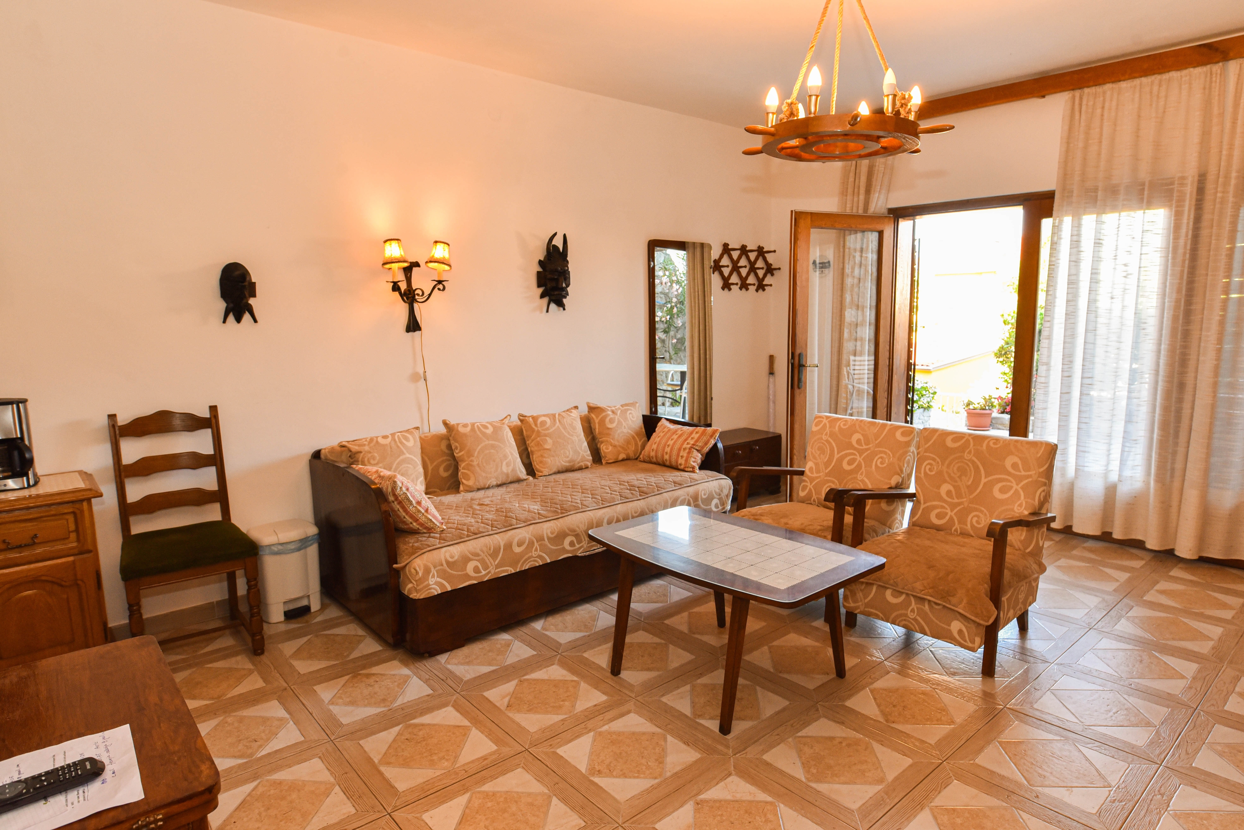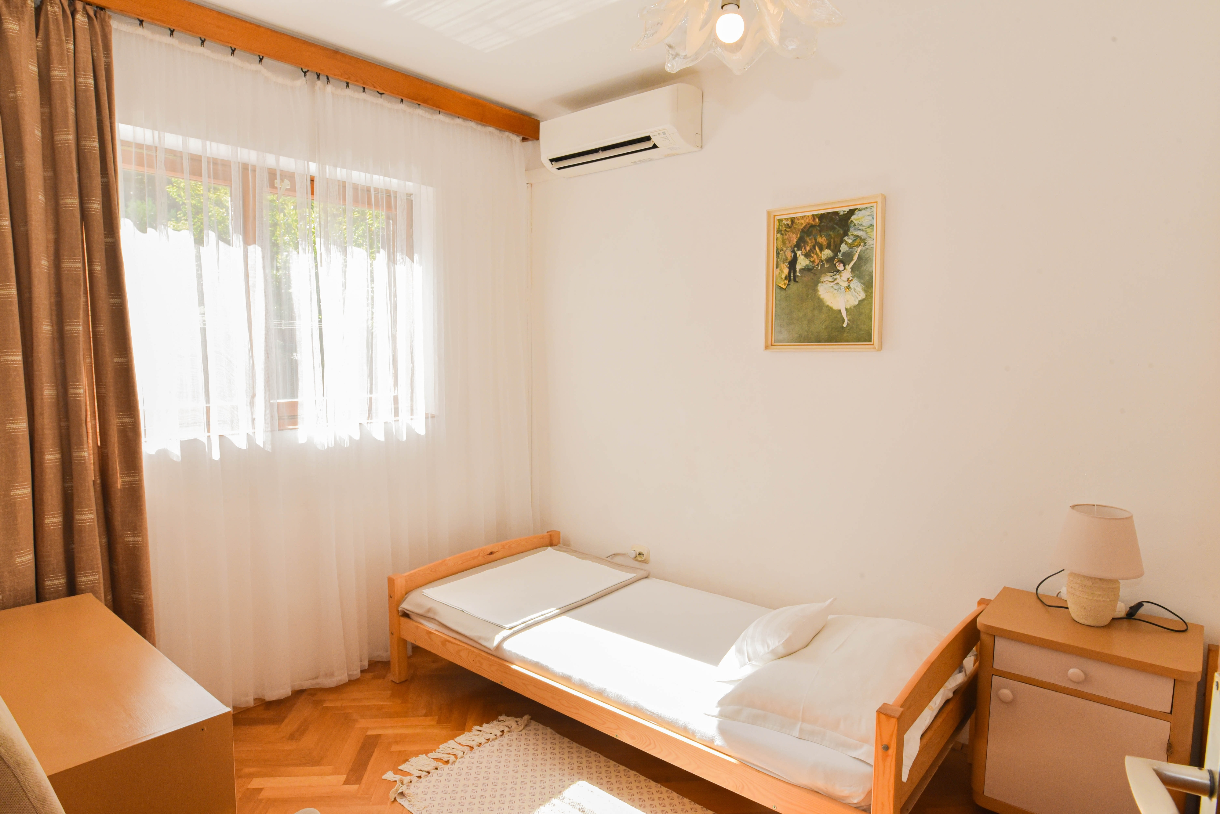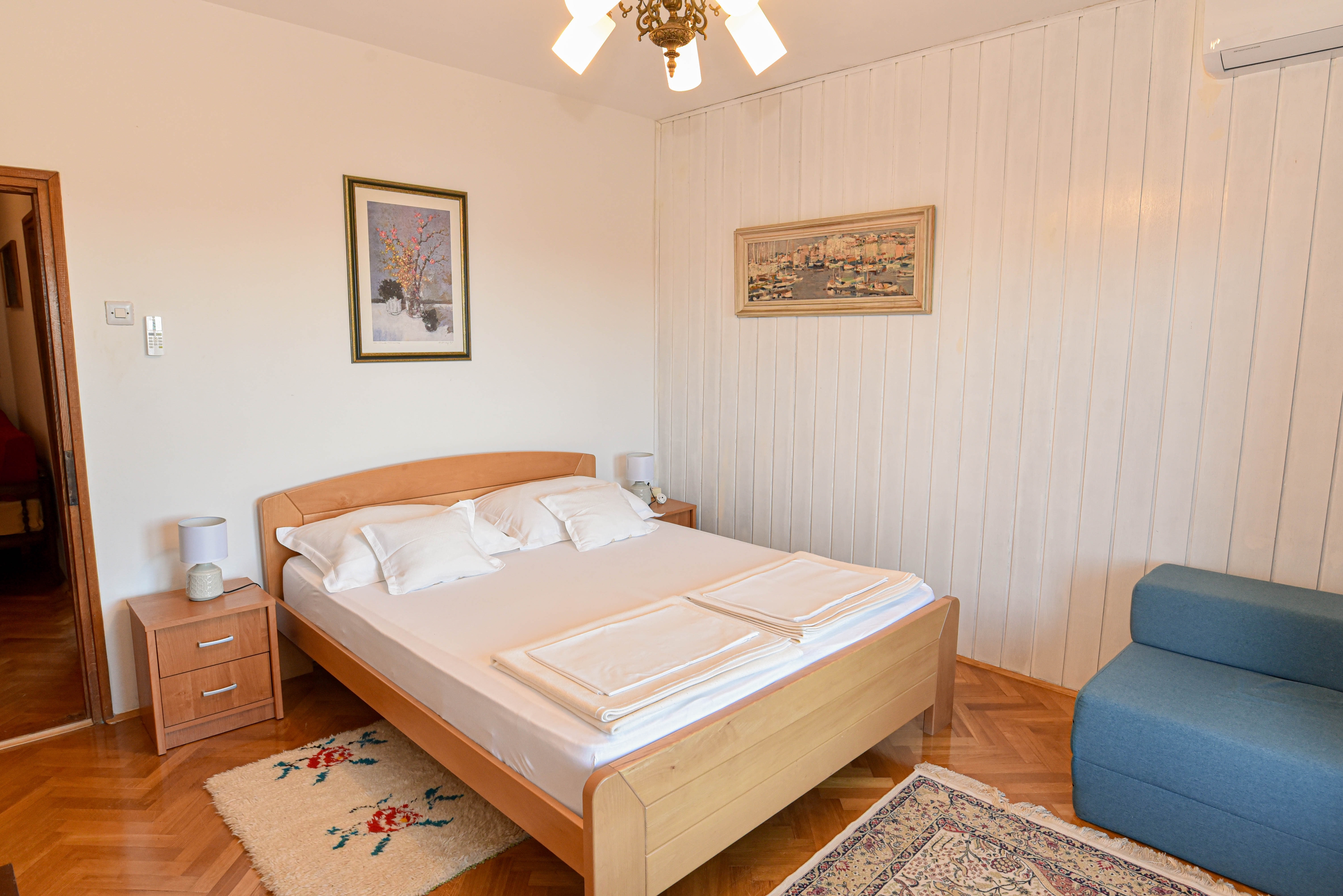 Apartament może przyjąć 5 gości. Łóżka znajdują się w sypialniach, których jest 2, oraz w pokoju dziennym, na powierzchni 49m2. Goście mają dostęp do tarasu, by korzystać z ciepłych, letnich wieczorów. Z apartamentu roztacza się widok na morze. Grill jest dostępny tylko do użytku gości z tej kwatery. WLICZONE W CENĘ: taksa pobytowa, sprzątanie końcowe, klimatyzacja, parking, internet, suszarka do włosów. Dostępność dodatkowych usług w rezerwowanym terminie oraz ich cenę (jeśli nie jest podana) należy sprawdzić wcześniej. Za dodatowe usługi, które nie zostały uwzględnione w kalkulacji ceny, płaci się bezpośrednio właścicielowi obiektu, pod warunkiem śe gość korzysta z tych usług.