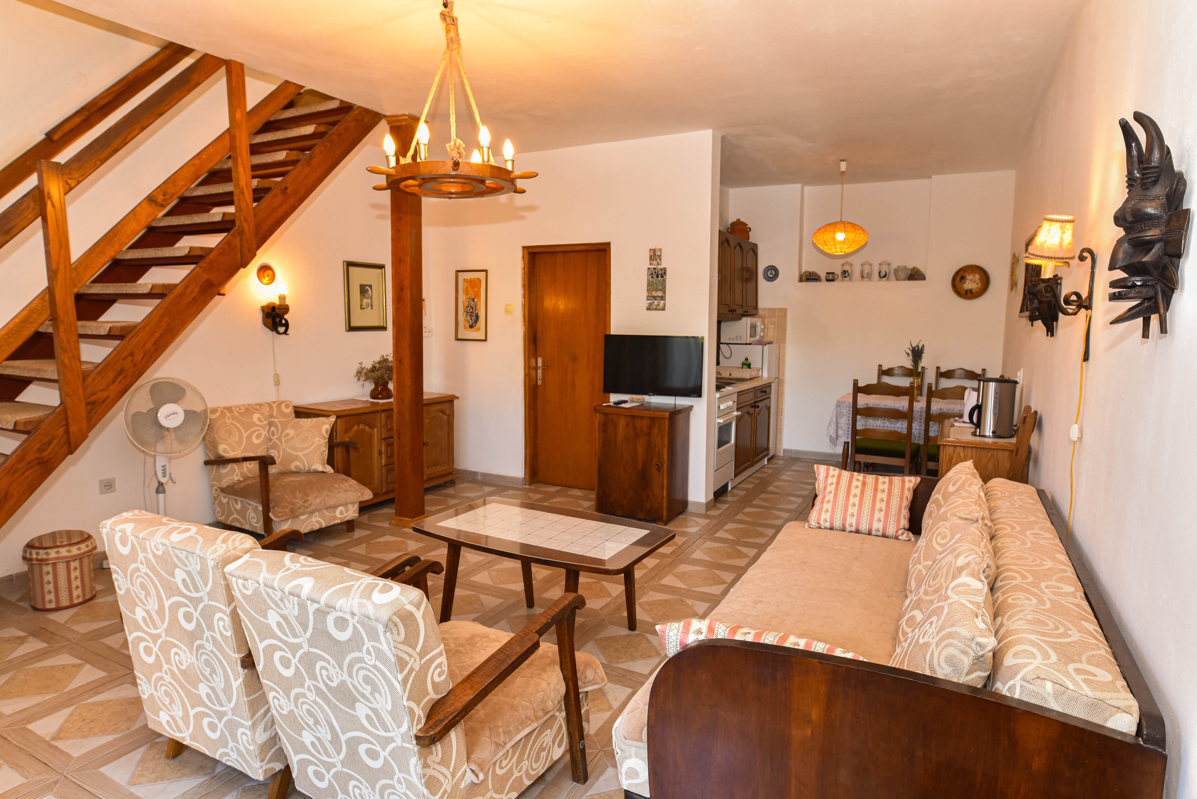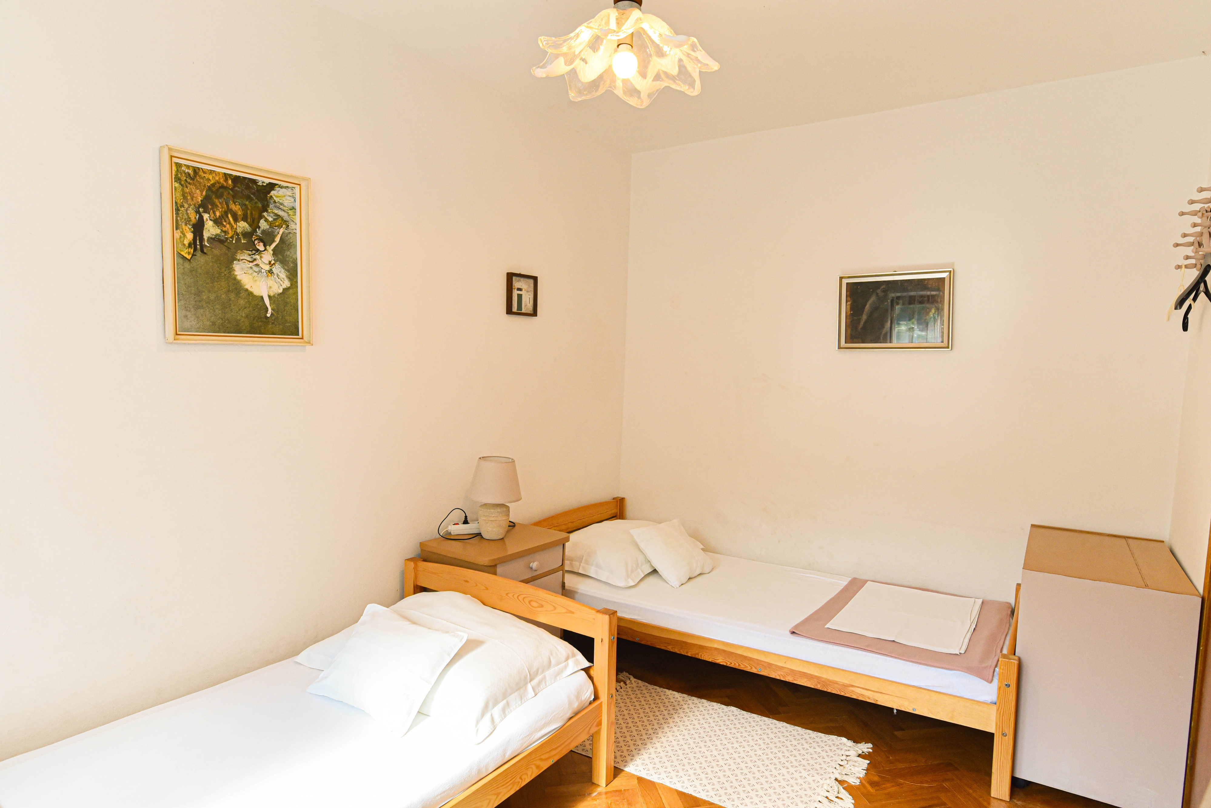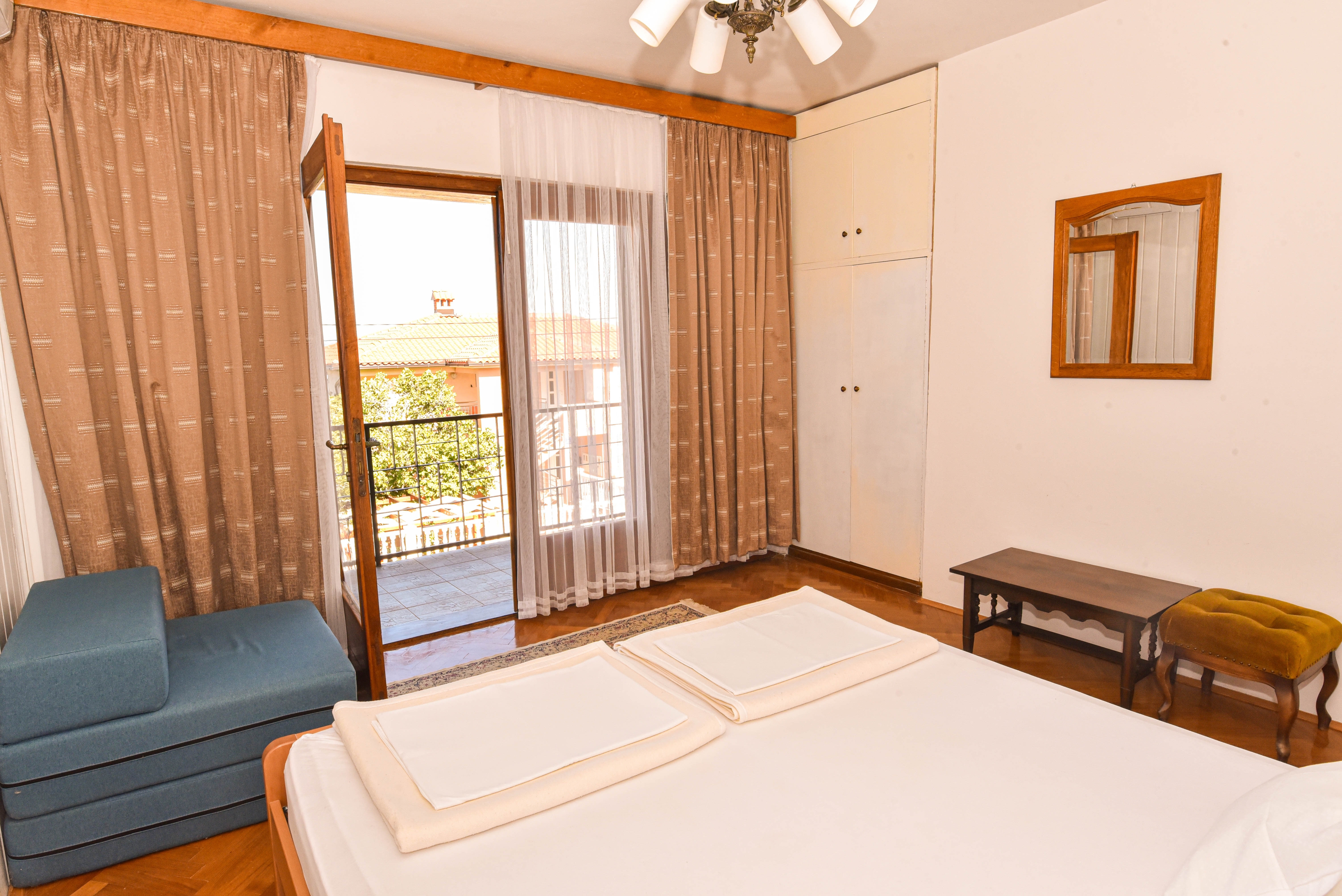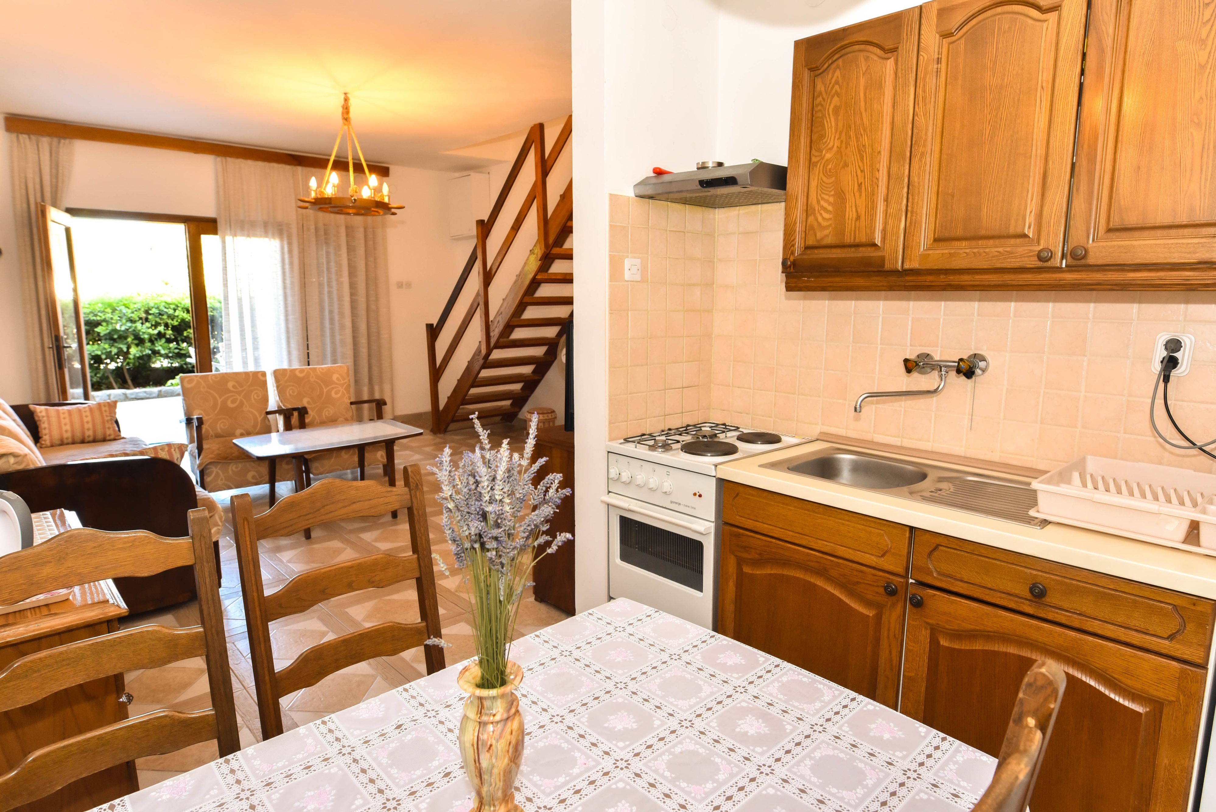 Apartament może przyjąć 5 gości. Łóżka znajdują się w sypialniach, których jest 2, oraz w pokoju dziennym, na powierzchni 49m2. Goście mają dostęp do tarasu, by korzystać z ciepłych, letnich wieczorów. Z apartamentu roztacza się widok na morze. Grill jest dostępny tylko do użytku gości z tej kwatery. WLICZONE W CENĘ: taksa pobytowa, sprzątanie końcowe, klimatyzacja, parking, internet, suszarka do włosów. Dostępność dodatkowych usług w rezerwowanym terminie oraz ich cenę (jeśli nie jest podana) należy sprawdzić wcześniej. Za dodatowe usługi, które nie zostały uwzględnione w kalkulacji ceny, płaci się bezpośrednio właścicielowi obiektu, pod warunkiem śe gość korzysta z tych usług.