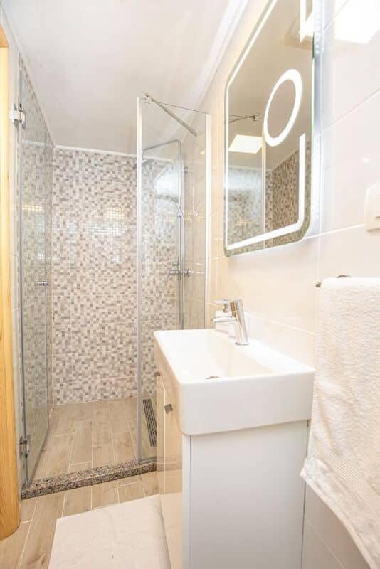 W apartamencie zapewniono klimatyzację oraz salon. Wyposażenie obejmuje też telewizor z płaskim ekranem z dostępem do kanałów satelitarnych. Kuchnię wyposażono w lodówkę, zmywarkę i piekarnik. Goście mają do dyspozycji również prysznic, bezpłatny zestaw kosmetyków oraz suszarkę do włosów.
