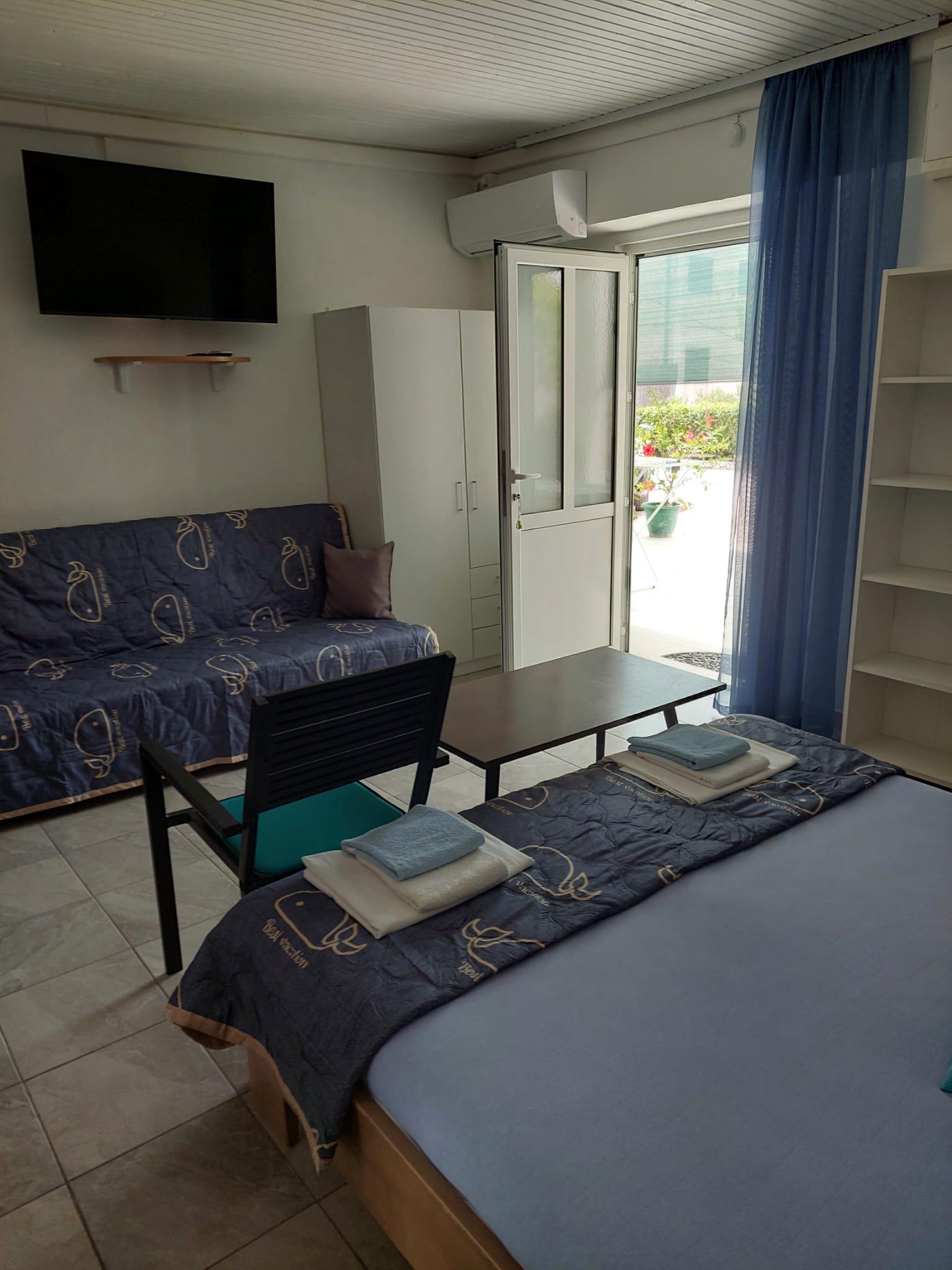 Studio może przyjąć 3 gości. Łóżka znajdują się w sypialniach, których jest 1, na powierzchni 21m2. Goście mają dostęp do tarasu, by korzystać z ciepłych, letnich wieczorów. Z apartamentu typu studio roztacza się widok na morze. Możliwość przygotowywania posiłków poprzez korzystanie ze wspólnego grilla. WLICZONE W CENĘ: taksa pobytowa, sprzątanie końcowe, klimatyzacja, parking, internet, deska do prasowania, suszarka do włosów. OBOWIĄZKOWE KOSZTY DODATKOWE: dopłata za krótki termin (procent dopłaty w zalezności od liczby noclegów: 30% - 1, 20% - 2, 10% - 3). Dostępność dodatkowych usług w rezerwowanym terminie oraz ich cenę (jeśli nie jest podana) należy sprawdzić wcześniej. Za dodatowe usługi, które nie zostały uwzględnione w kalkulacji ceny, płaci się bezpośrednio właścicielowi obiektu, pod warunkiem śe gość korzysta z tych usług. Zniżki od ceny podstawowej: bezpłatny dzień 14=13 (przy pobycie, trwającym co najmniej 14 dni, otrzymujecie jeden bezpłatny dzień na pobyt do 31.12.2026).