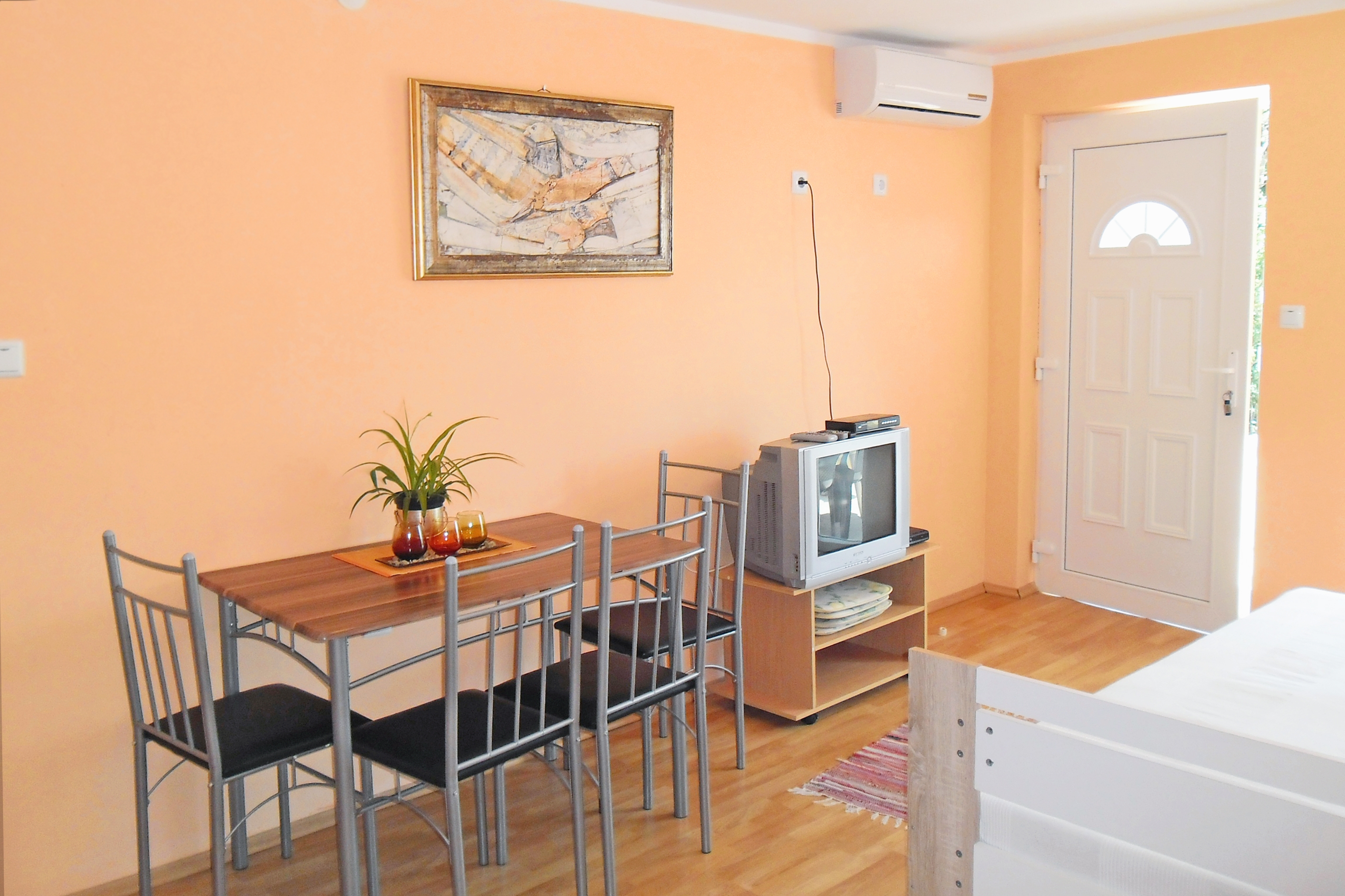 Apartament może przyjąć 4 gości. Łóżka znajdują się w sypialniach, których jest 1, oraz w jadalni, na powierzchni 28m2. Goście mają dostęp do tarasu, by korzystać z ciepłych, letnich wieczorów. Z apartamentu roztacza się widok na morze. Możliwość przygotowywania posiłków poprzez korzystanie ze wspólnego grilla. W kwaterze dozwolony jest pobyt zwierzęcia domowego, za dopłatą. WLICZONE W CENĘ: sprzątanie końcowe, klimatyzacja, internet, żelazko, deska do prasowania, suszarka do włosów. OBOWIĄZKOWE KOSZTY DODATKOWE: taksa pobytowa (dorośli 0,93 € - 2,20 € noclegosoba, zniżka dla dzieci w wieku 12 - 17 lat), dopłata za krótki termin (procent dopłaty w zalezności od liczby noclegów: 30% - 1, 20% - 2, 10% - 3). NIEOBOWIĄZKOWE KOSZTY DODATKOWE: zwierzęta domowe (10,00 € za nocleg), dostawka (10,00 € za nocleg). Dostępność dodatkowych usług w rezerwowanym terminie oraz ich cenę (jeśli nie jest podana) należy sprawdzić wcześniej. Za dodatowe usługi, które nie zostały uwzględnione w kalkulacji ceny, płaci się bezpośrednio właścicielowi obiektu, pod warunkiem śe gość korzysta z tych usług.