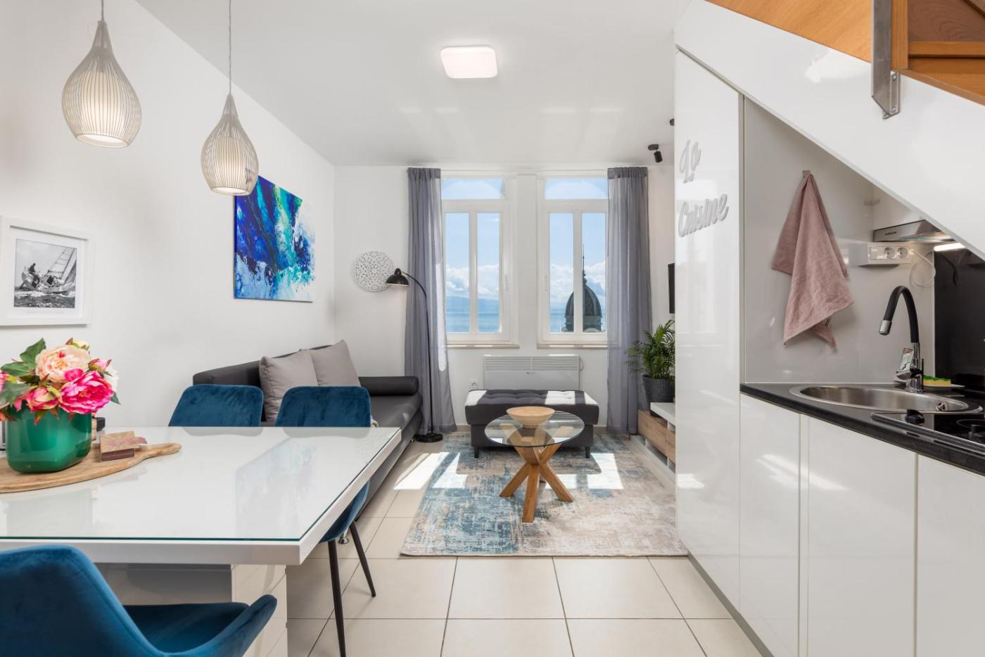 Obiekt Blue położony jest w miejscowości Opatija i oferuje bezpłatne Wi-Fi oraz klimatyzację. Odległość ważnych miejsc od obiektu: Plaża Slatina – 200 m, HNK Rijeka Stadium Rujevica – 15 km. Odległość ważnych miejsc od apartamentu: Muzeum Żeglarstwa i Historii Chorwackiego Wybrzeża – 18 km, Chorwacki Teatr Narodowy im. Ivana Zajca – 19 km.
