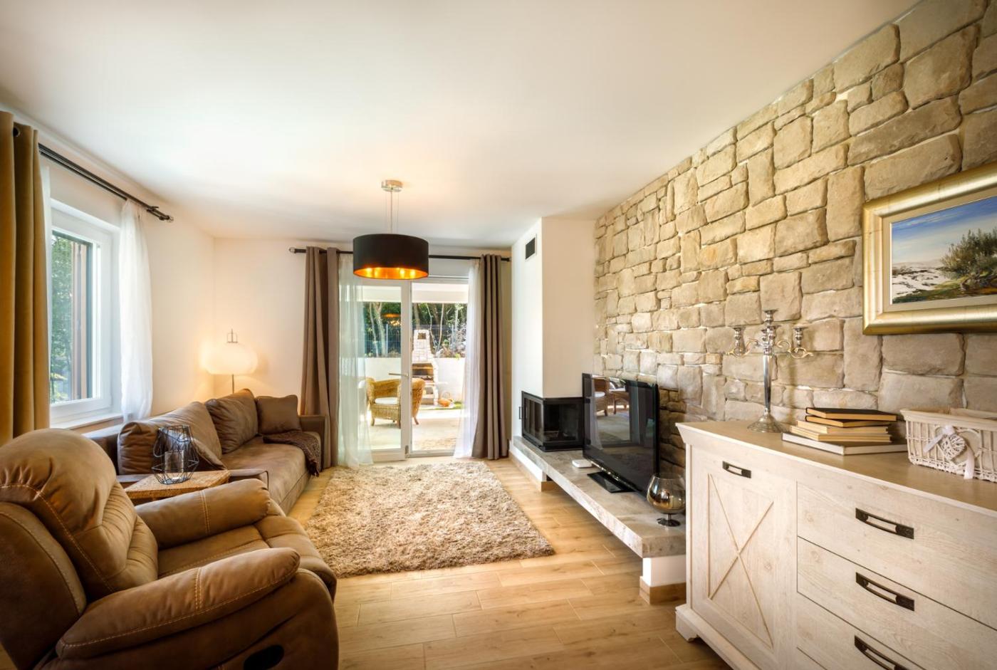 Apartament z 3 sypialniami. This apartment features a private pool and a fireplace. Boasting a private entrance, this air-conditioned apartment includes 1 living room, 3 separate bedrooms and 3 bathrooms with a bath or a shower and a hairdryer. Guests will find a stovetop, a refrigerator, a dishwasher and an oven in the well-equipped kitchen. The apartment also features a barbecue. The spacious apartment offers a washing machine, a tea and coffee maker, a seating area, a flat-screen TV with streaming services, as well as garden views. The unit has 4 beds. Apartament - 8 osobowy. Powierzchnia pokoju ok.: 125 mkw.